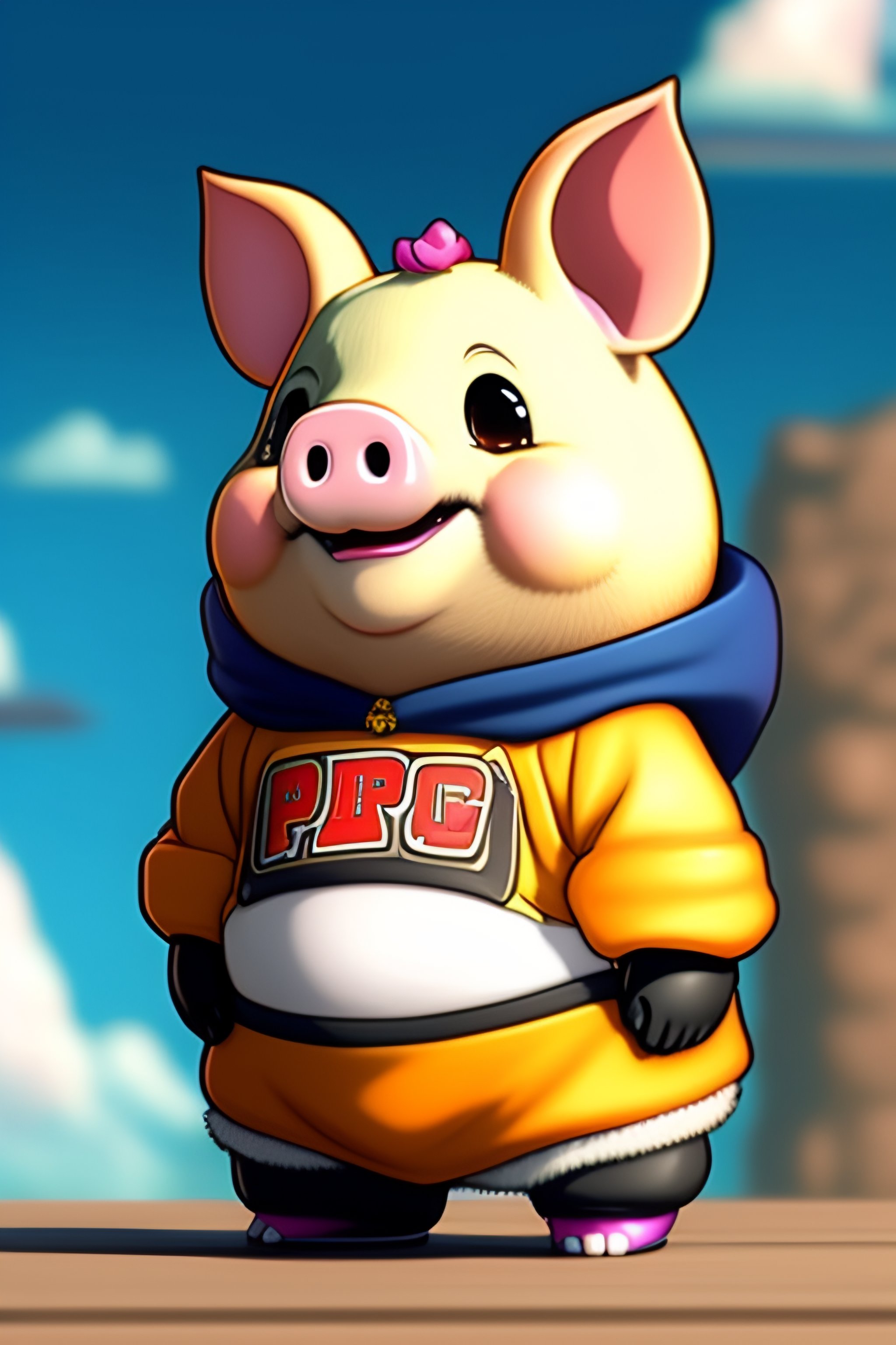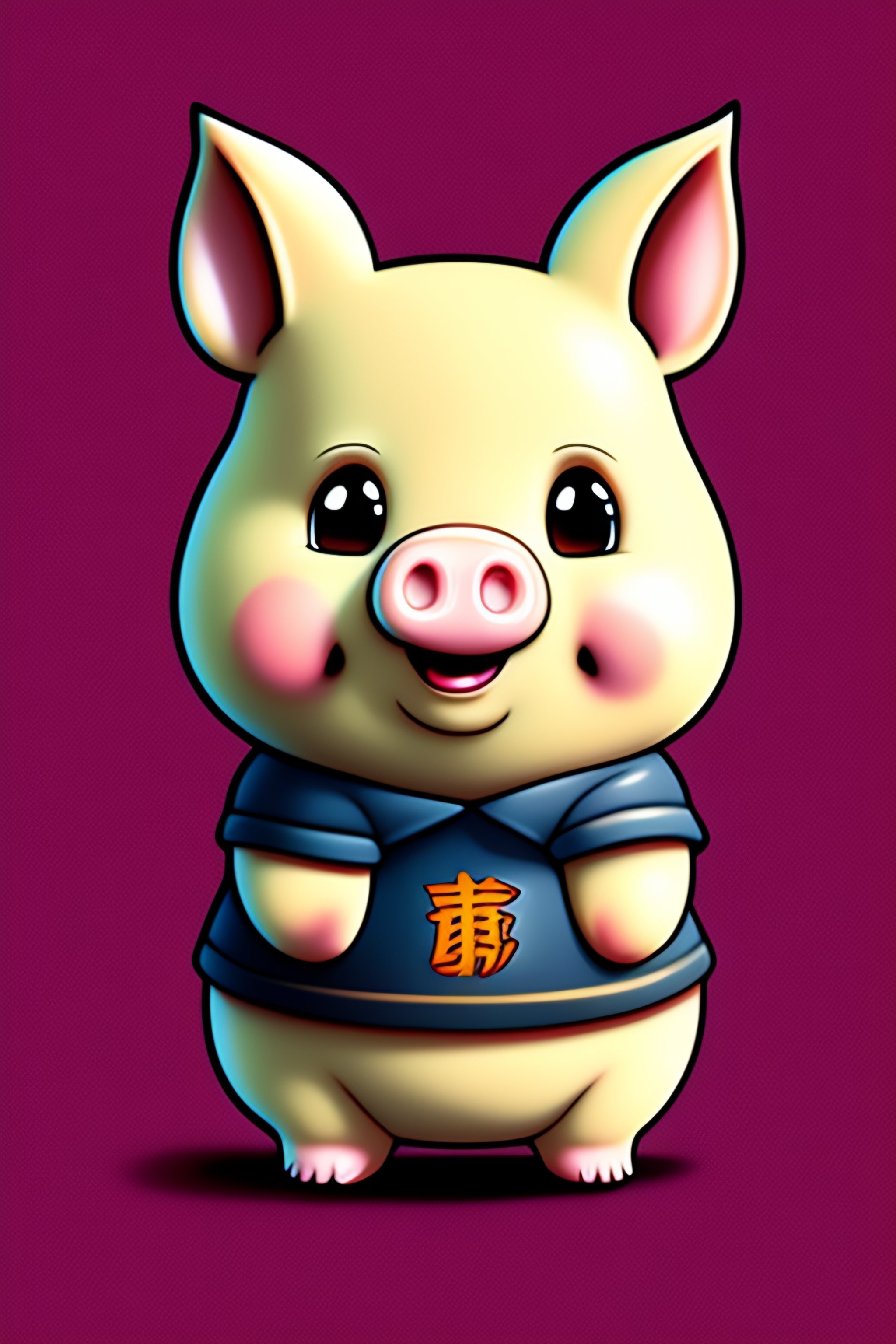 Happy cute pig cartoon character in anime style