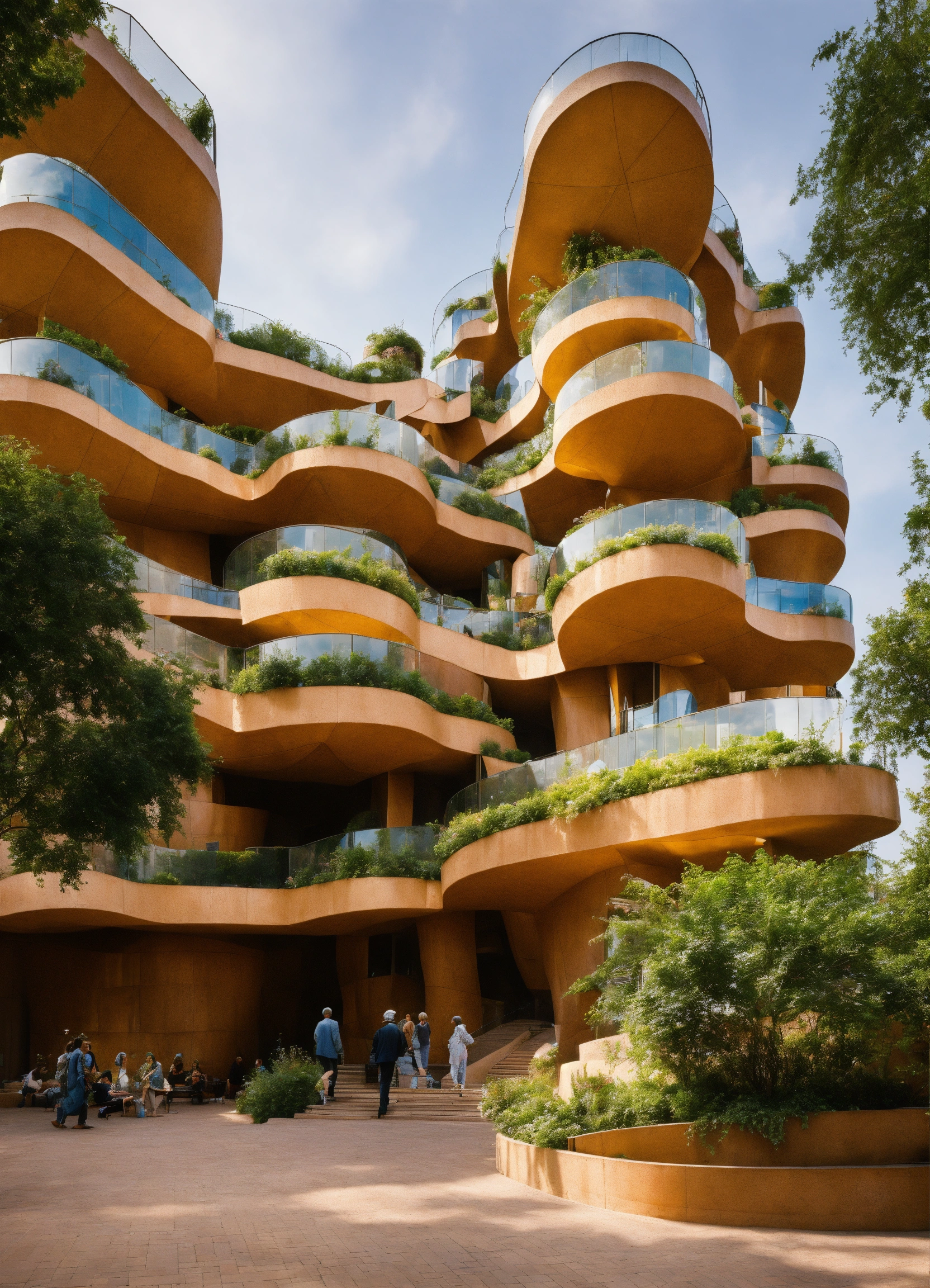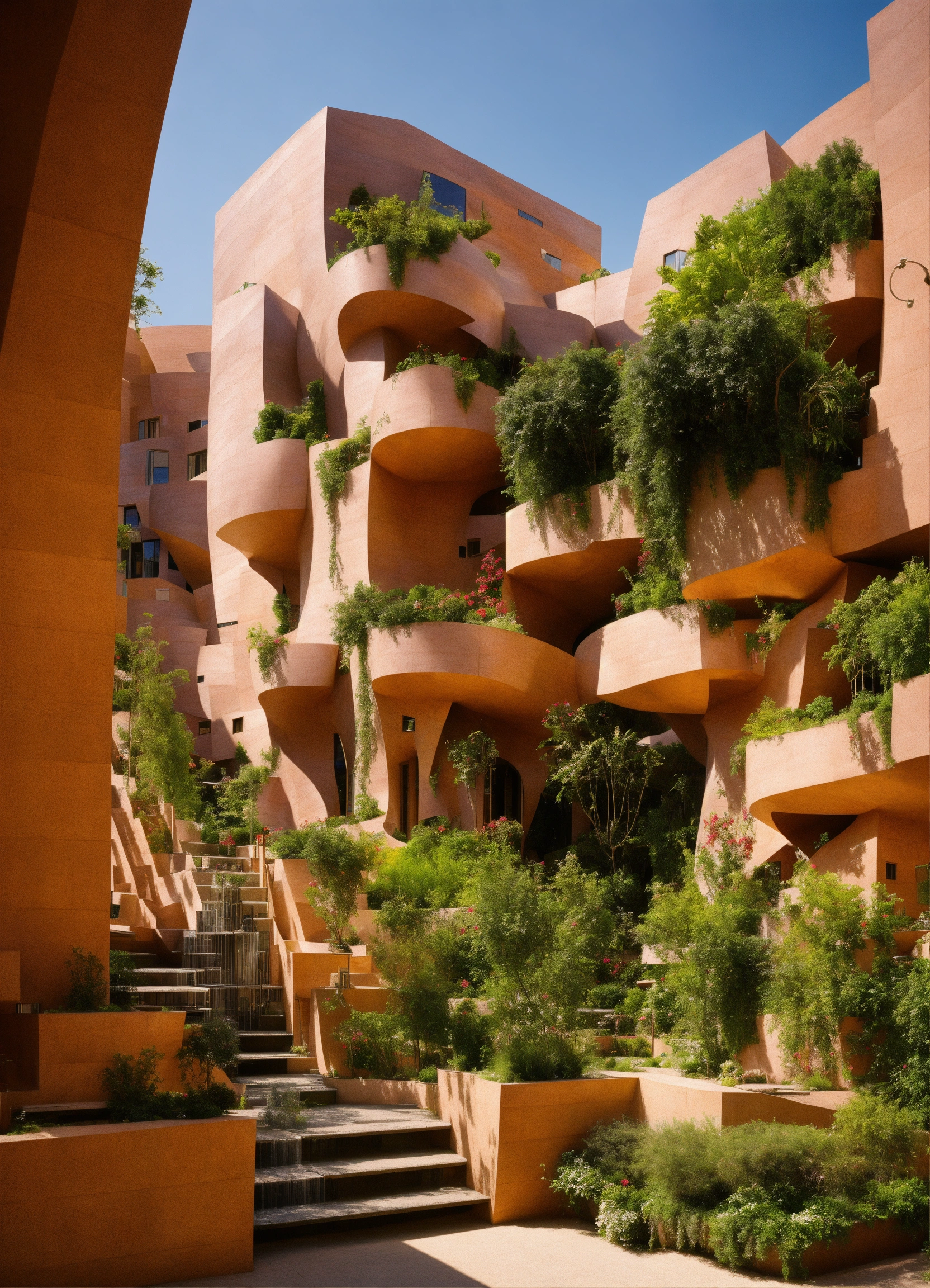 Frank gehry postmodern concrete hanging gardens of babylon in the city