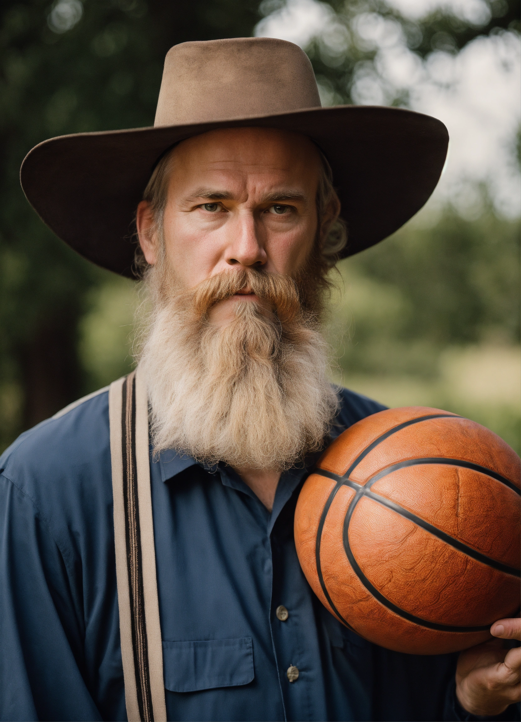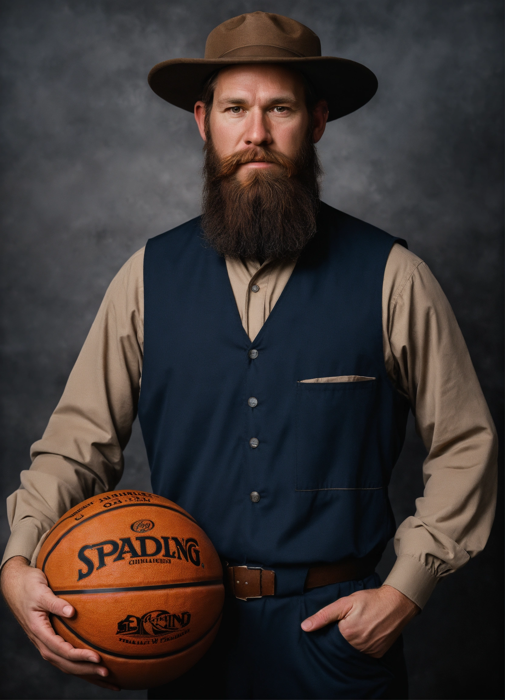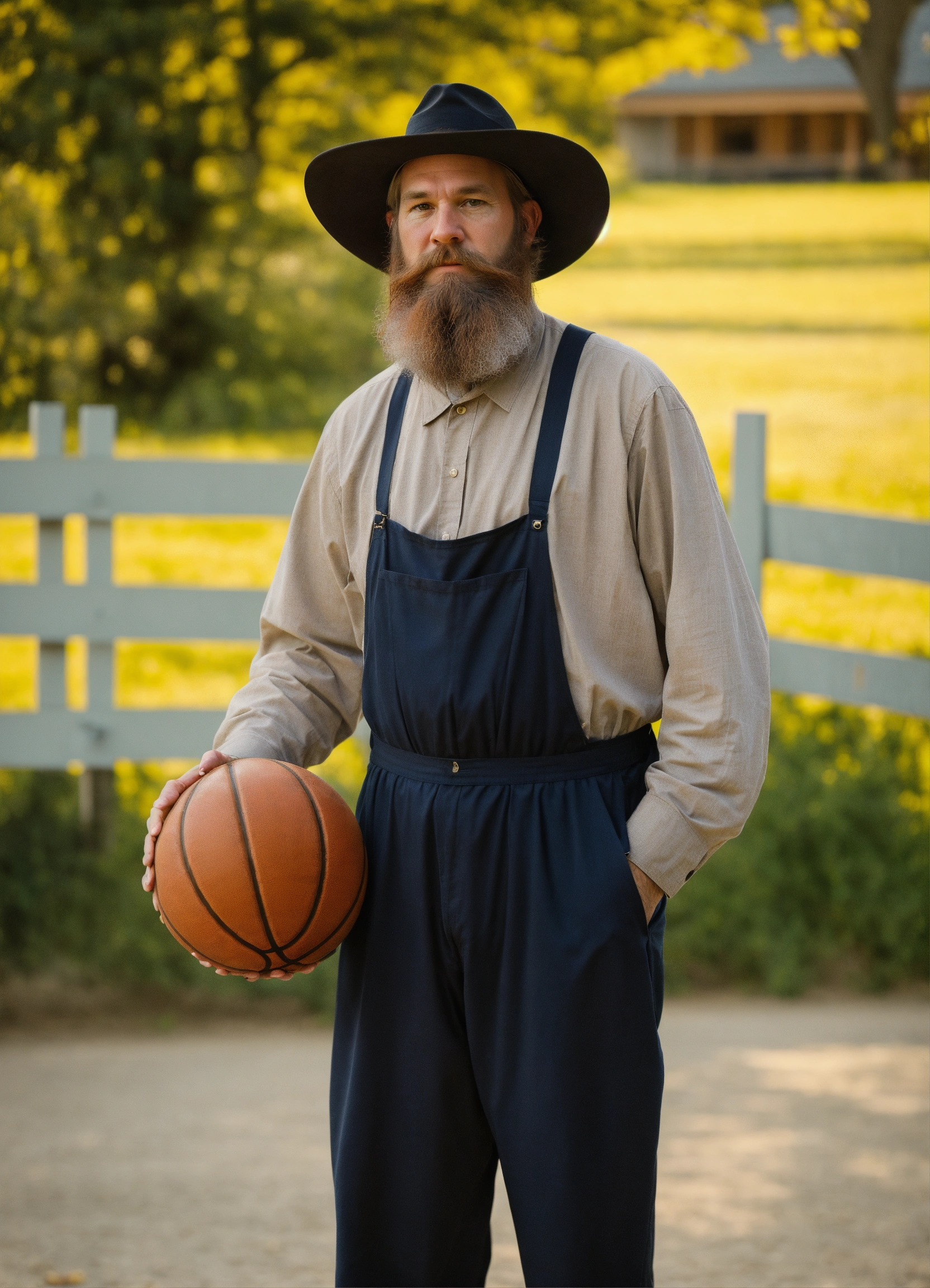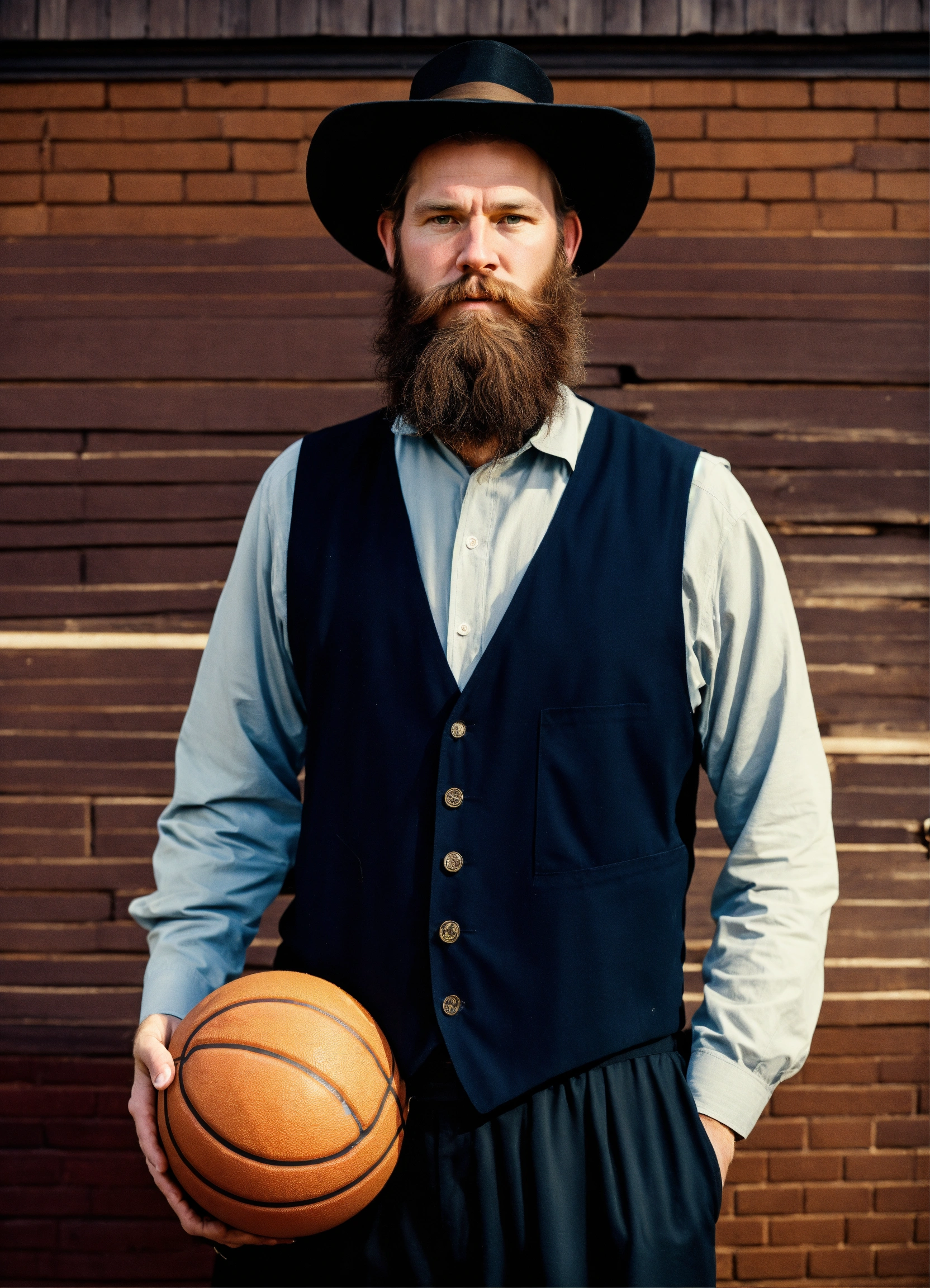 Chet holmgren as an amish man with a grown out beard holding a basketball