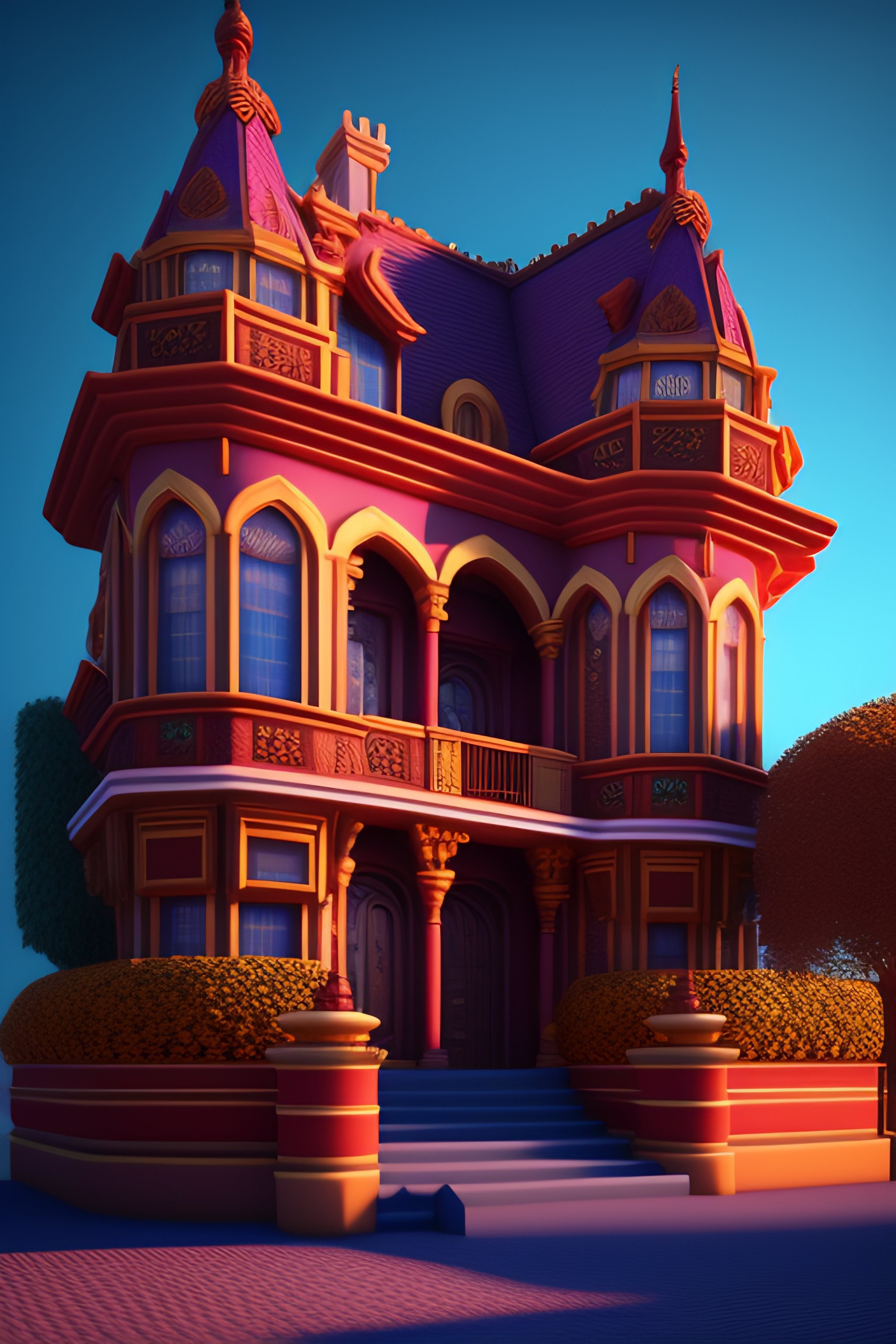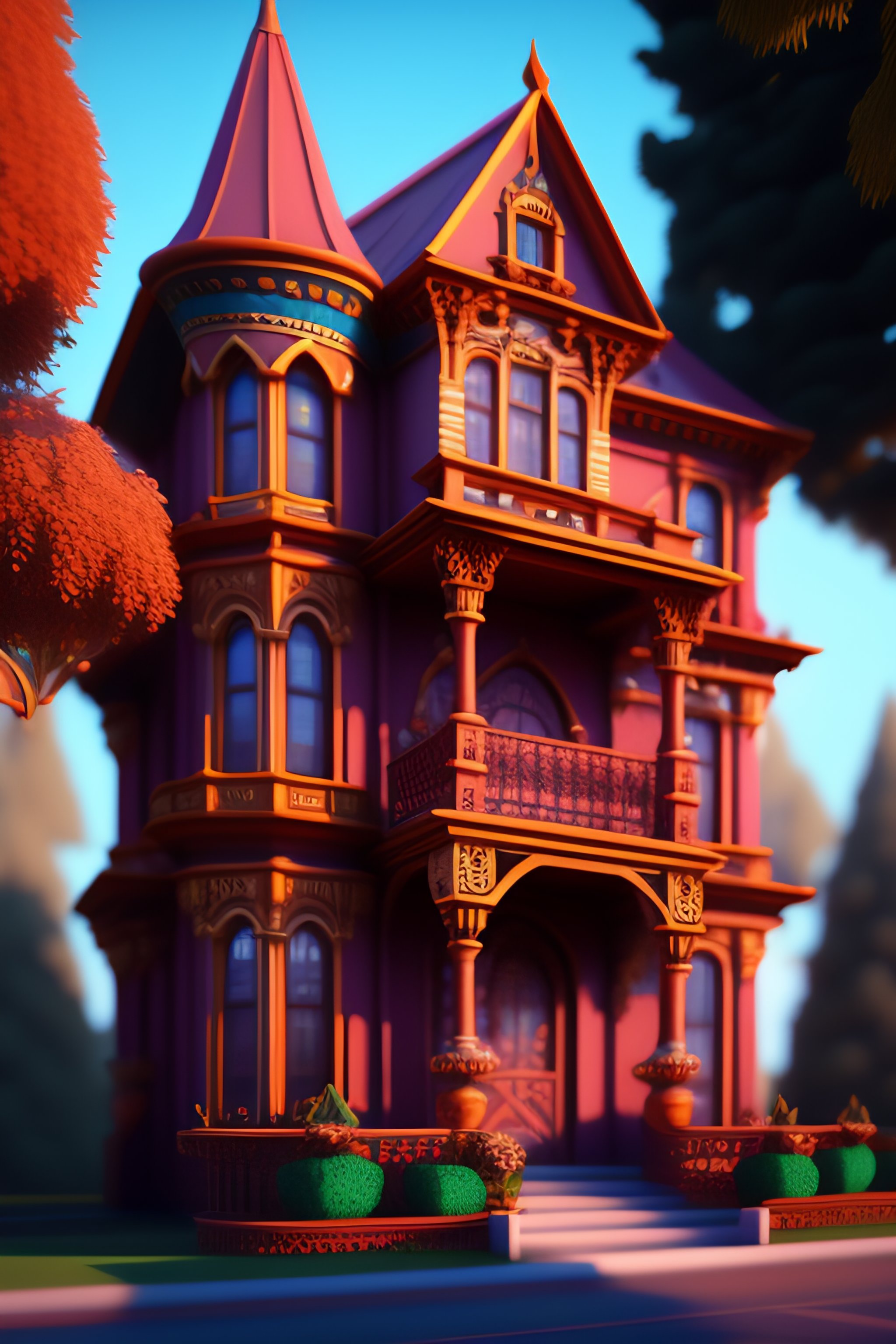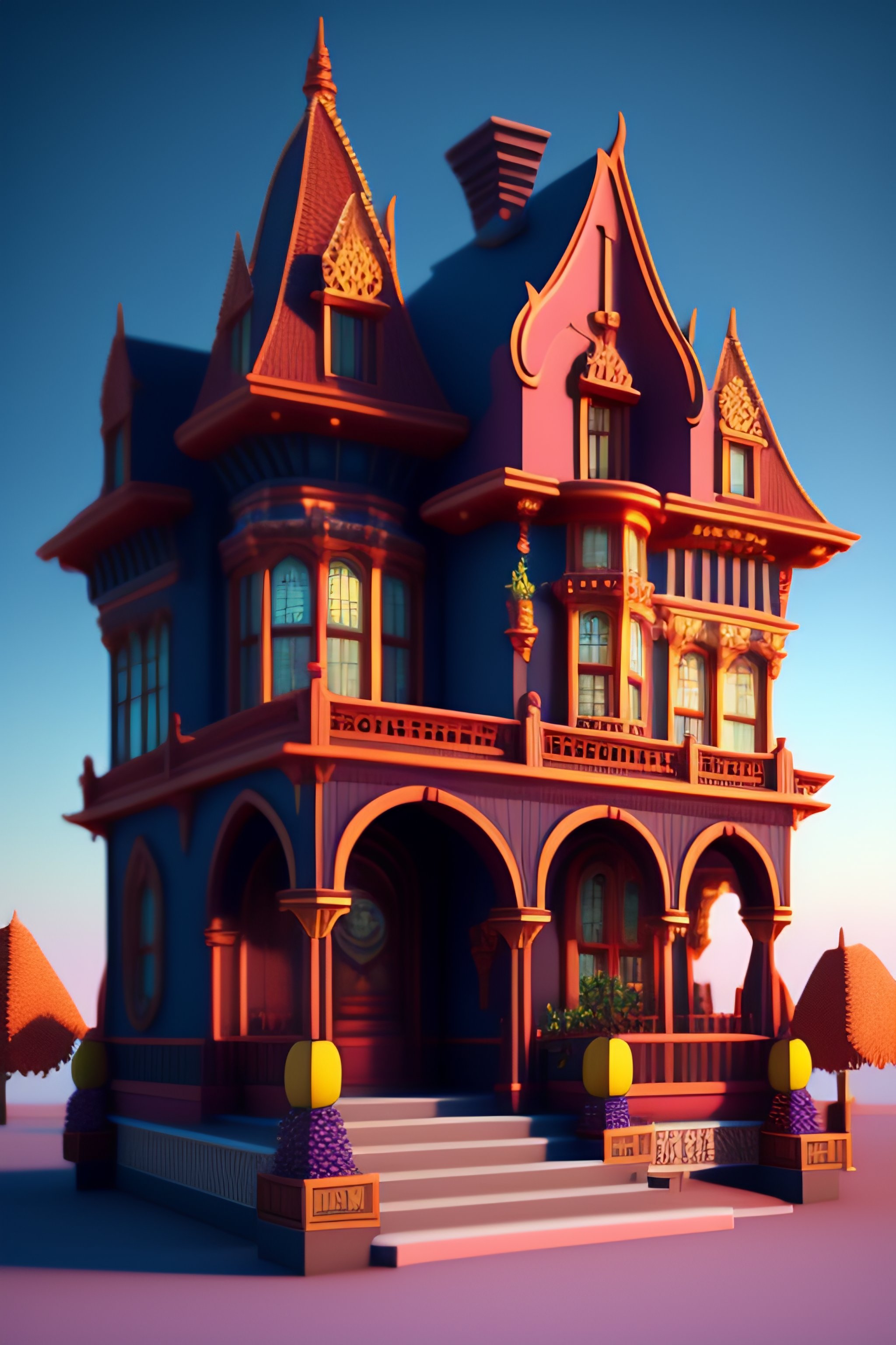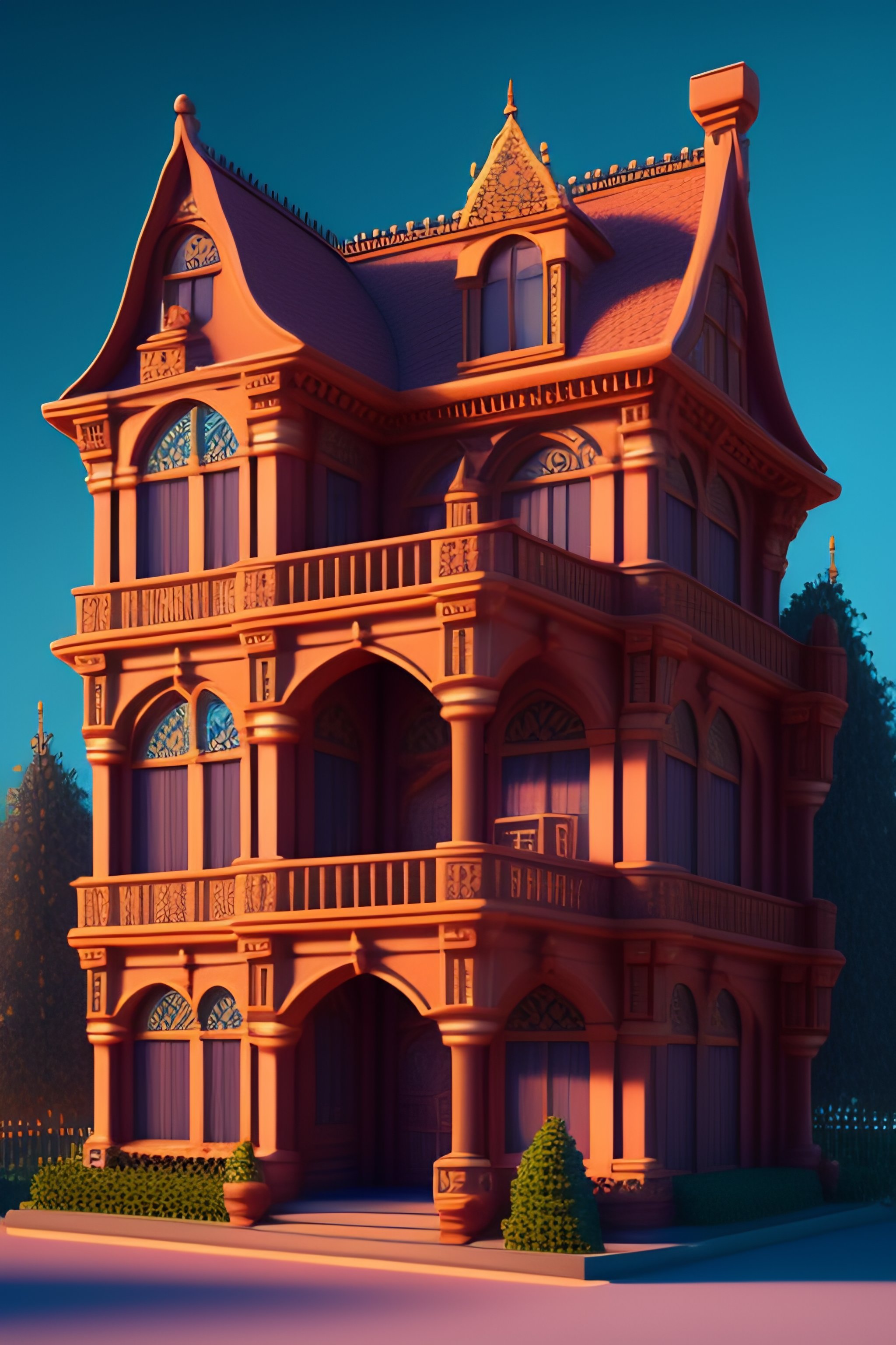 Detailed terracotta victorian mansion, digital art, digital painting, digital illustration, fantasy, concept art, 3d, voxel render, complementary colors, 8k resolution, cinematic lighting, realistic