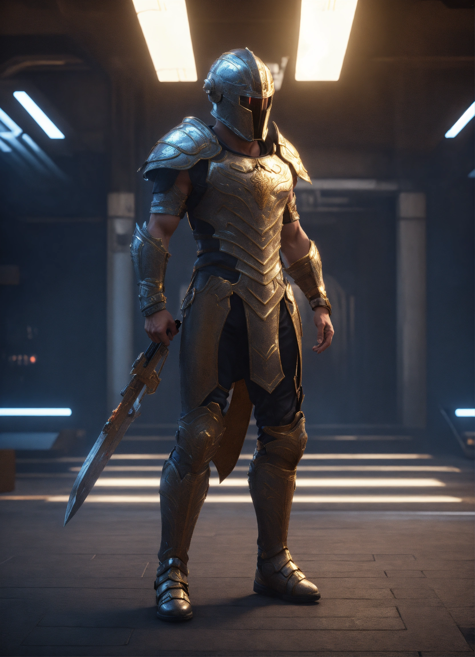 Full body of a sci fi gladiator
