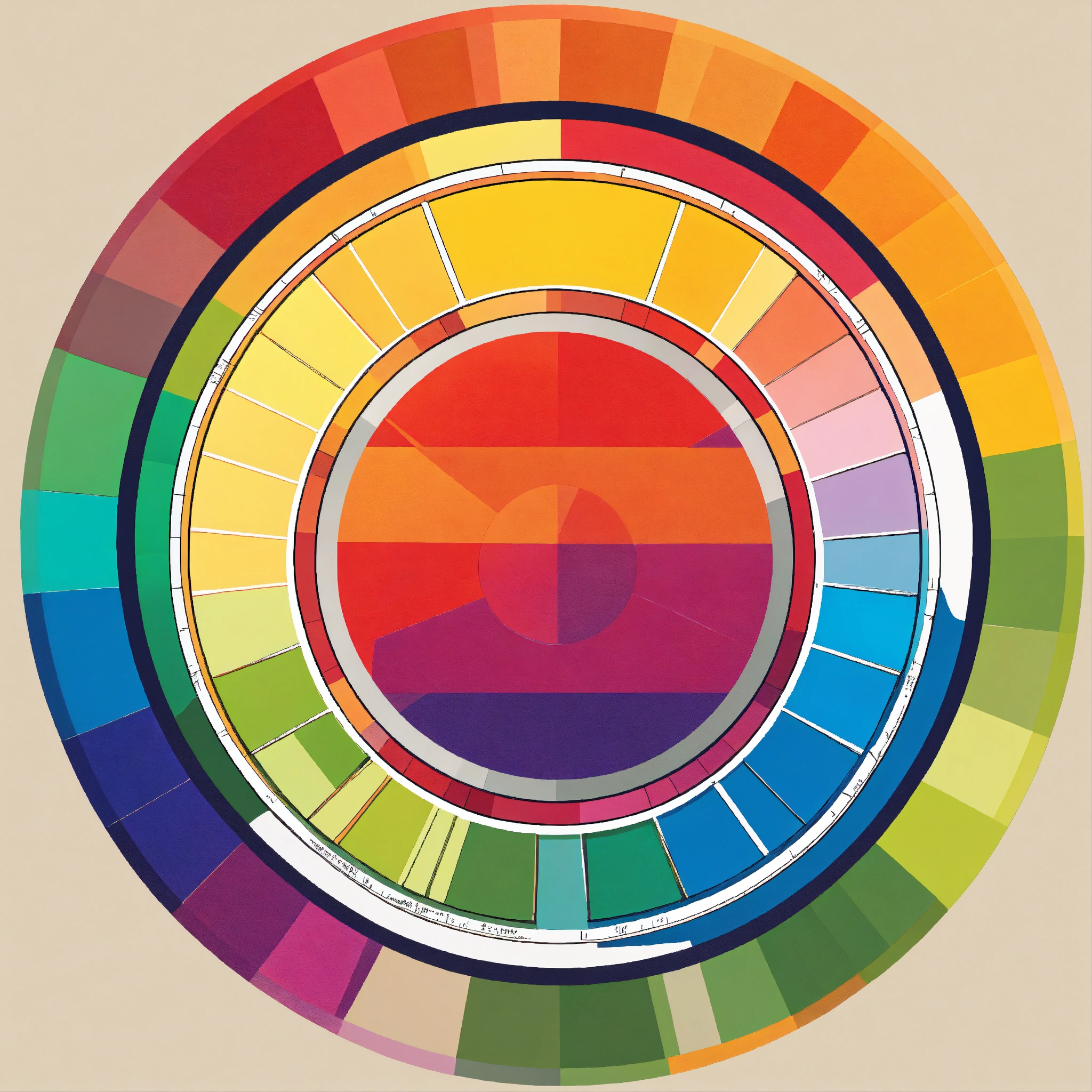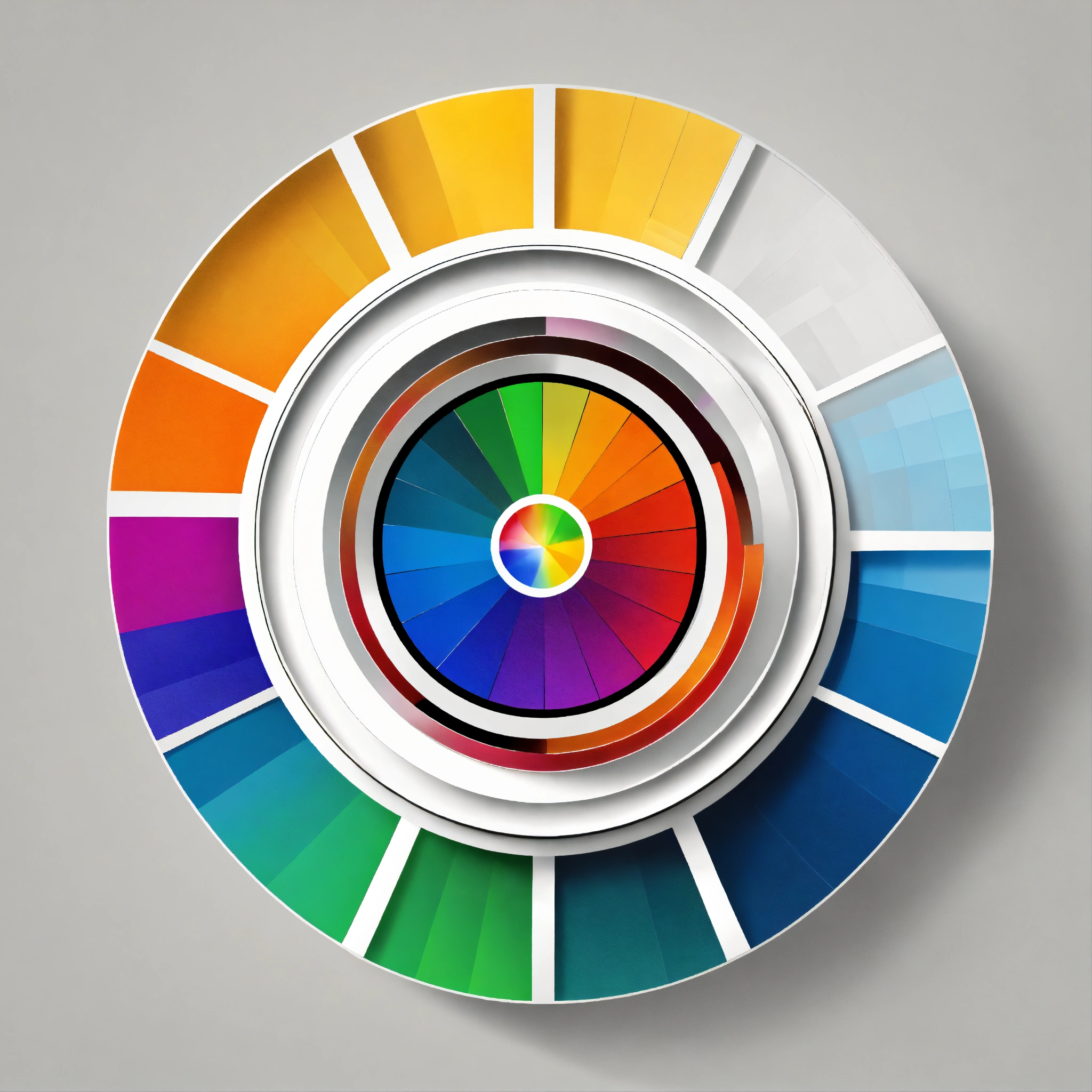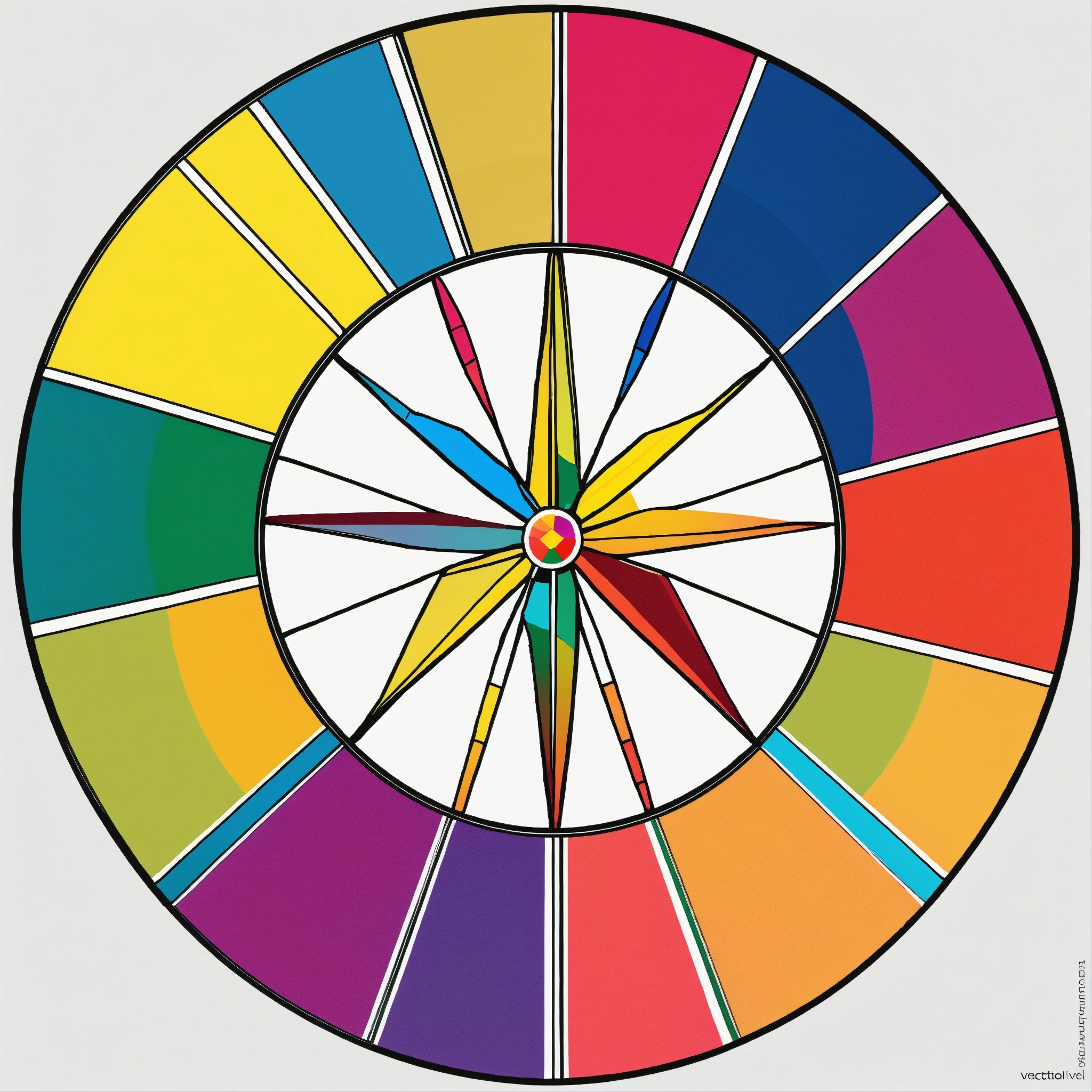 One simple conventional color-wheel in 'white background' in vector style and highly saturated colors, make it a logo style, void circular center