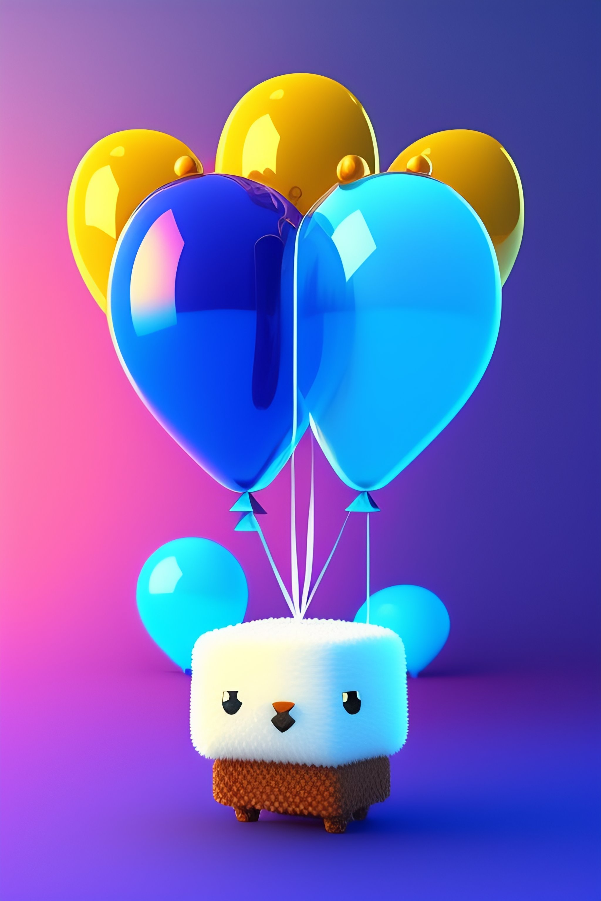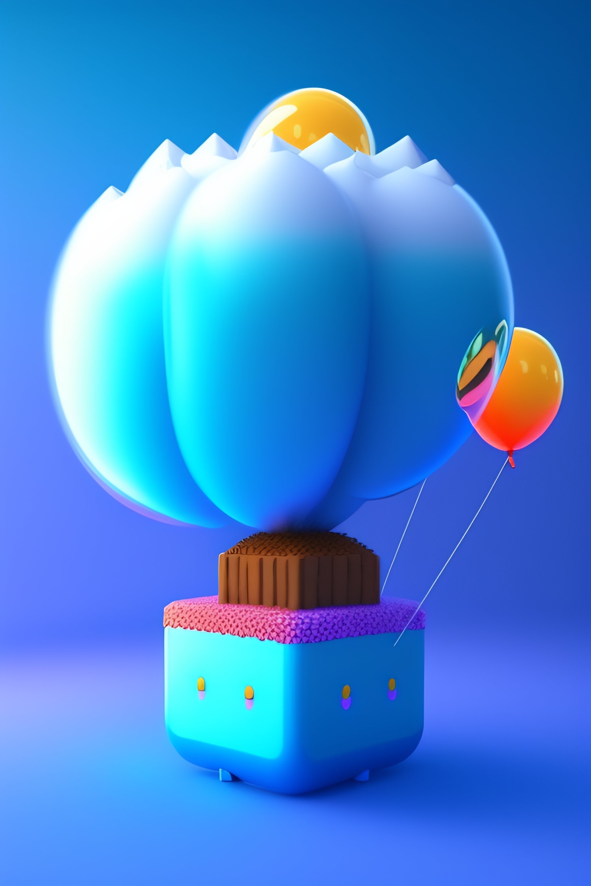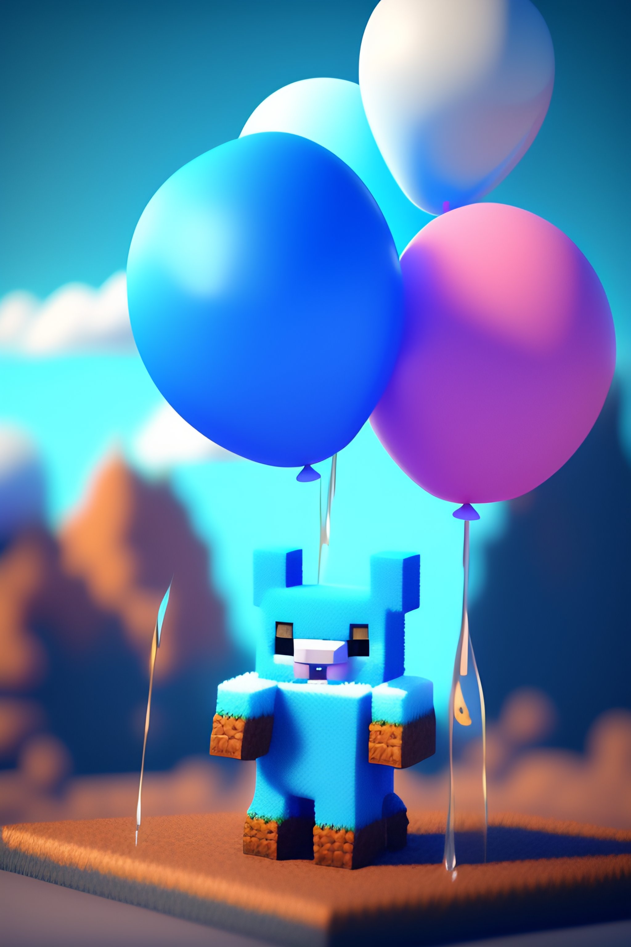 Cute and adorable cartoon fluffy minecraft, birthday, blue, balloons, fantasy, dreamlike, surrealism, super cute, trending on artstation 8k