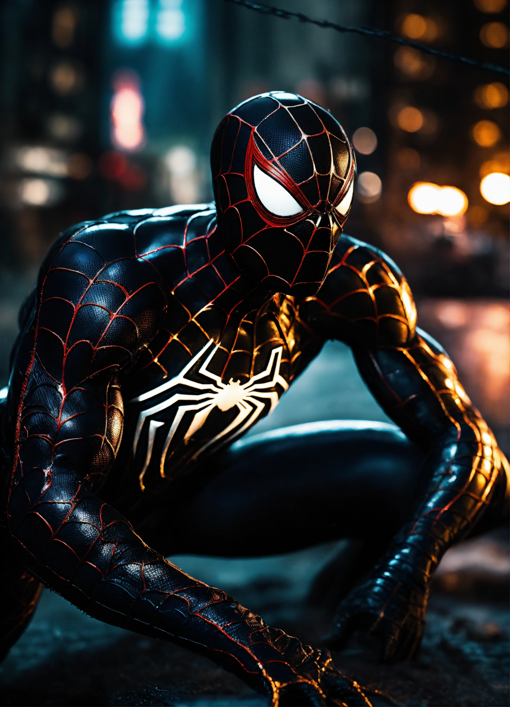 Spiderman themed venom, amazing, intricate, sharp focus, fantasy, cinematic lighting, otherworldly, real 8k photo, dark moody aesthetic