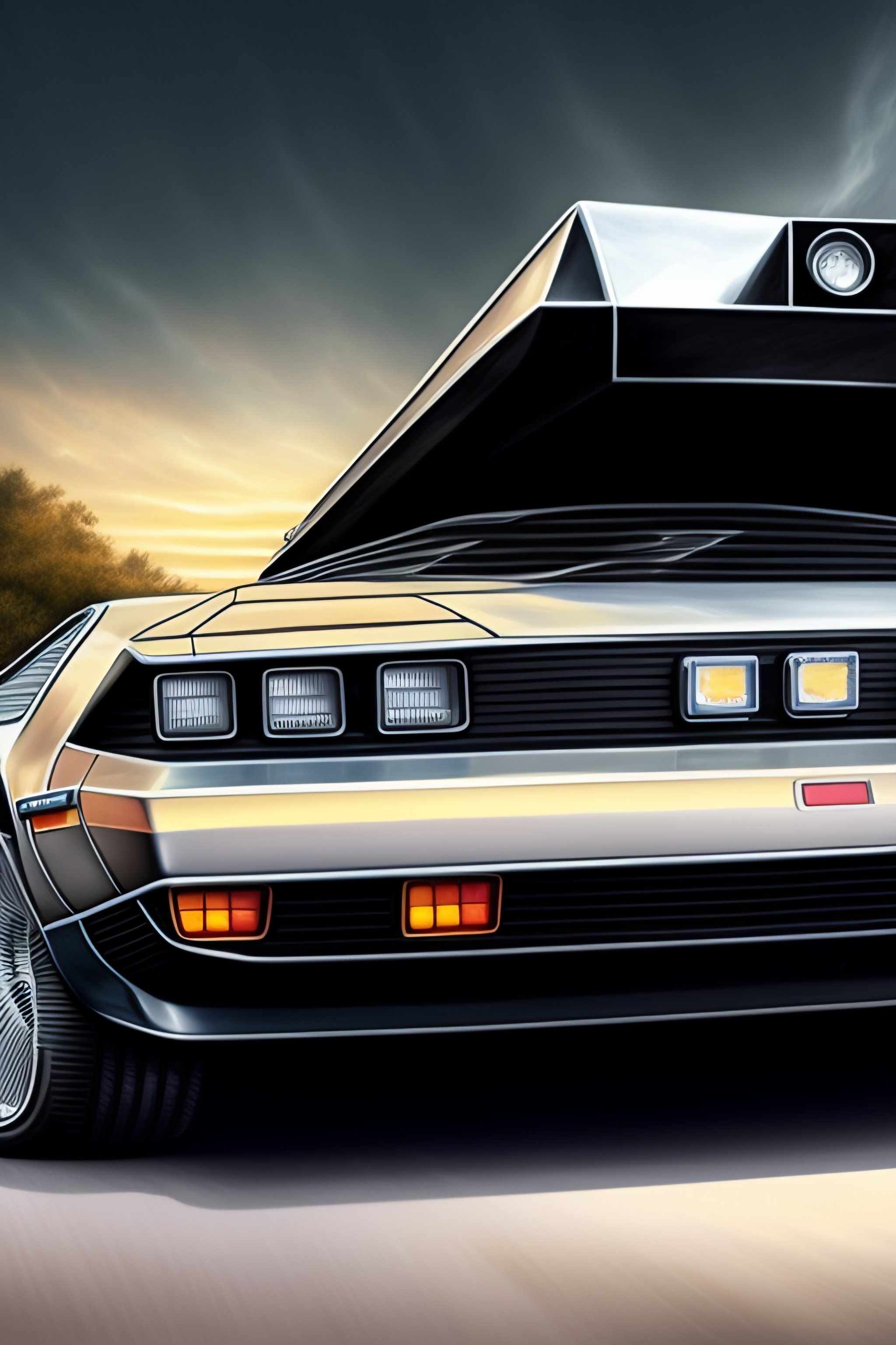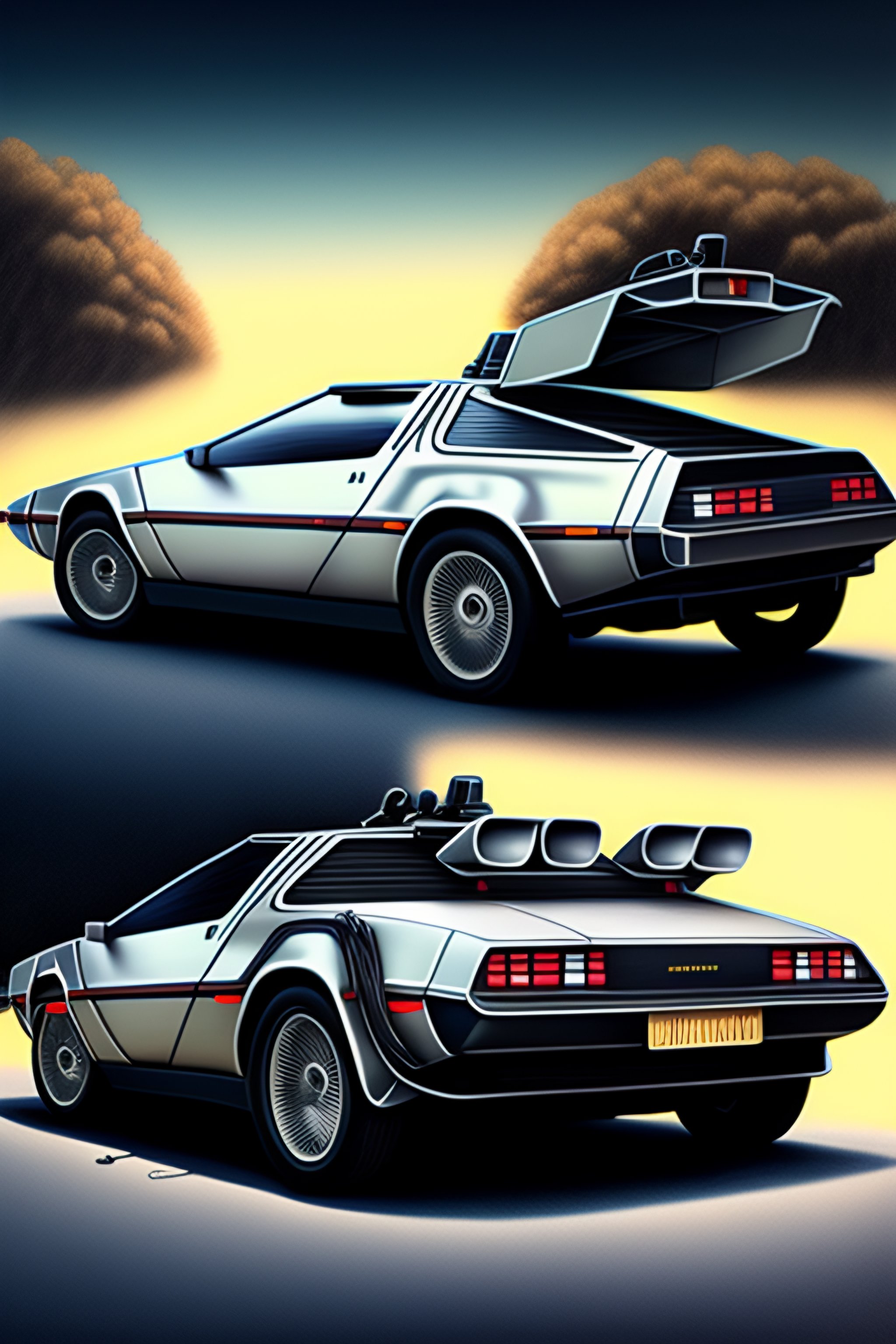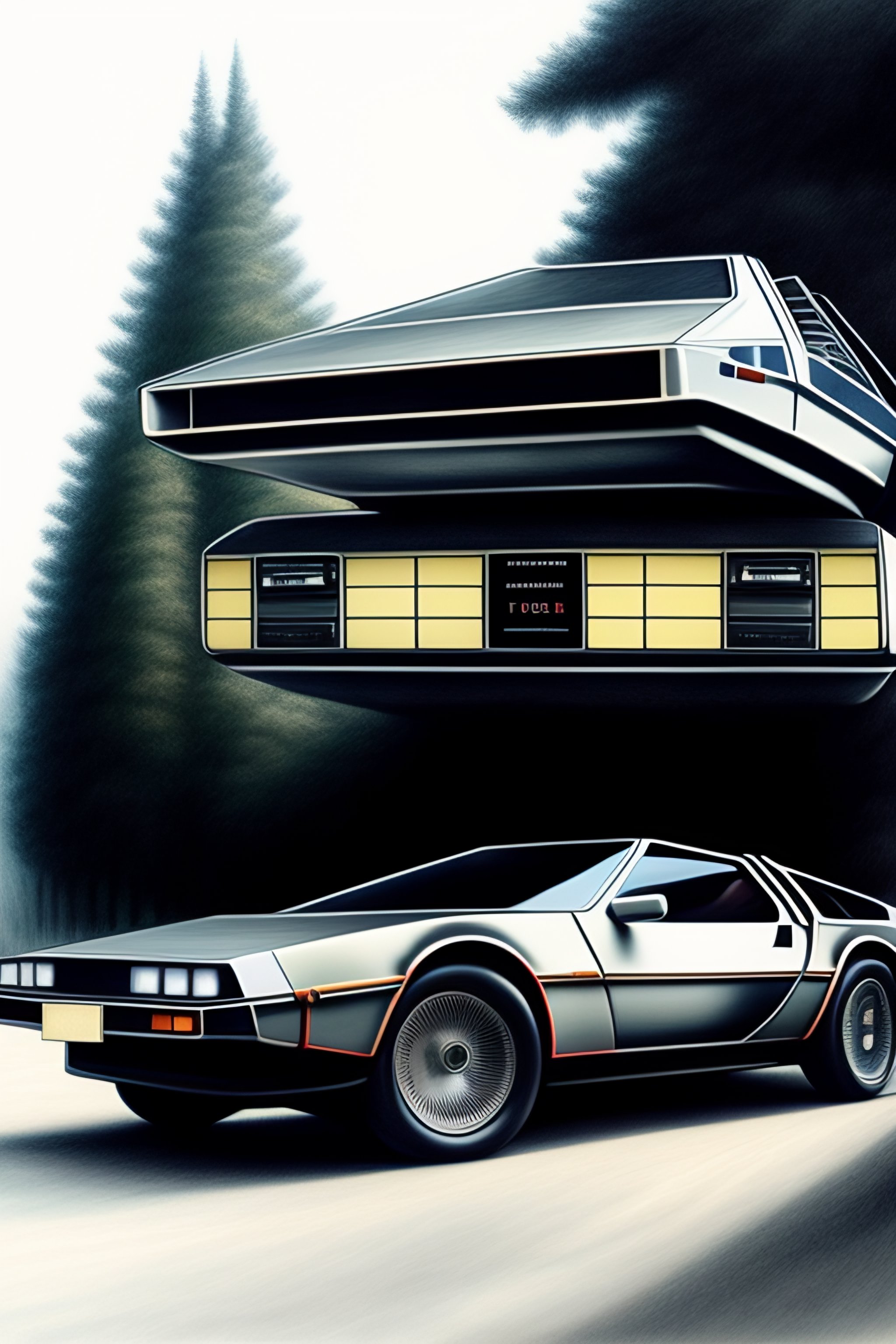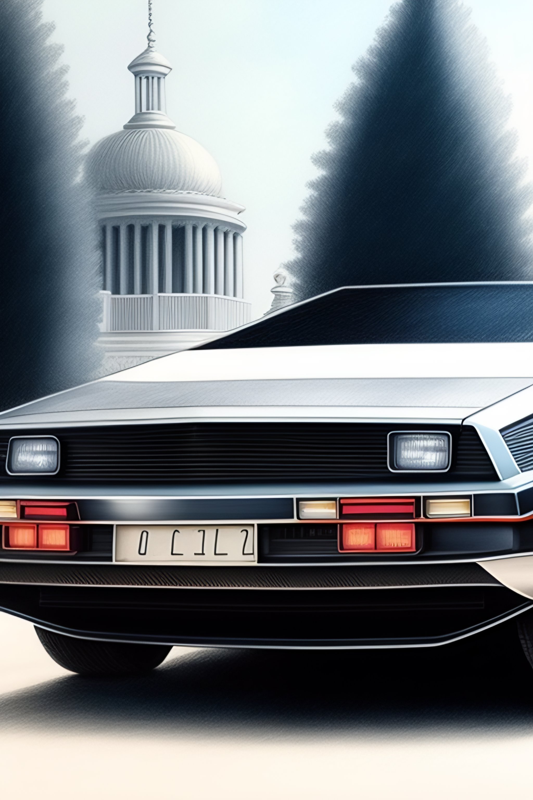 Delorean time machine very detailed drawing