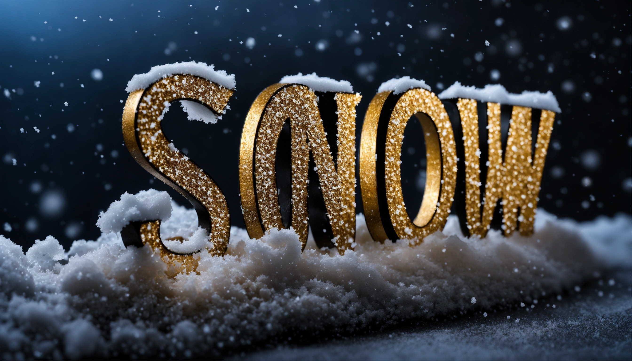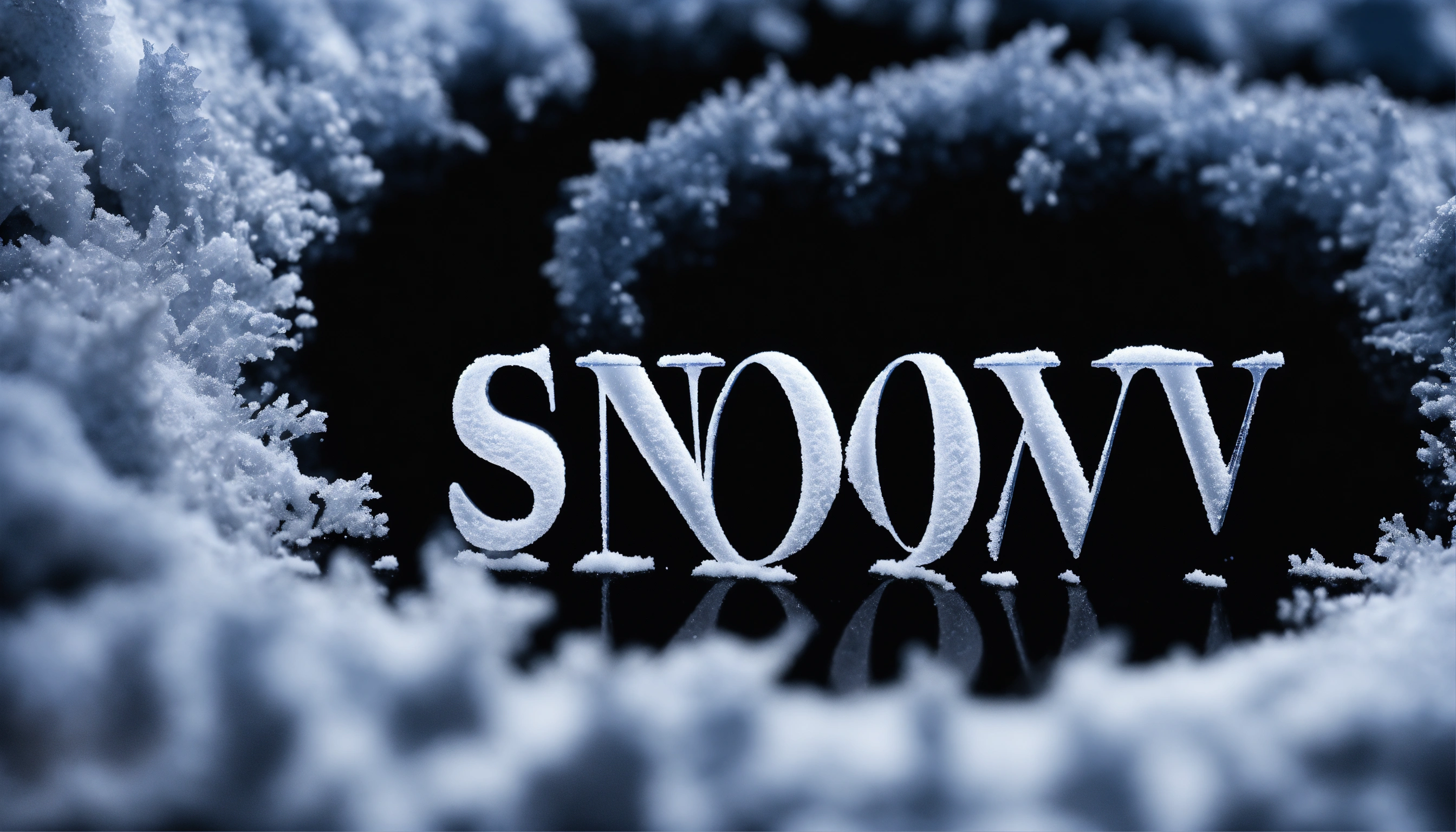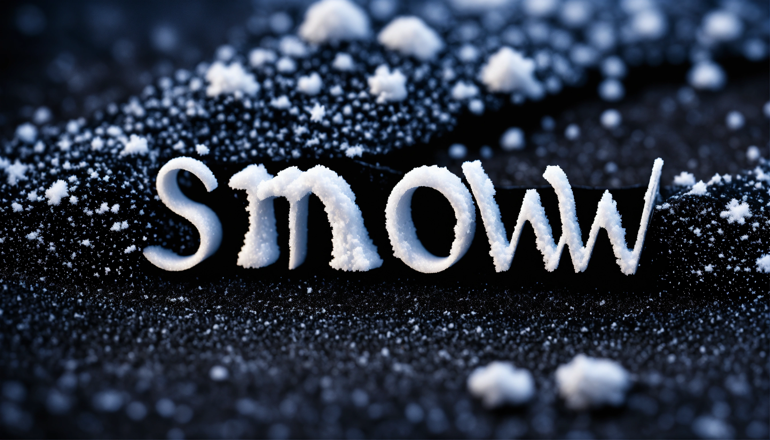 Black background, the word snow made of snow in 3d 4k resolution detailed, miki asai macro photography, close-up, hyper detailed, trending on artstation, sharp focus, studio photo, intricate details, highly detailed, by greg rutkowski