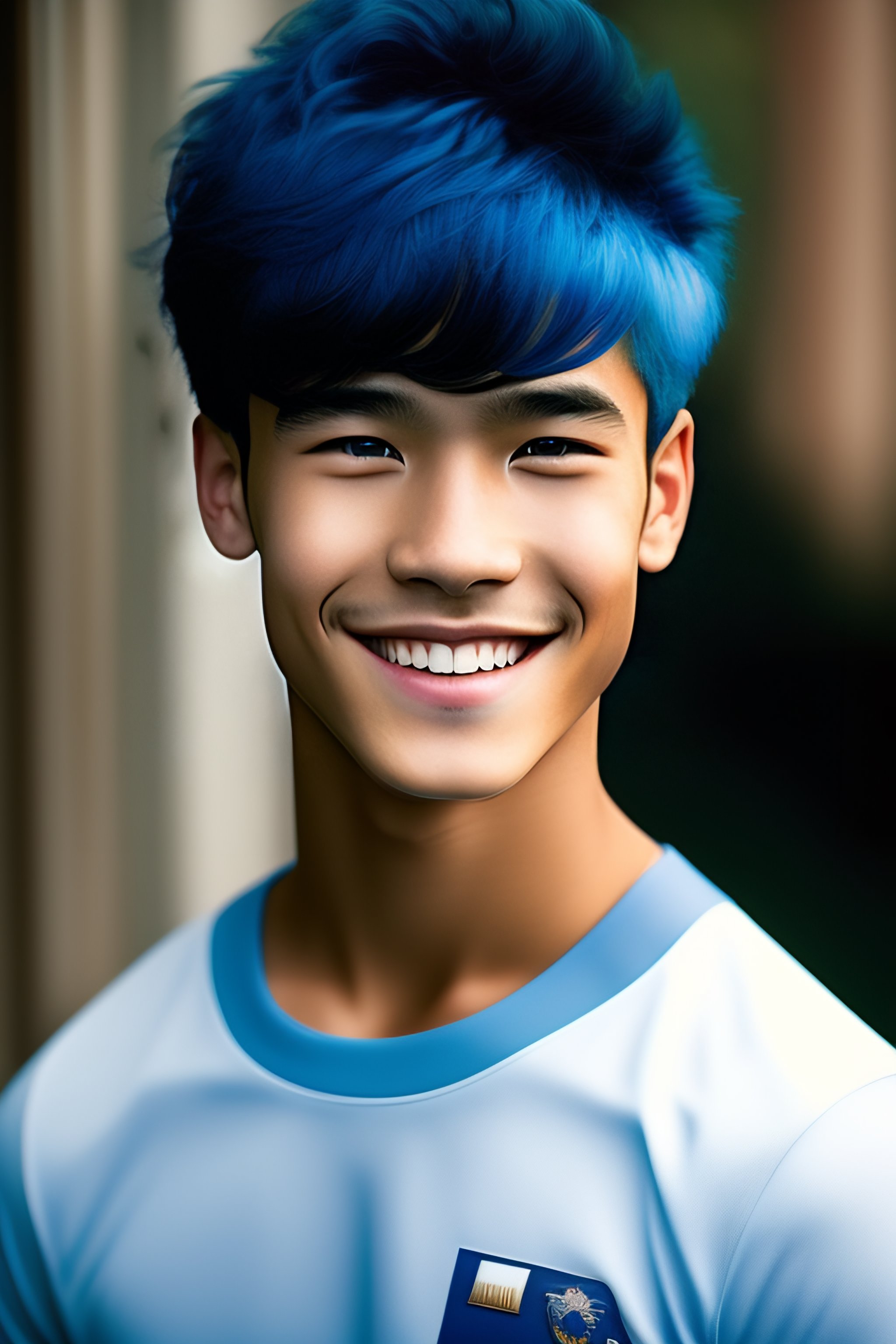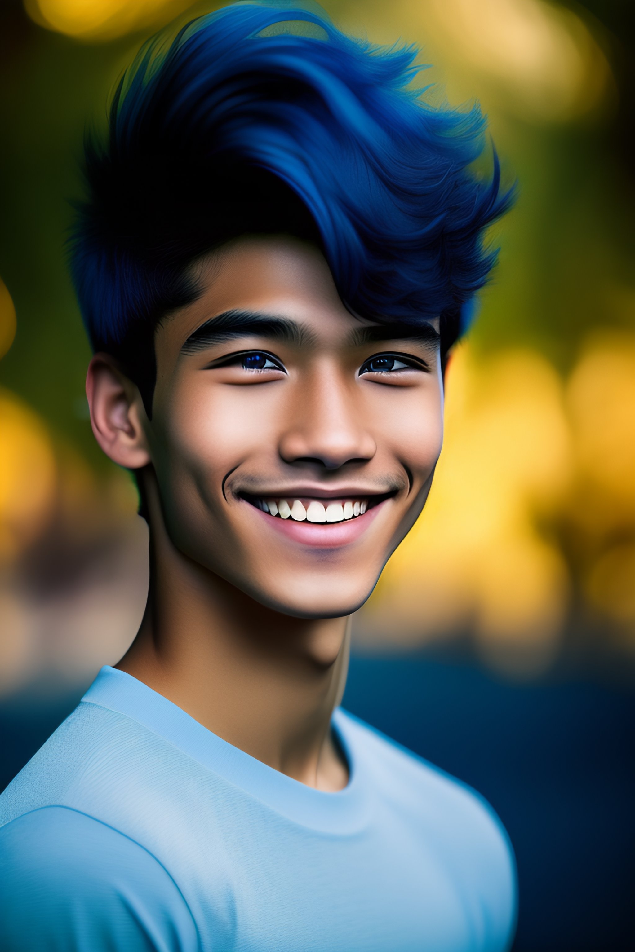 with blue skin and dark blue hair