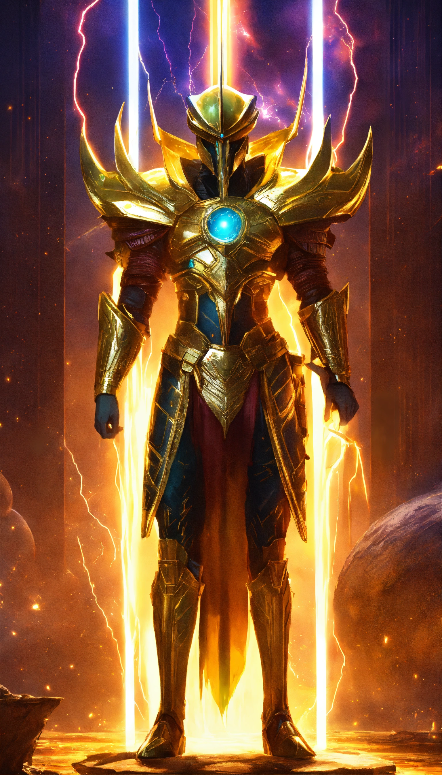 pulsing with golden lightning energy.