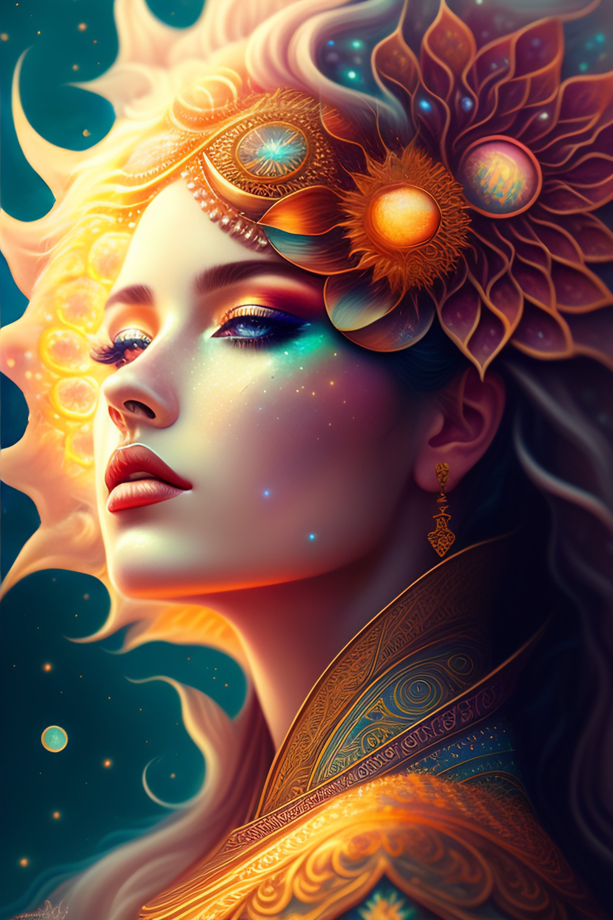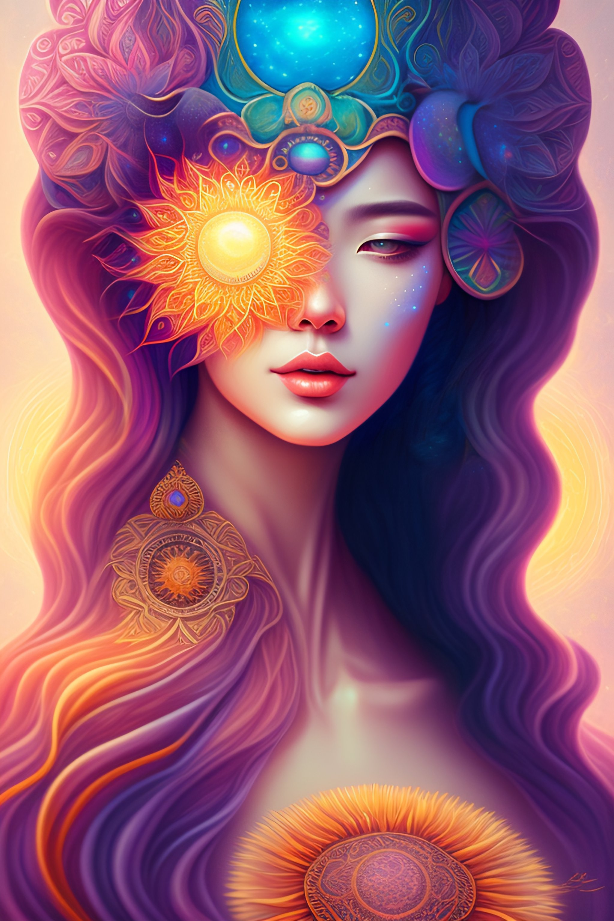 You are the sun experiencing itself., universe fulfilling the body, fantasy, renaissance aesthetic, pastel colors aesthetic, intricate fashion clothing, highly detailed, surrealistic, digital painting, concept art, sharp focus, illustration