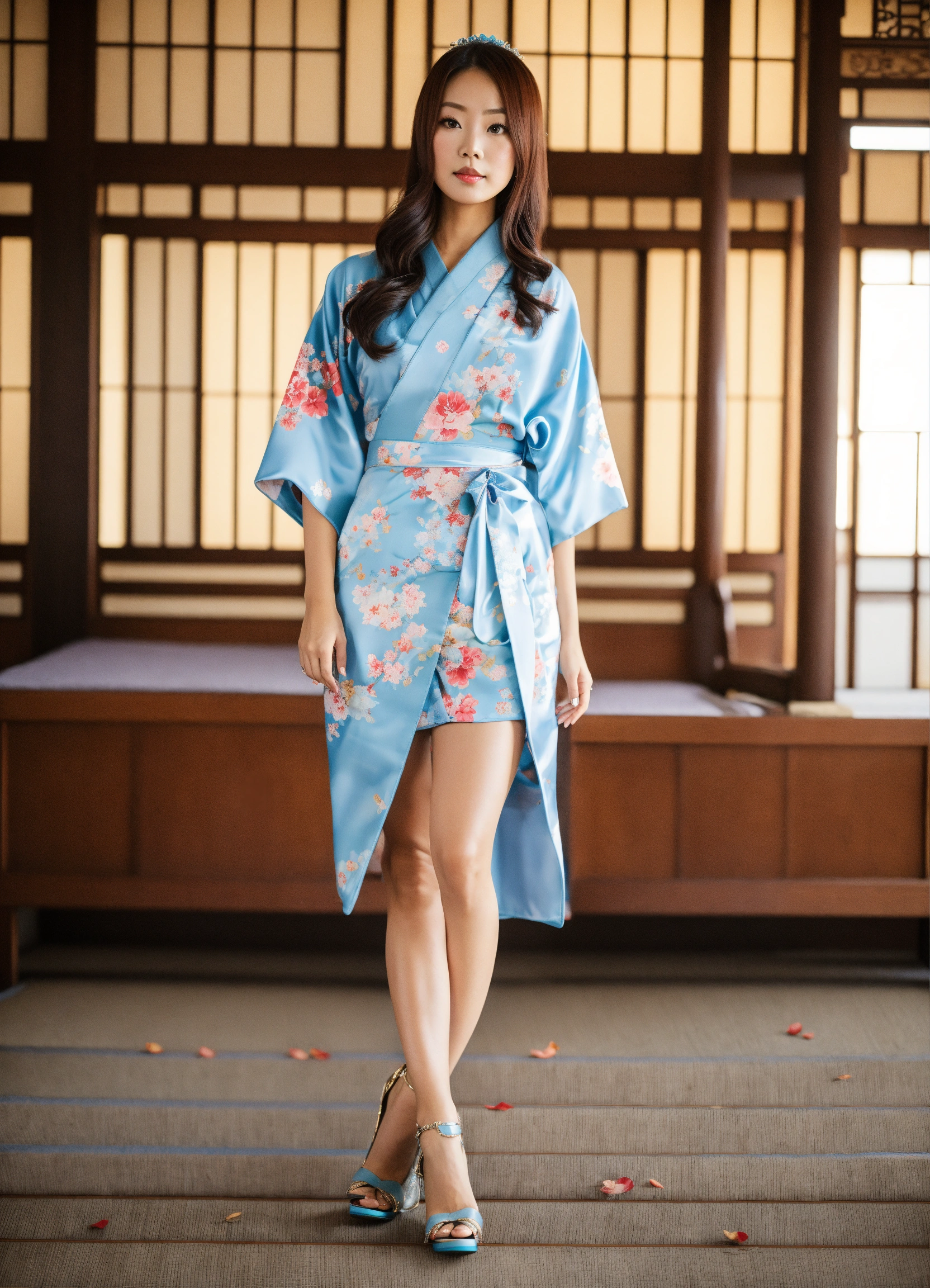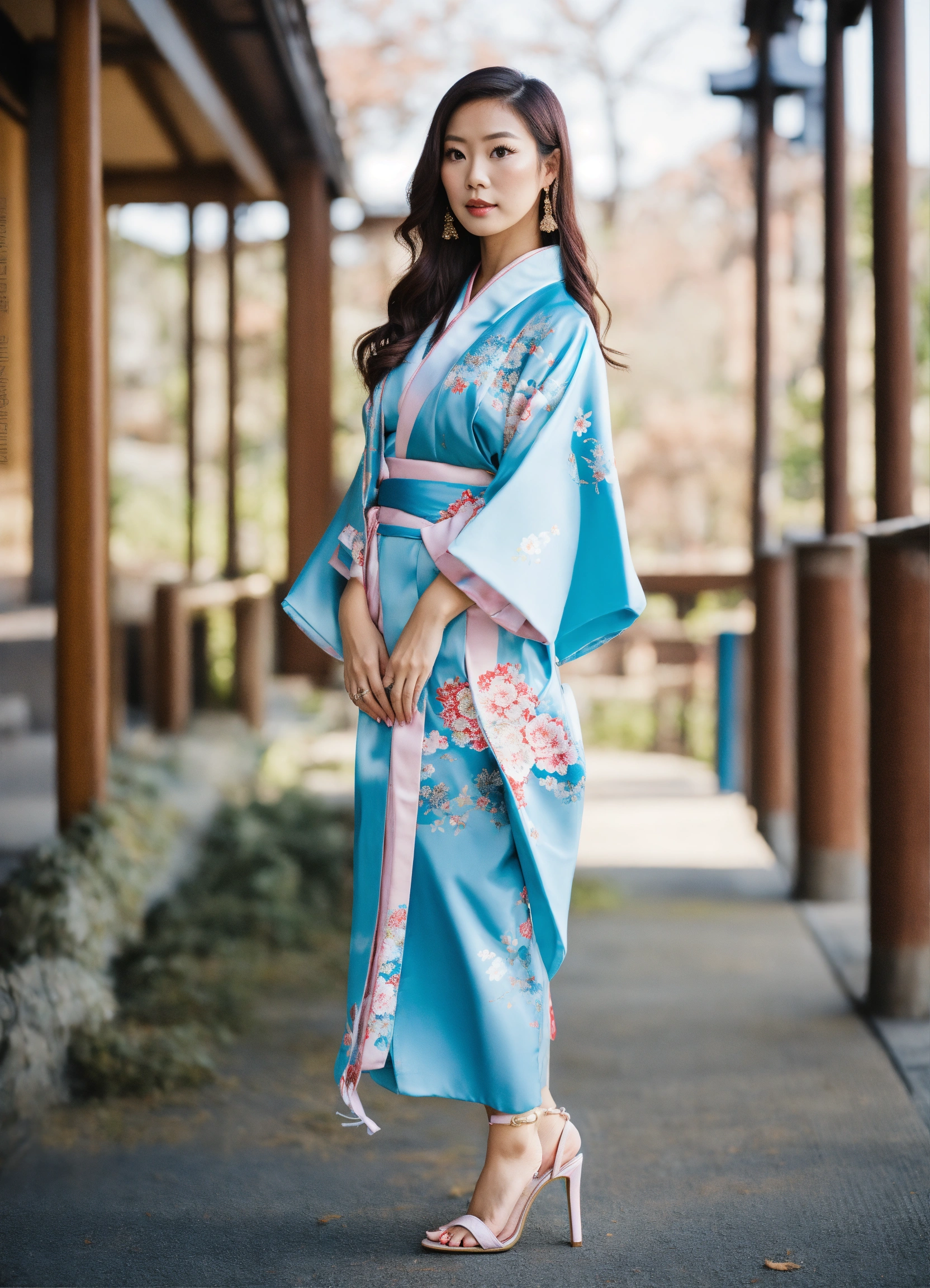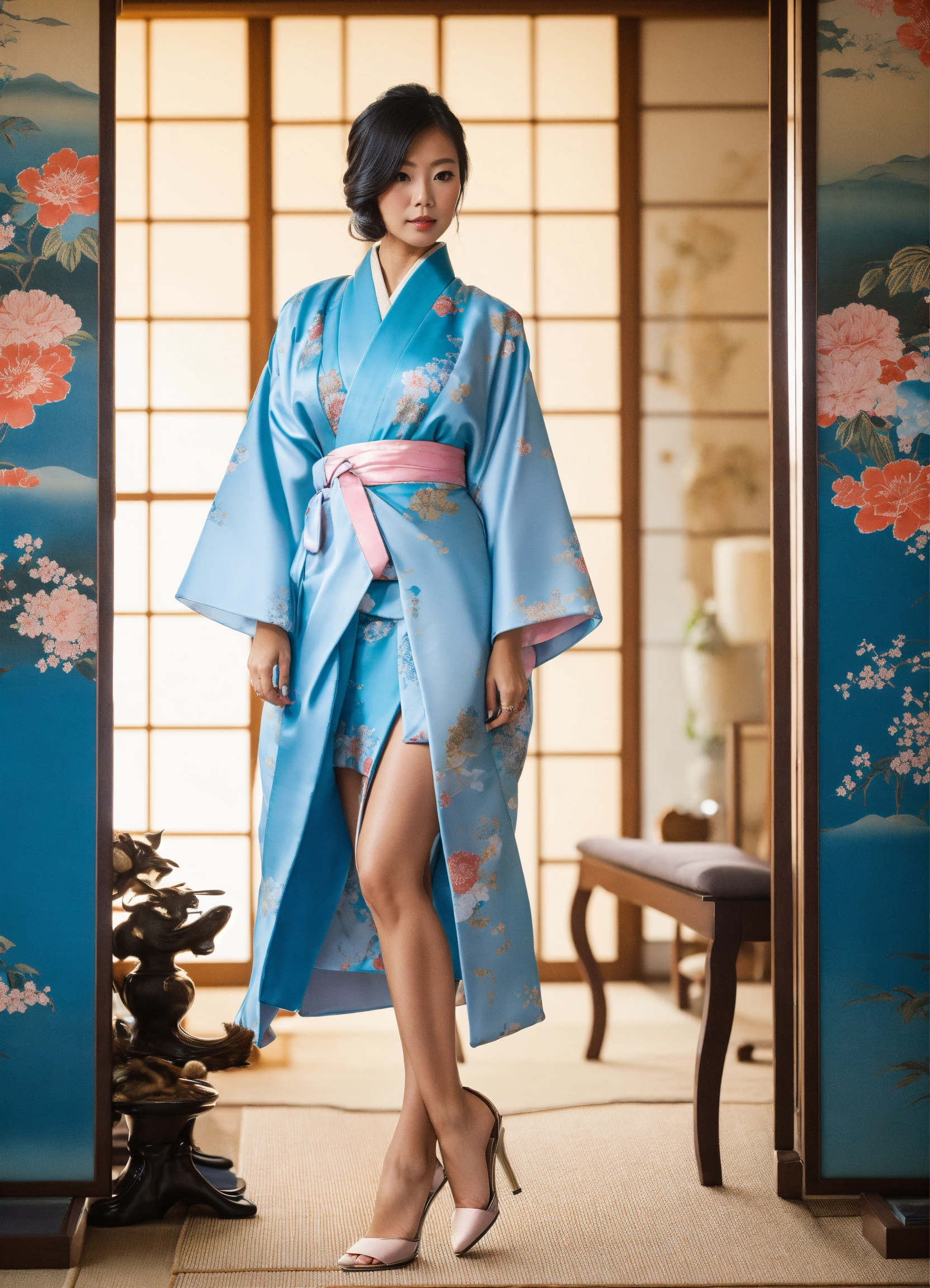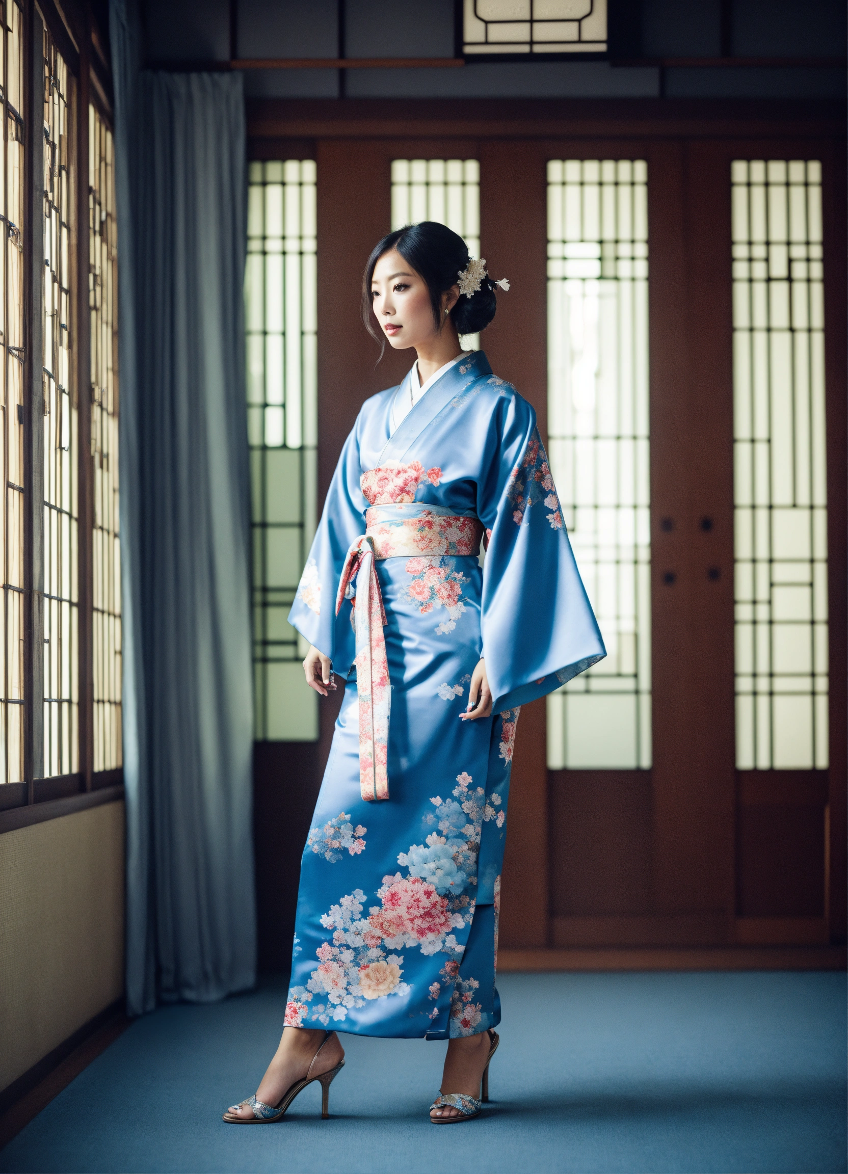 Jiu fancy baby blue japanese kimono with heels