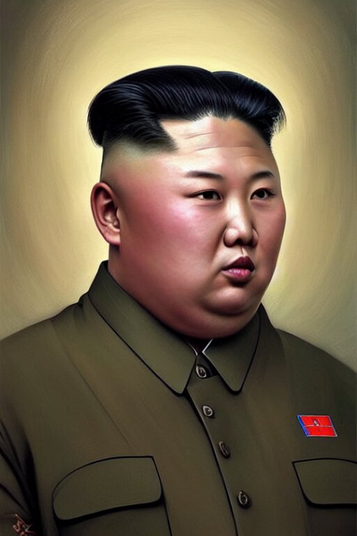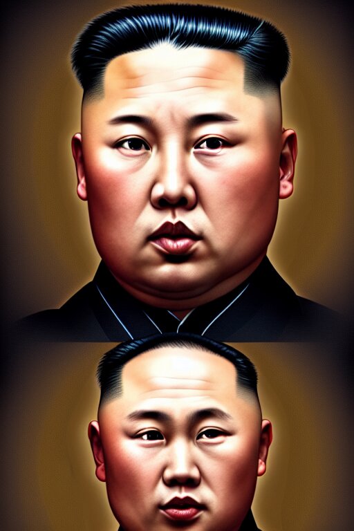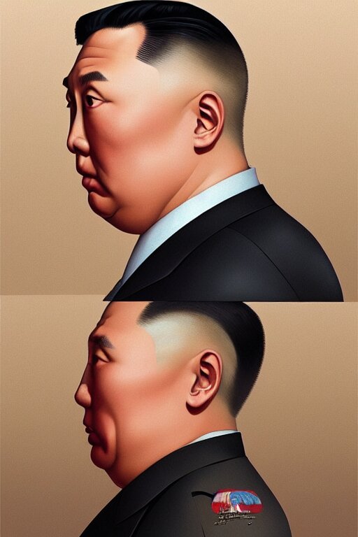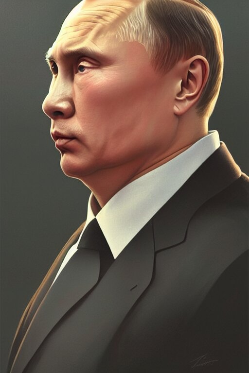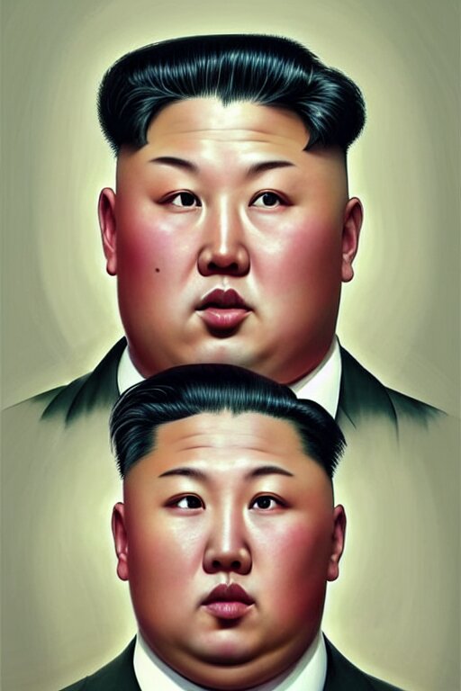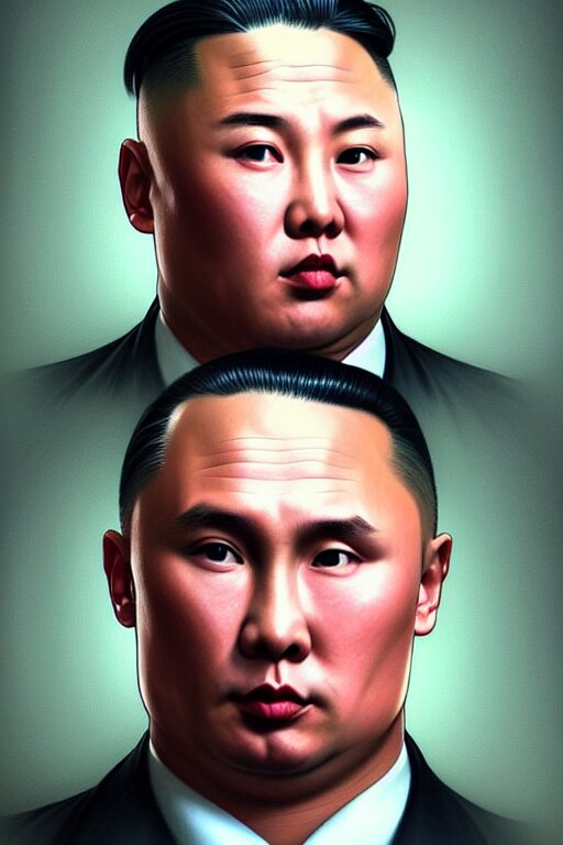 Vladimir putin with the iconic kim jong un hairstyle, realistic portrait, symmetrical, highly detailed, digital painting, artstation, concept art, smooth, sharp focus, illustration, cinematic lighting, art by artgerm and greg rutkowski and alphonse mucha