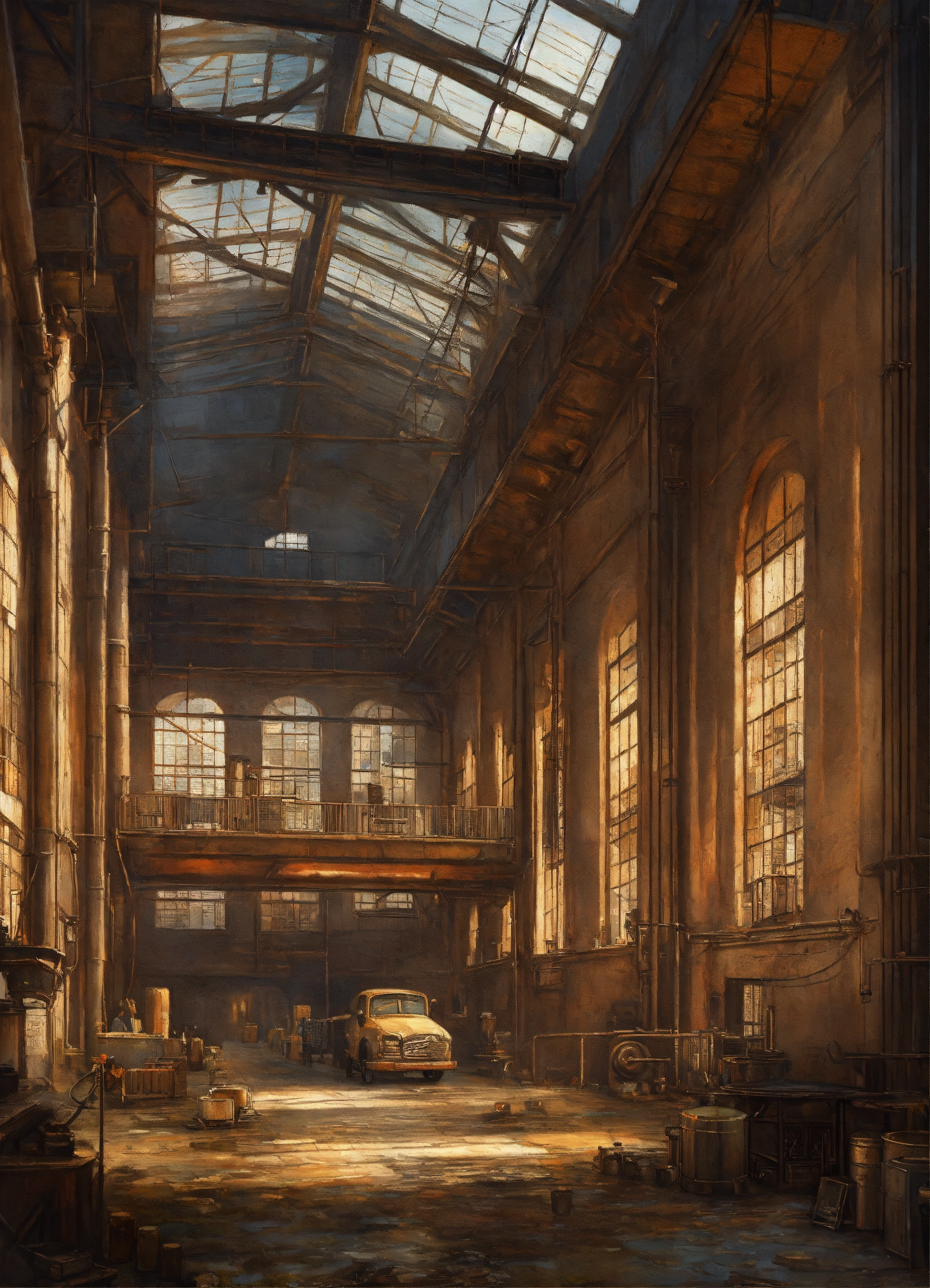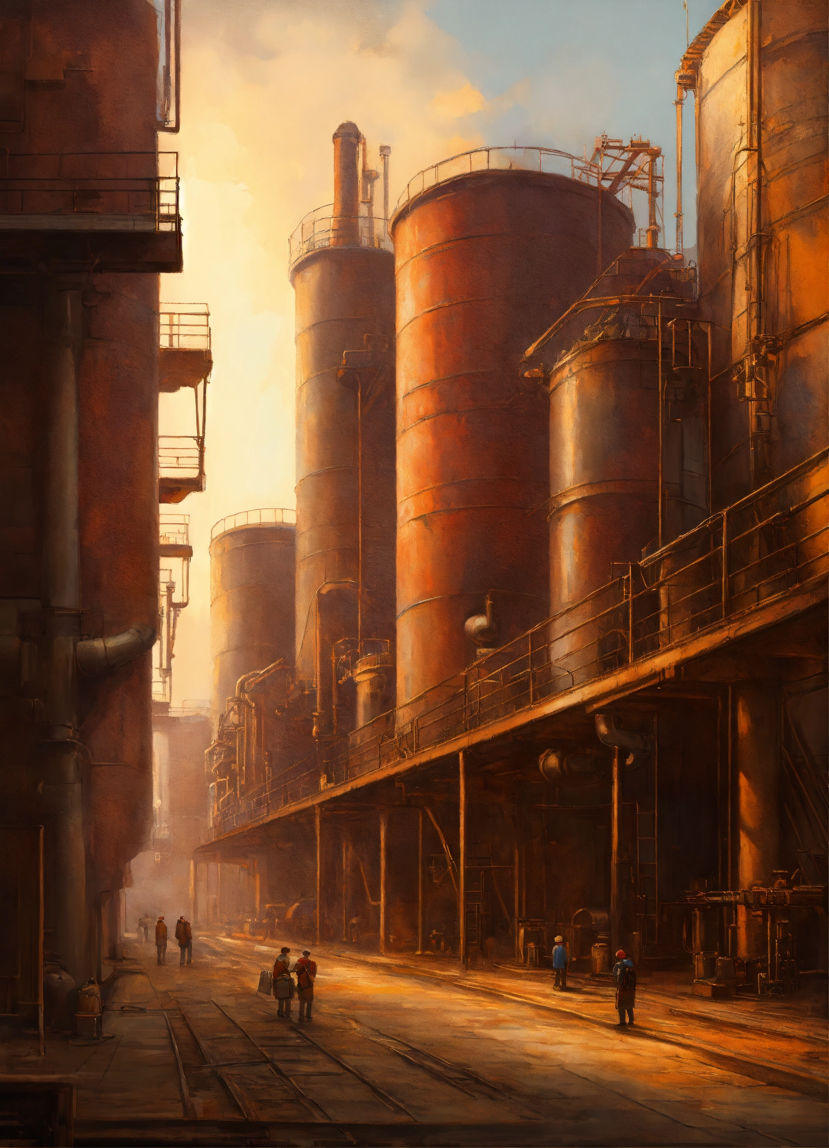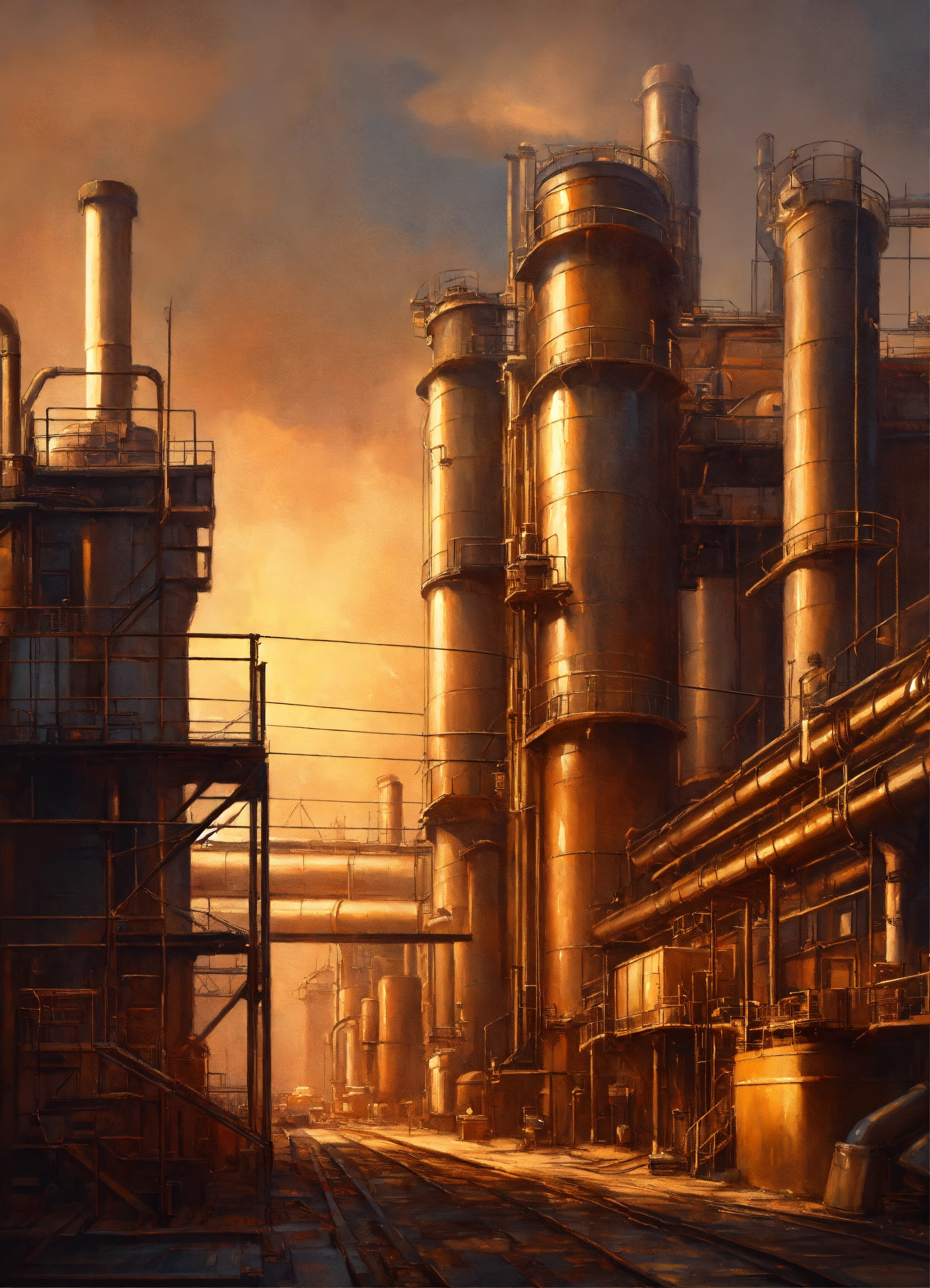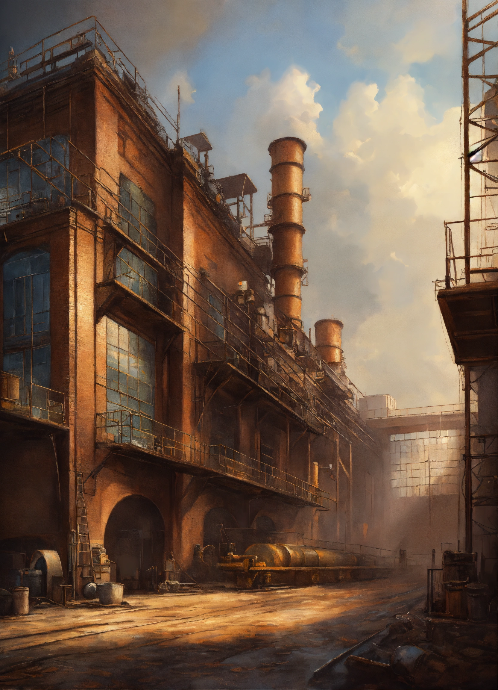 Large industrial plant, factory in the style of classicism paintings trending on artstation deviantart pinterest detailed realistic hd 8 k high resolution, oil painting, high resolution oil painting texture, oil texture