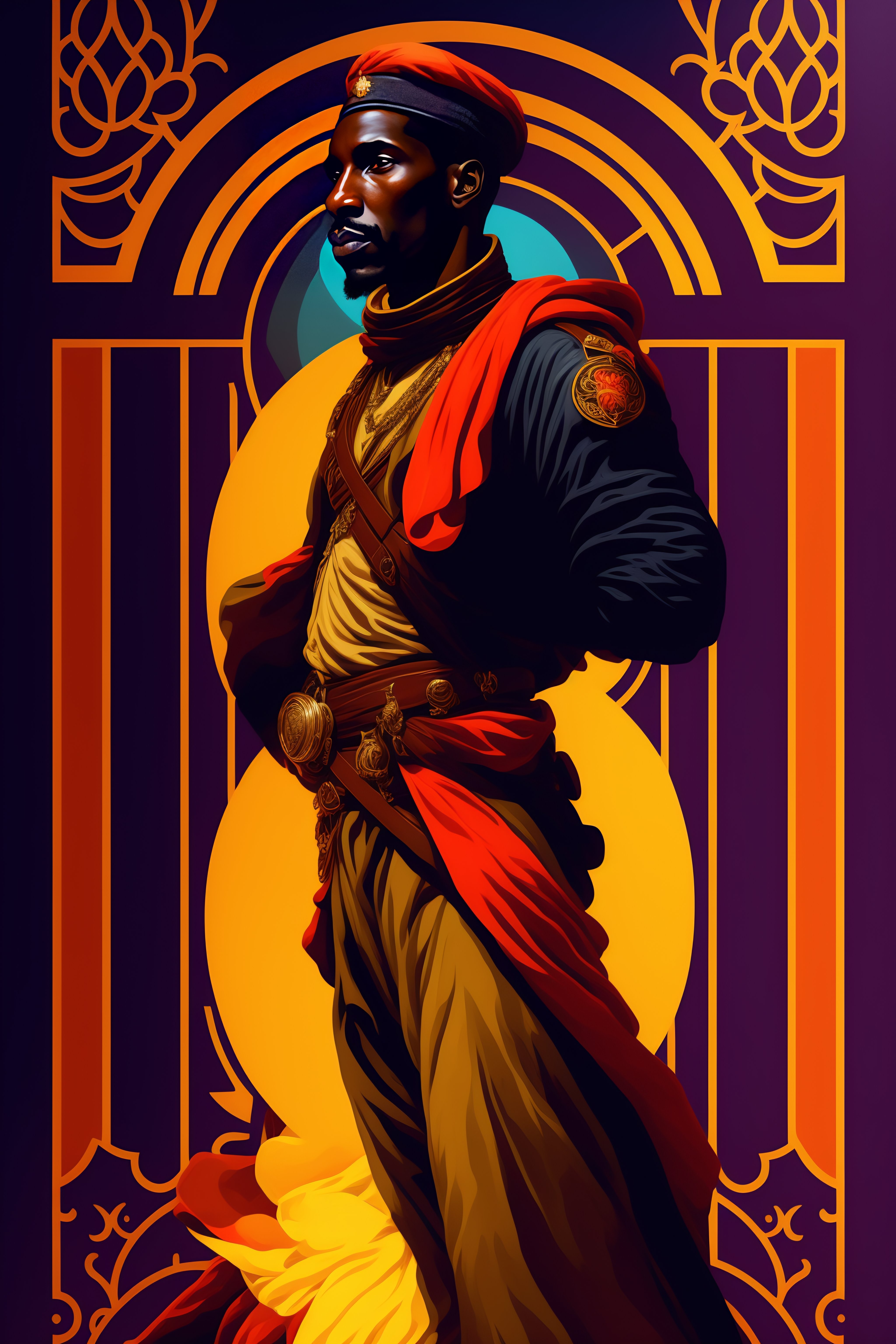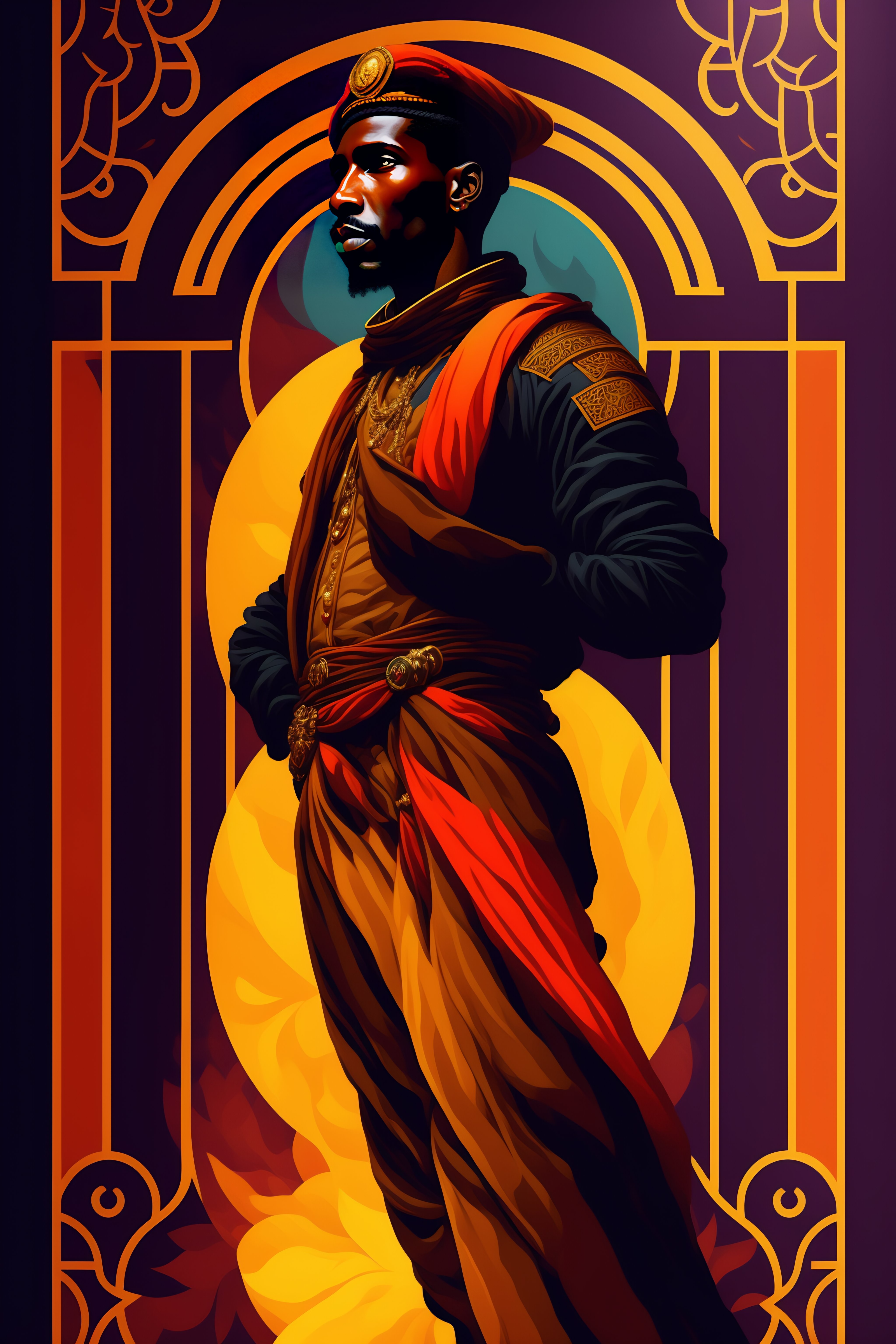 Full body thomas sankara, revolutionary soldier, camouflage, ak-47, alphonse mucha, art nouveau, character design, trending on artstation, rey tracing, epic fantasy, 8 k, 4 k, beautiful lighting, painting, rule of thirds