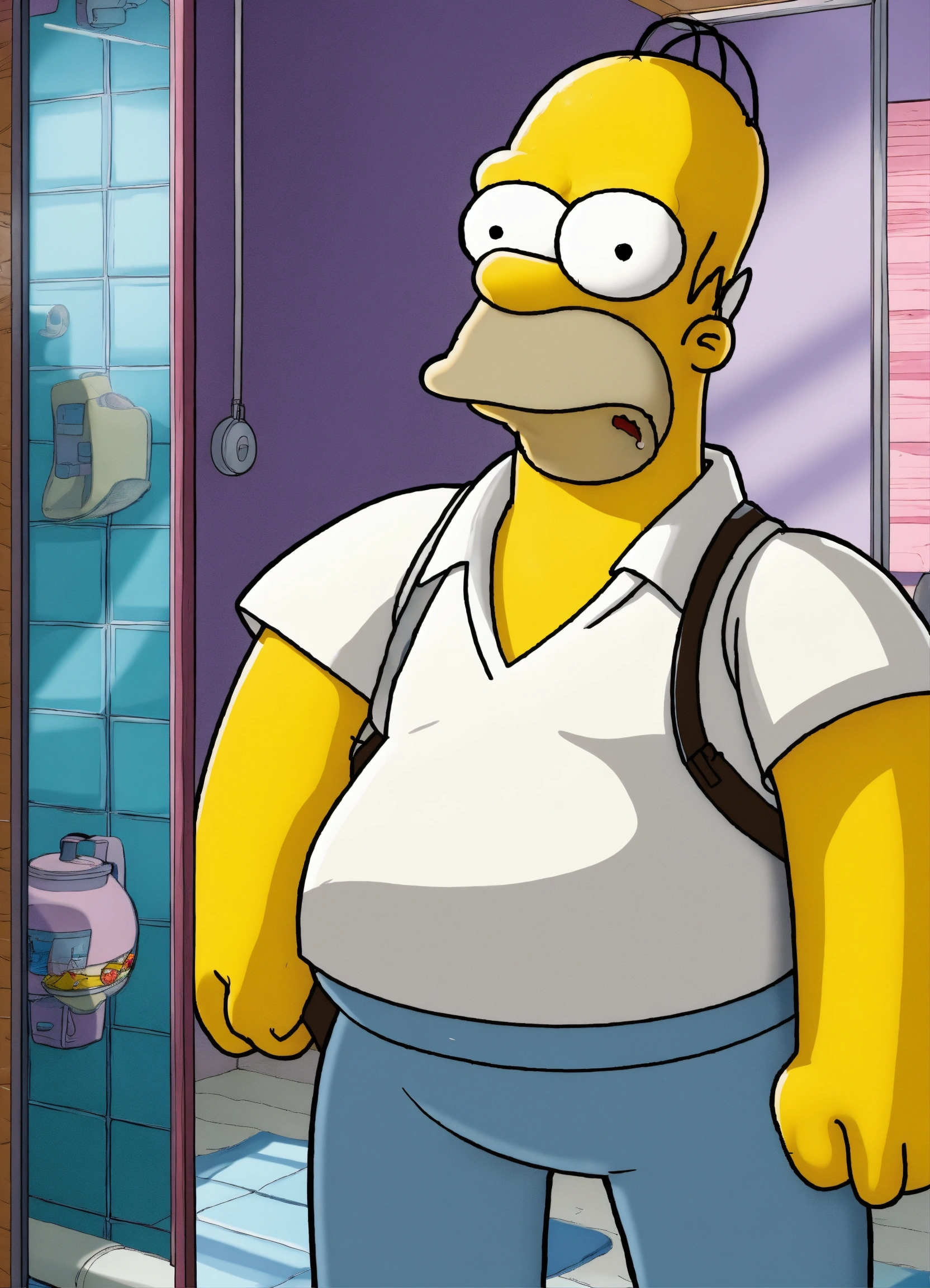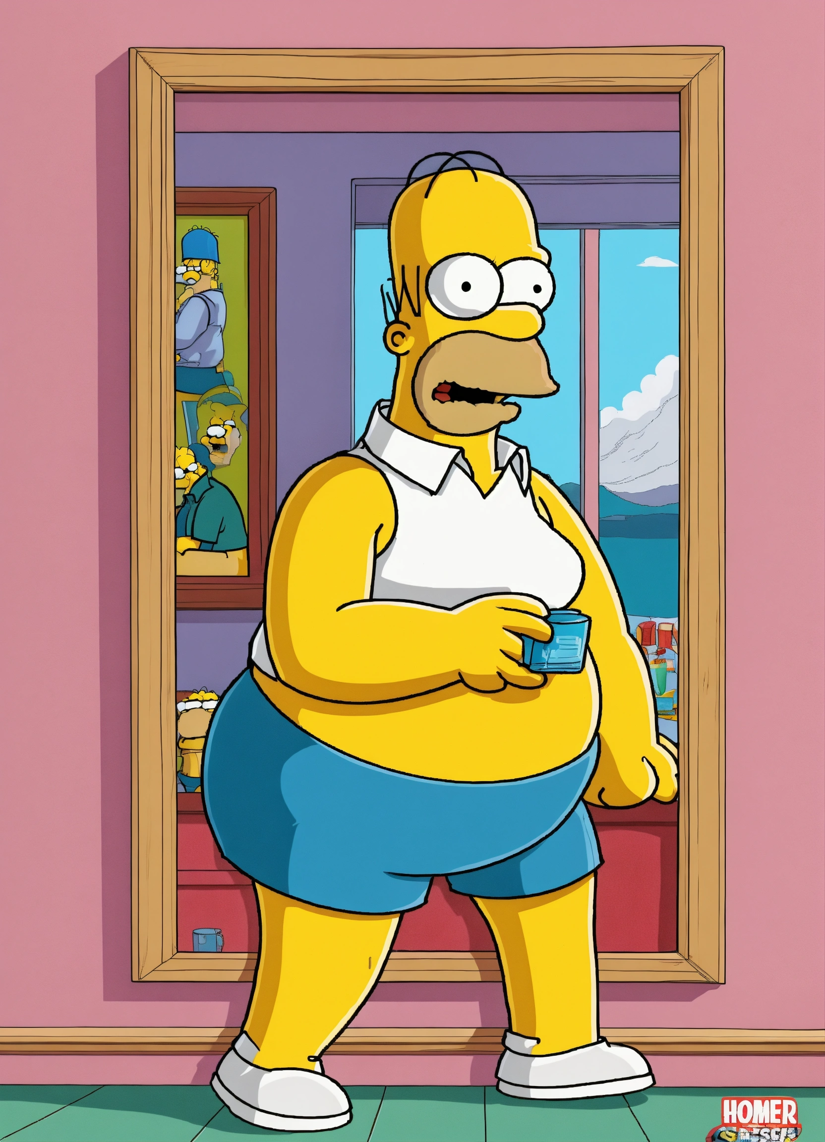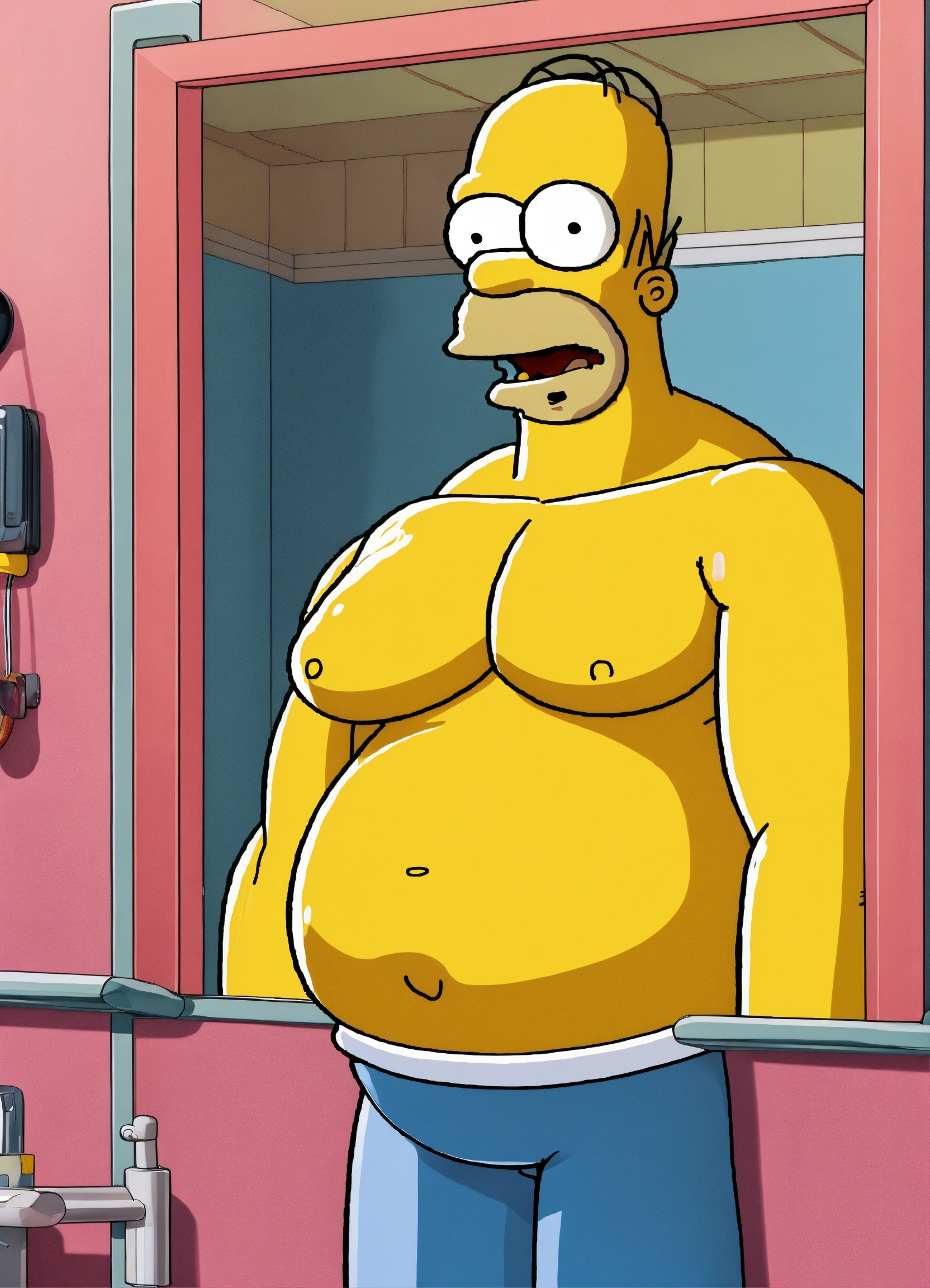 Homer simpson is finally serious about getting into shape, he looks into the mirror and sees his muscles