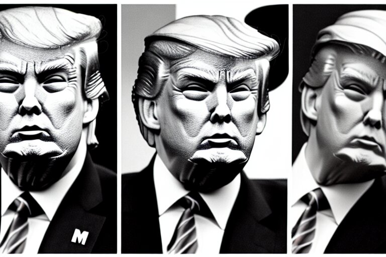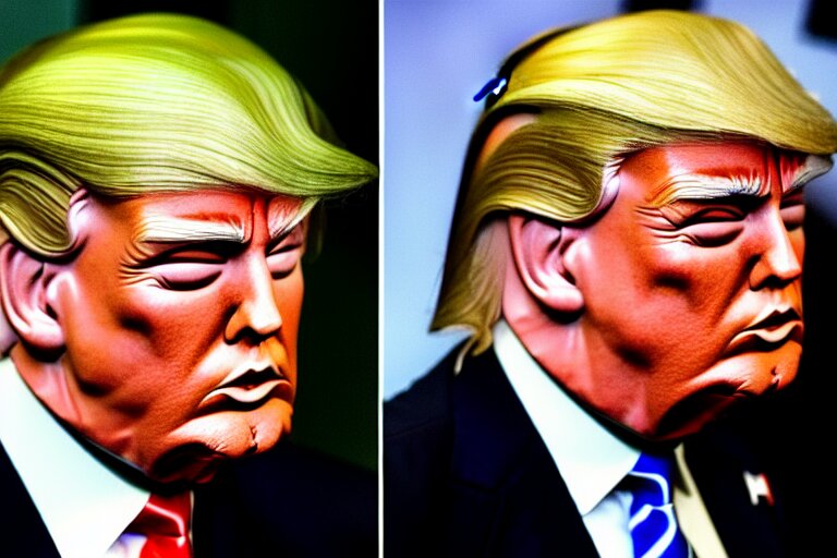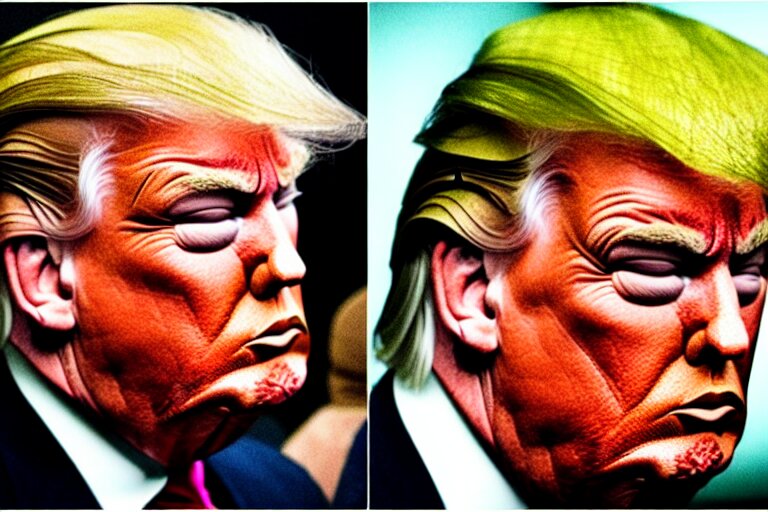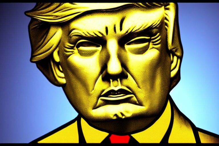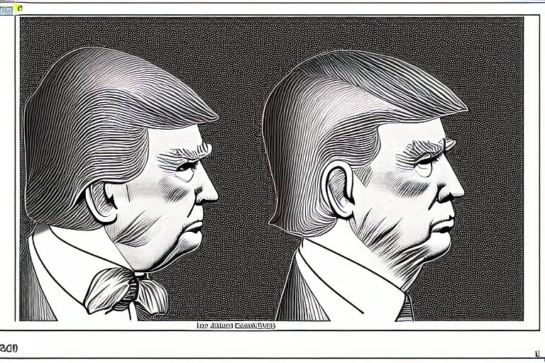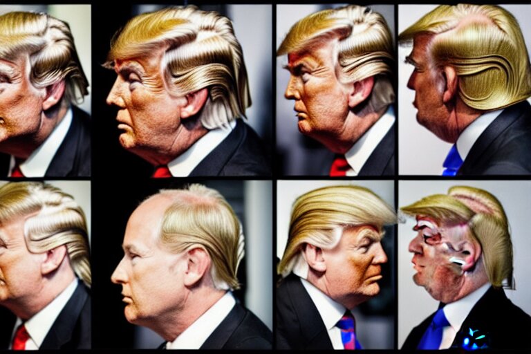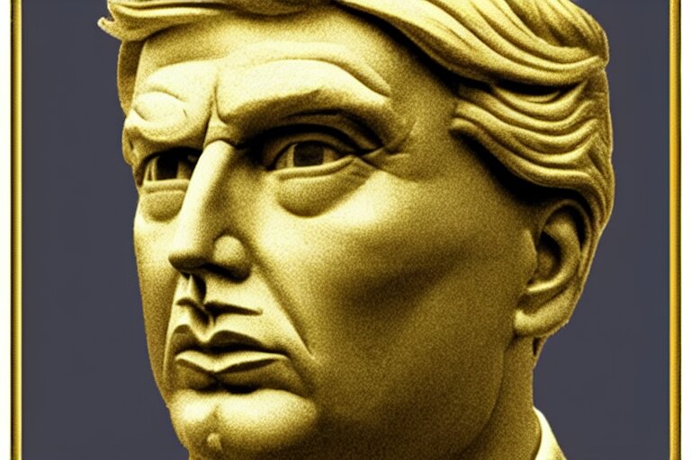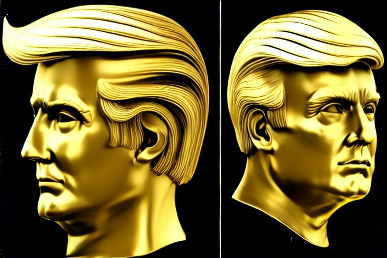 A photo of top section of side trump head with a fibonacci golden cut curve is on picture