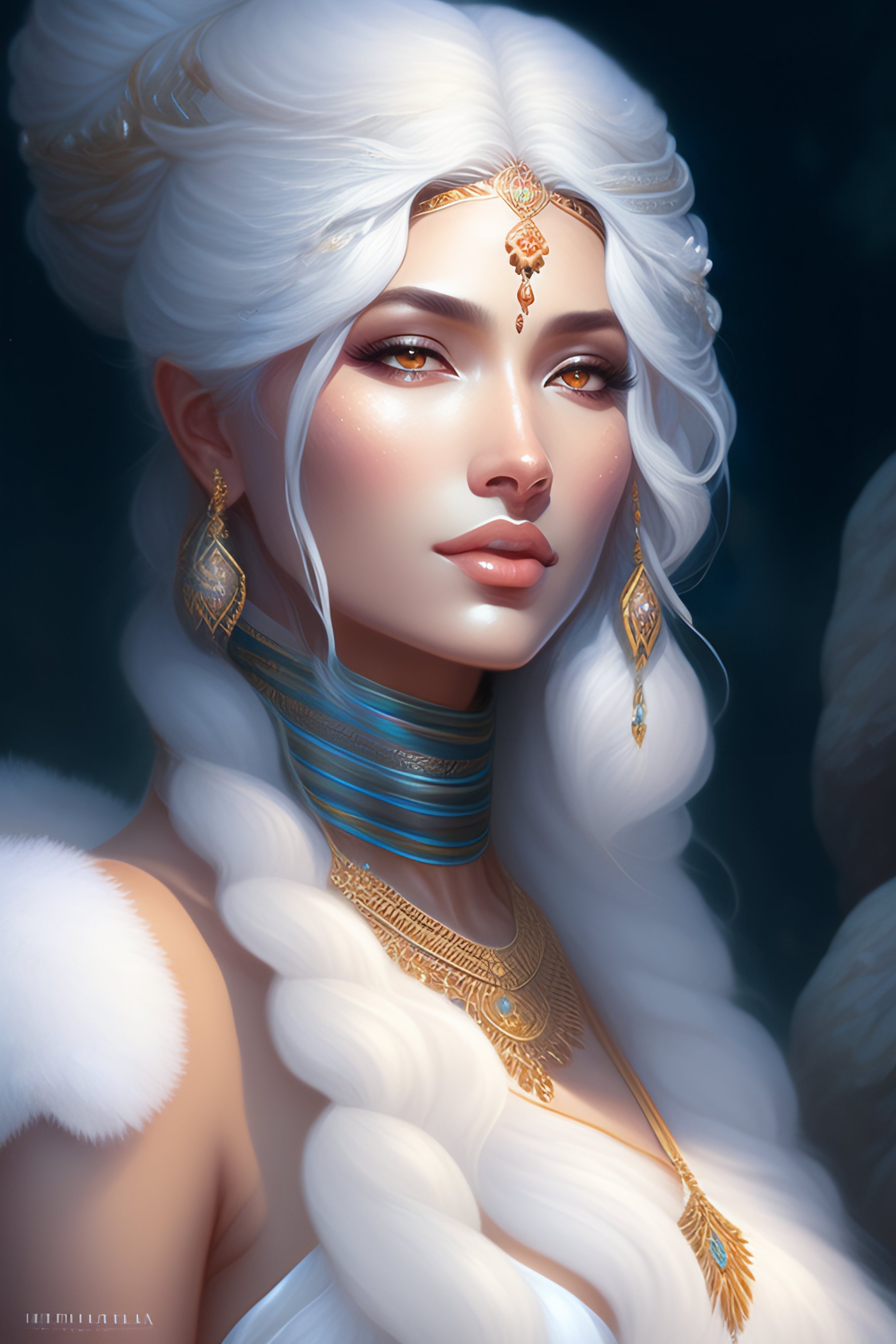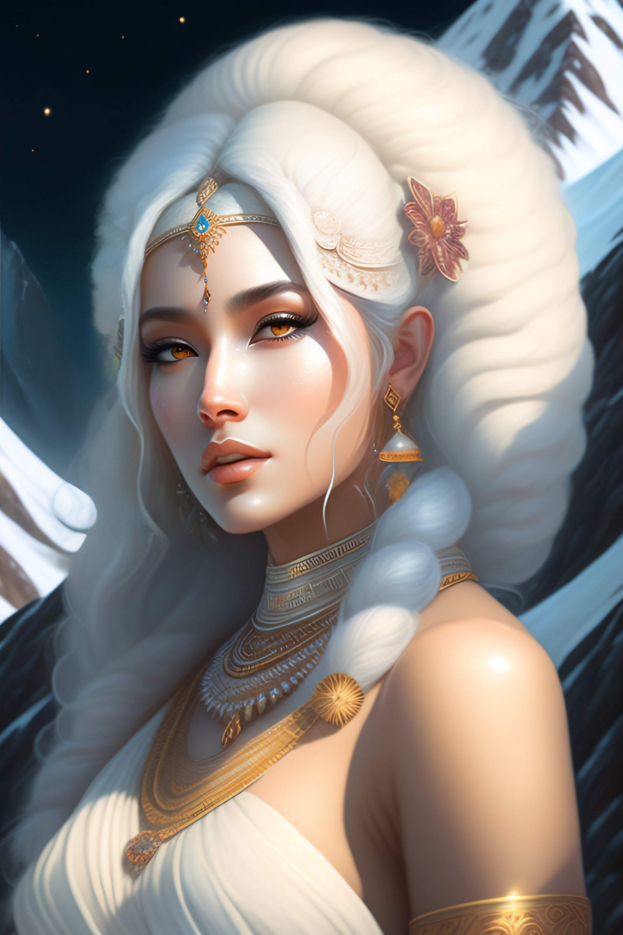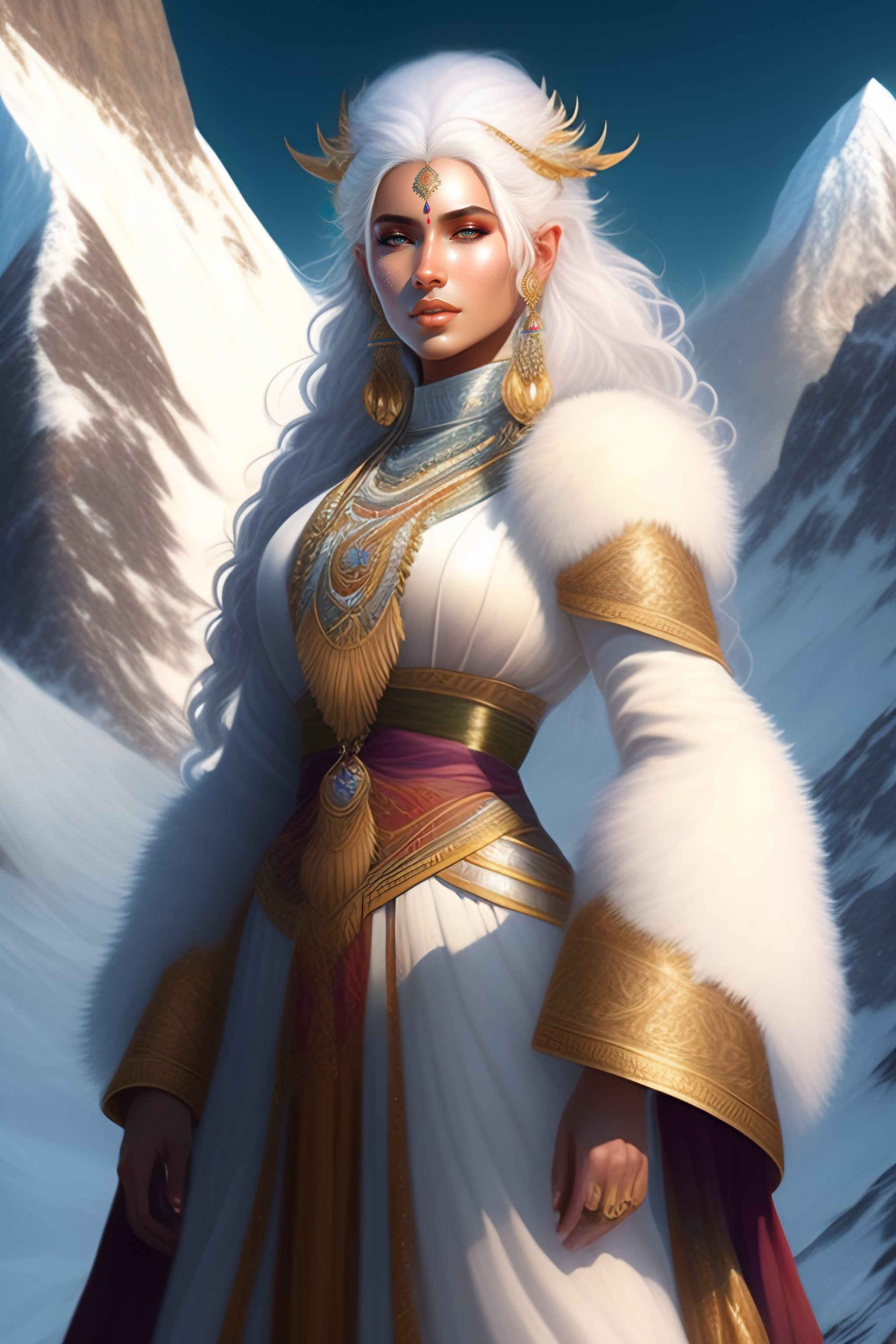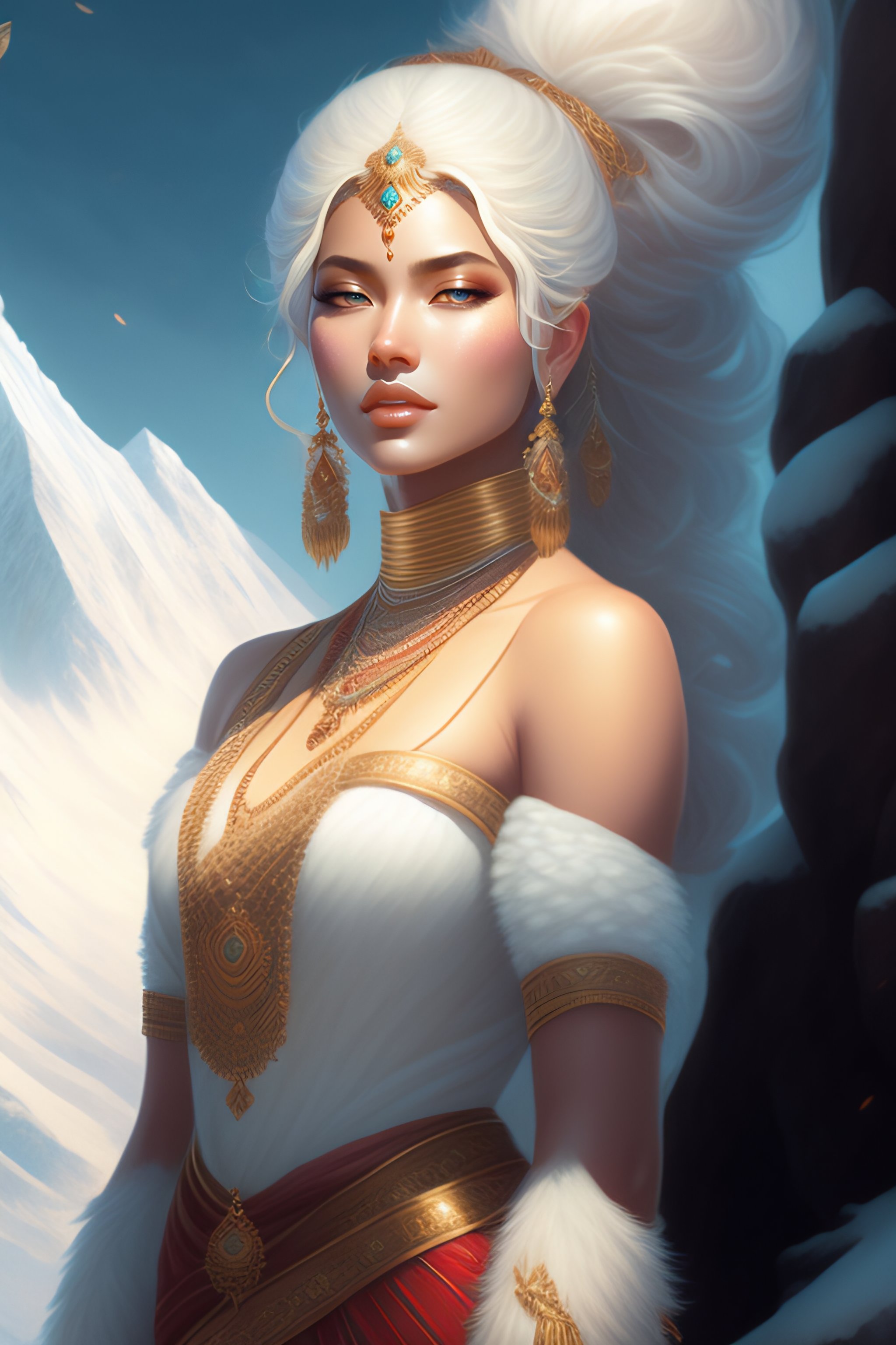 Yeti with white hair in the himalayas, intricate, elegant, highly detailed, digital painting, artstation, concept art, smooth, sharp focus, illustration, art by artgerm and greg rutkowski and alphonse mucha and william - adolphe bouguereau
