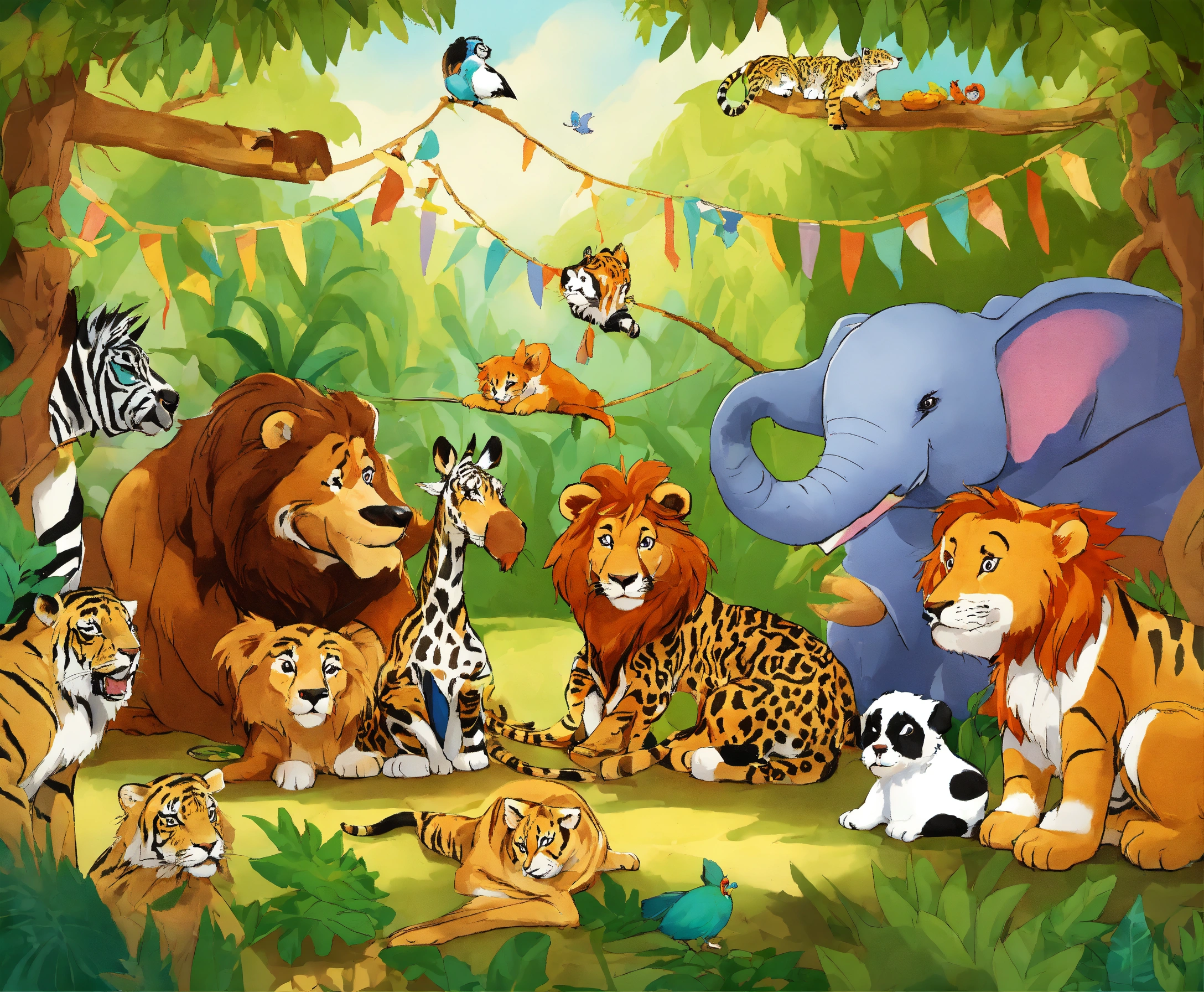 The animals gathered around, eager to hear what timmy had in mind. he continued, "how about we have a jungle olympics? we'll have games and challenges, and the winner will be crowned the jungle jumble jamboree champion!"