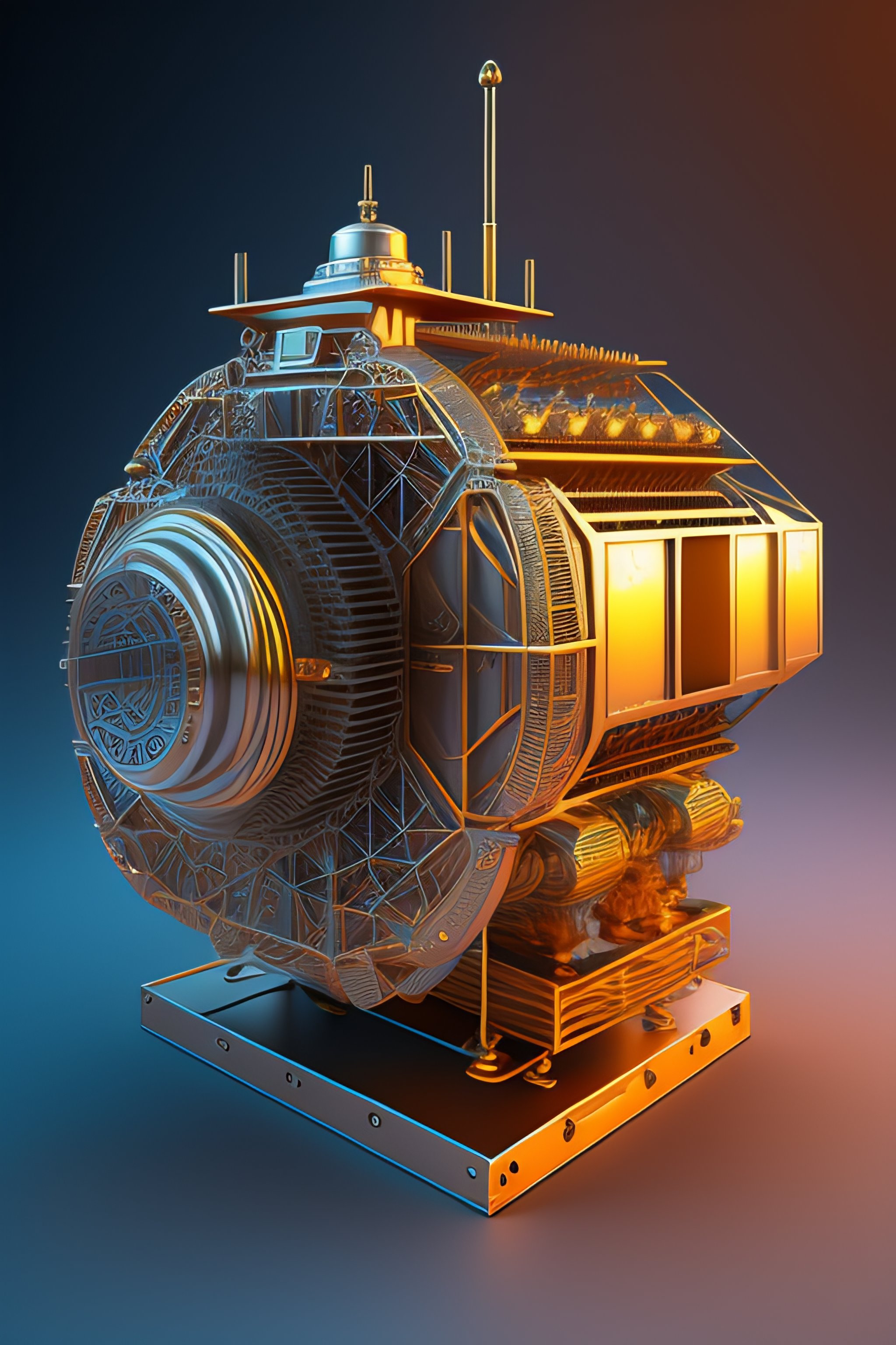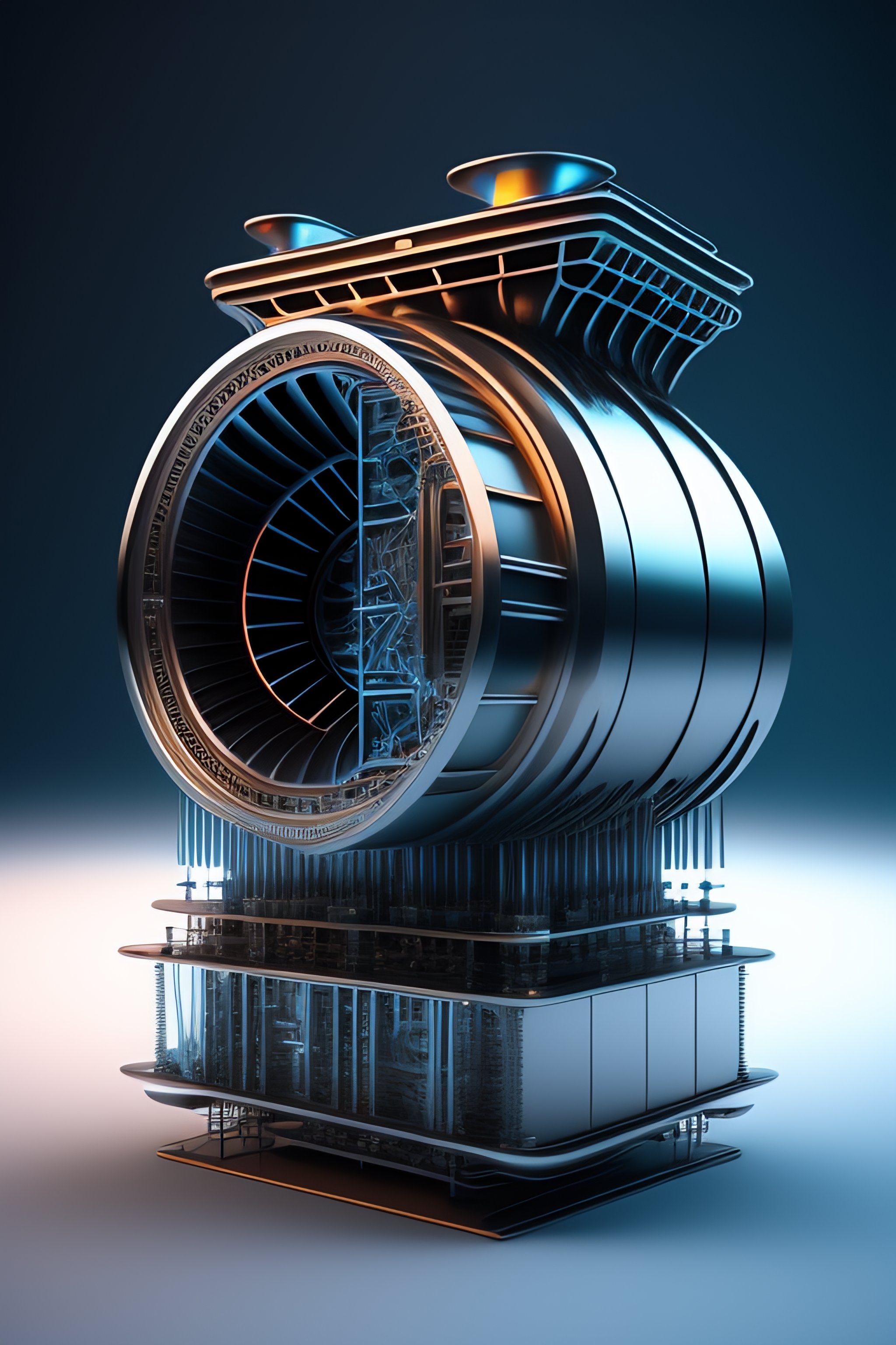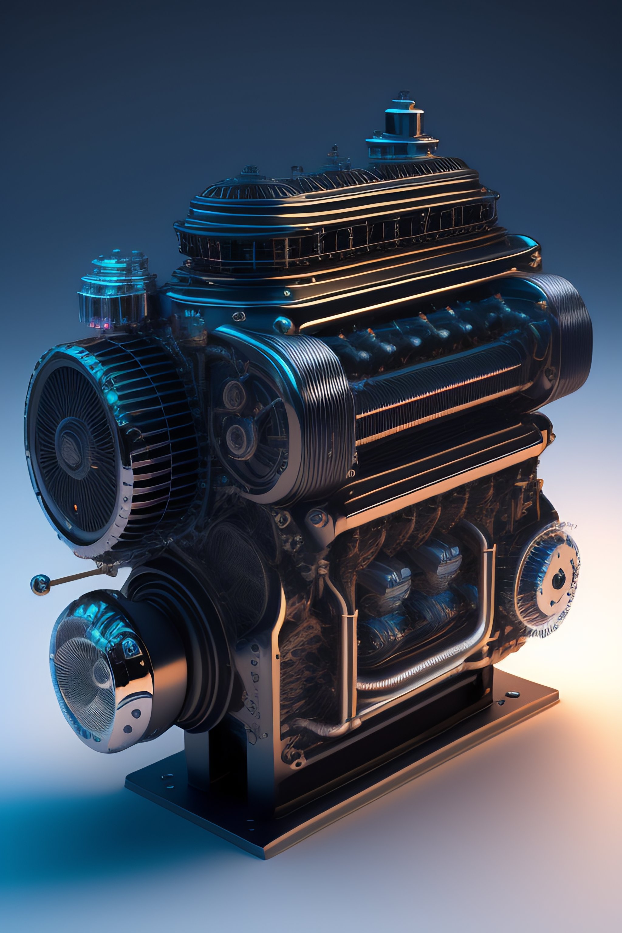 Hologram of a futuristic engine wireframe