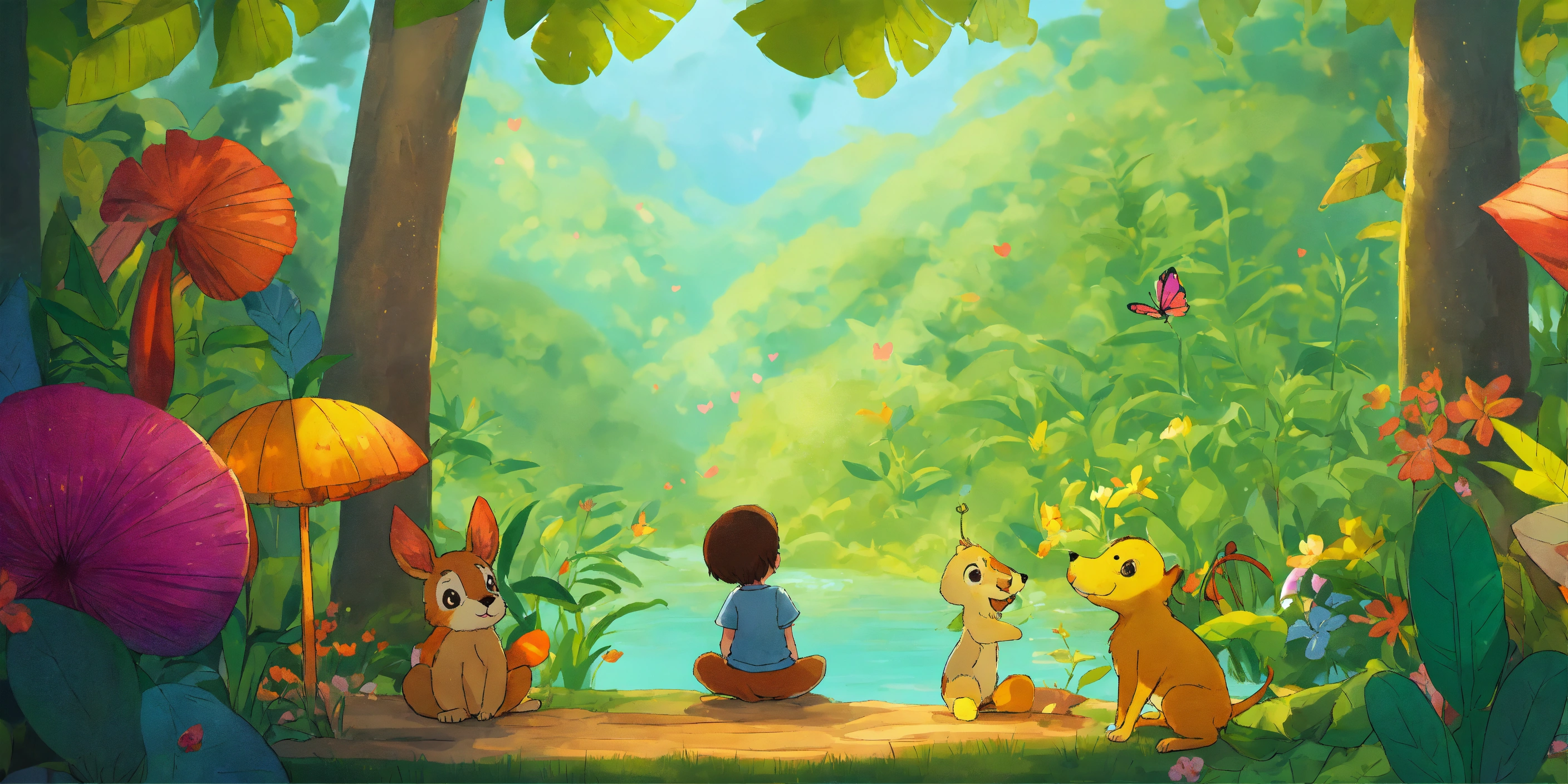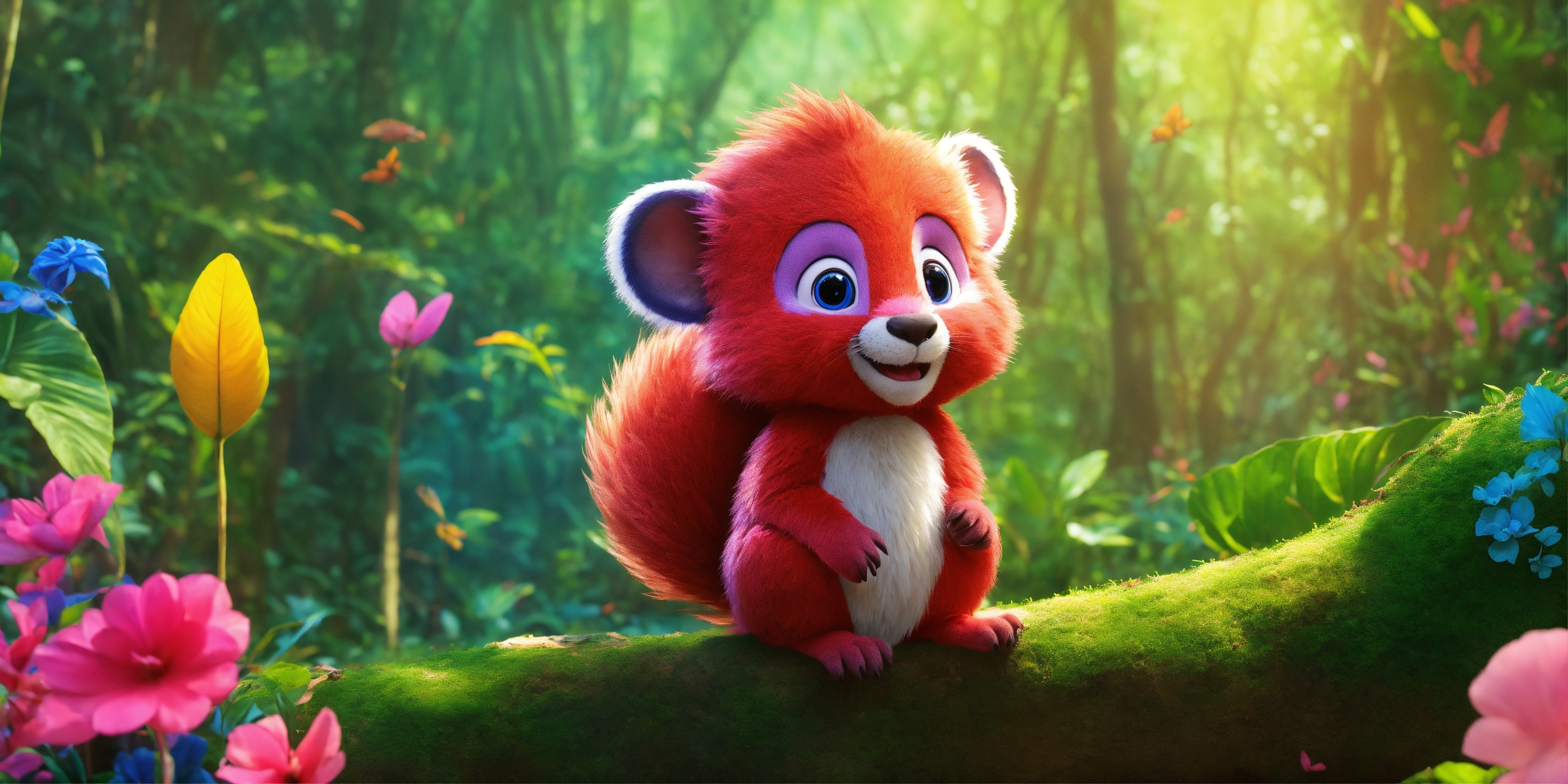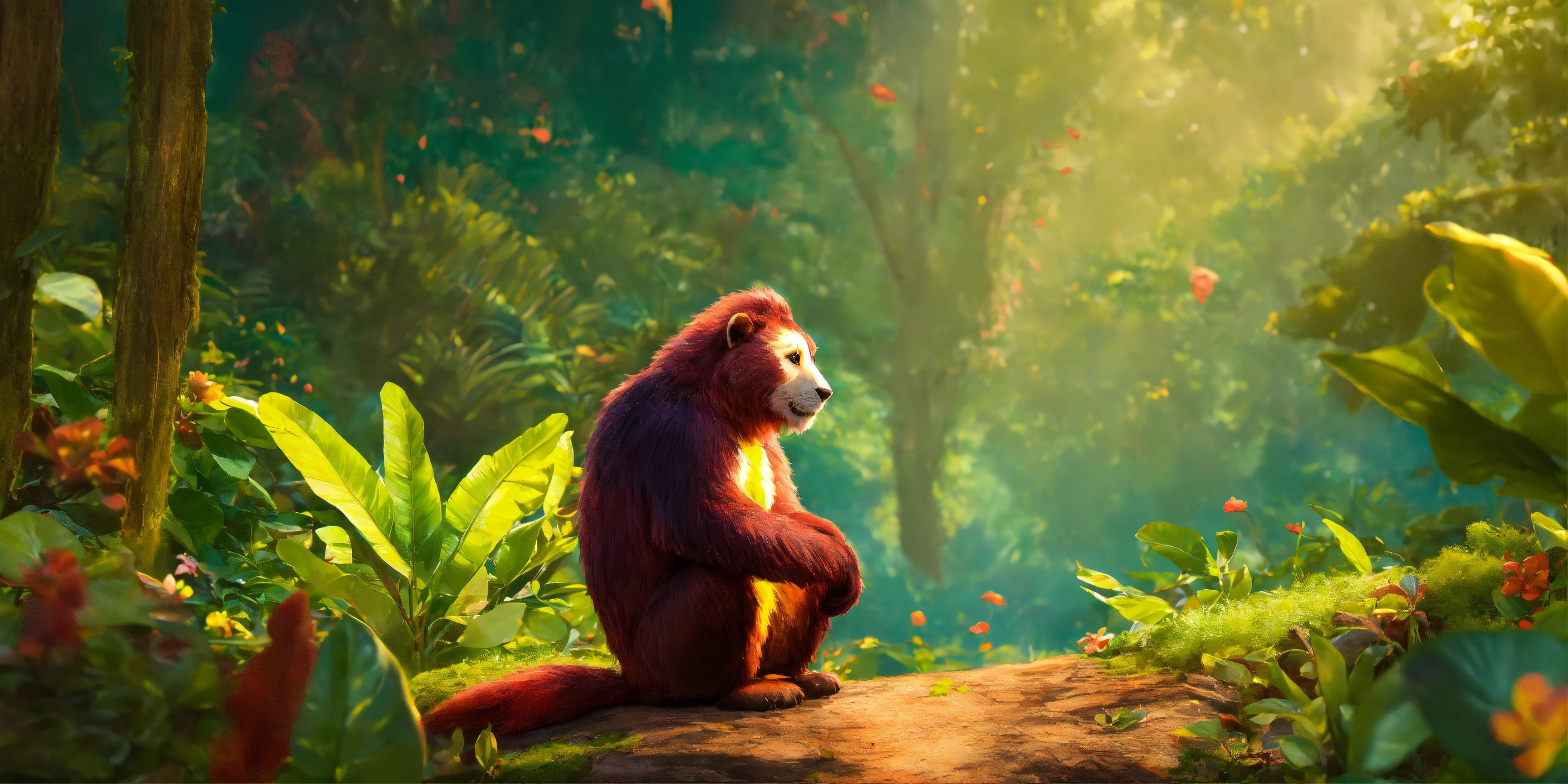 En el exuberante corazón de la selva, nuestro protagonista, un mono juguetón, se prepara para una emocionante búsqueda. muestra de la selva en segundo plano, 8k, colores vibrantes, personajes para cuentos de niños, colores para cuentos de niños.