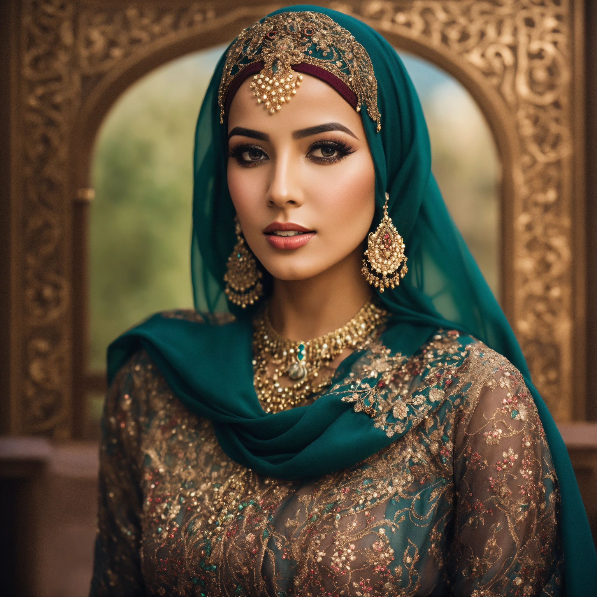Create an image showcasing the elegance of arabian women in stunning hijabs, highlight their traditional yet stylish attire that exudes grace and modesty