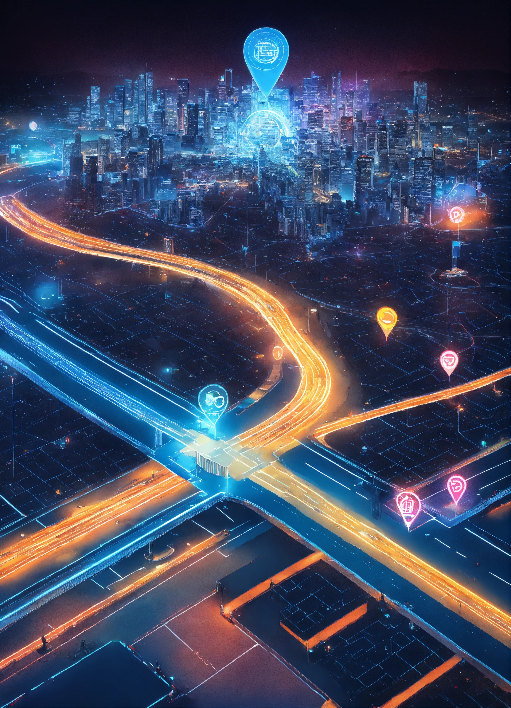 A map, showing the ai-augmented road ahead, a modern thriving technology business transforming the world.