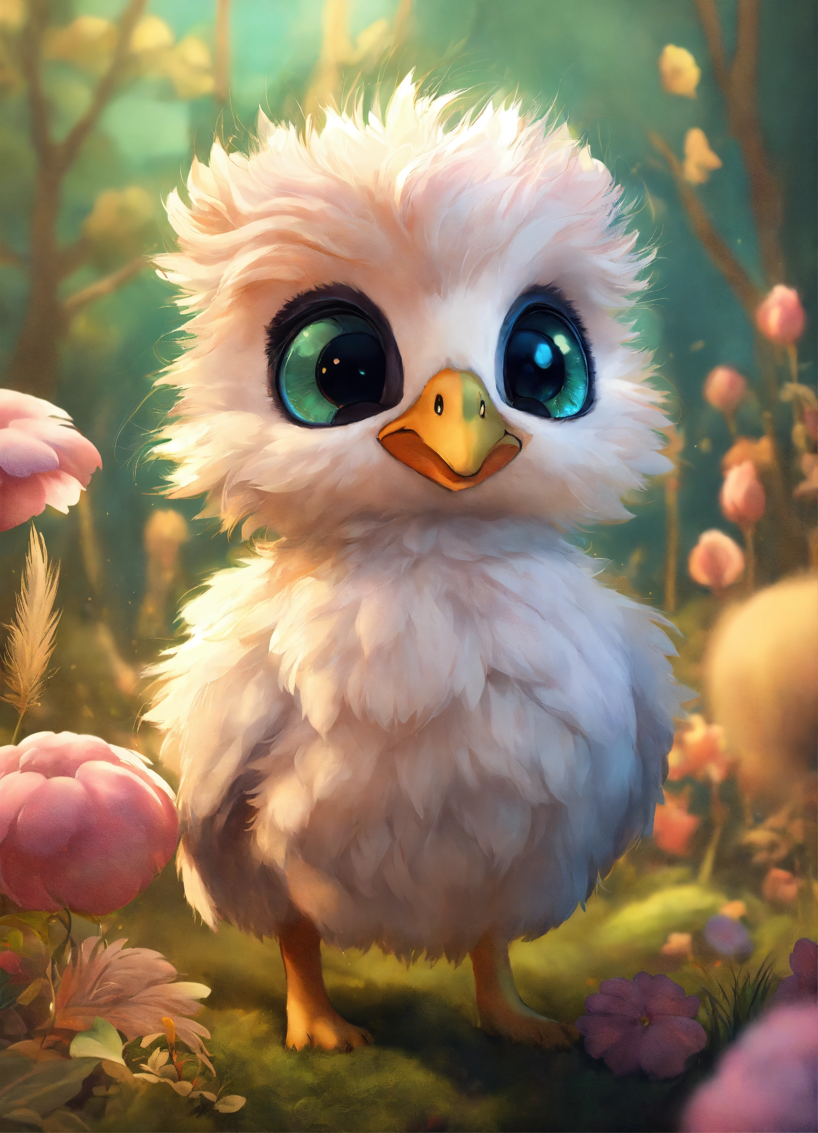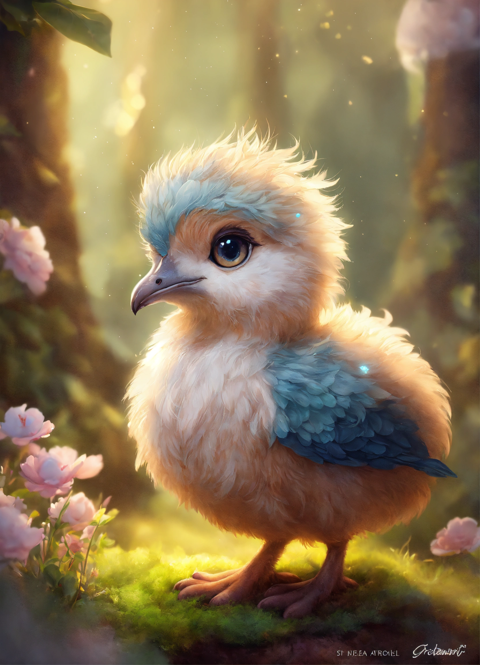 Cute and adorable cartoon fluffy baby rhea, fantasy, dreamlike, surrealism, super cute, trending on artstation