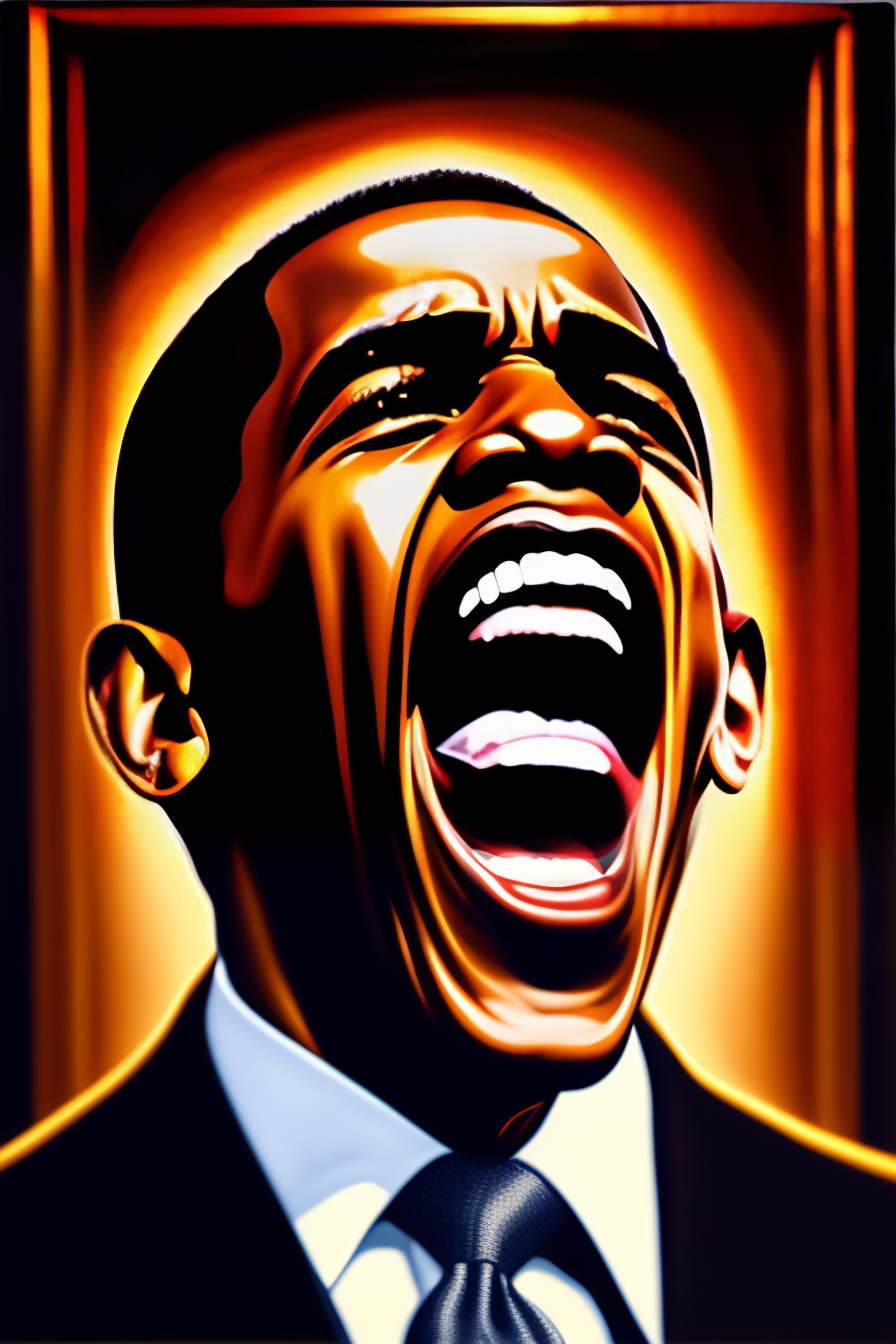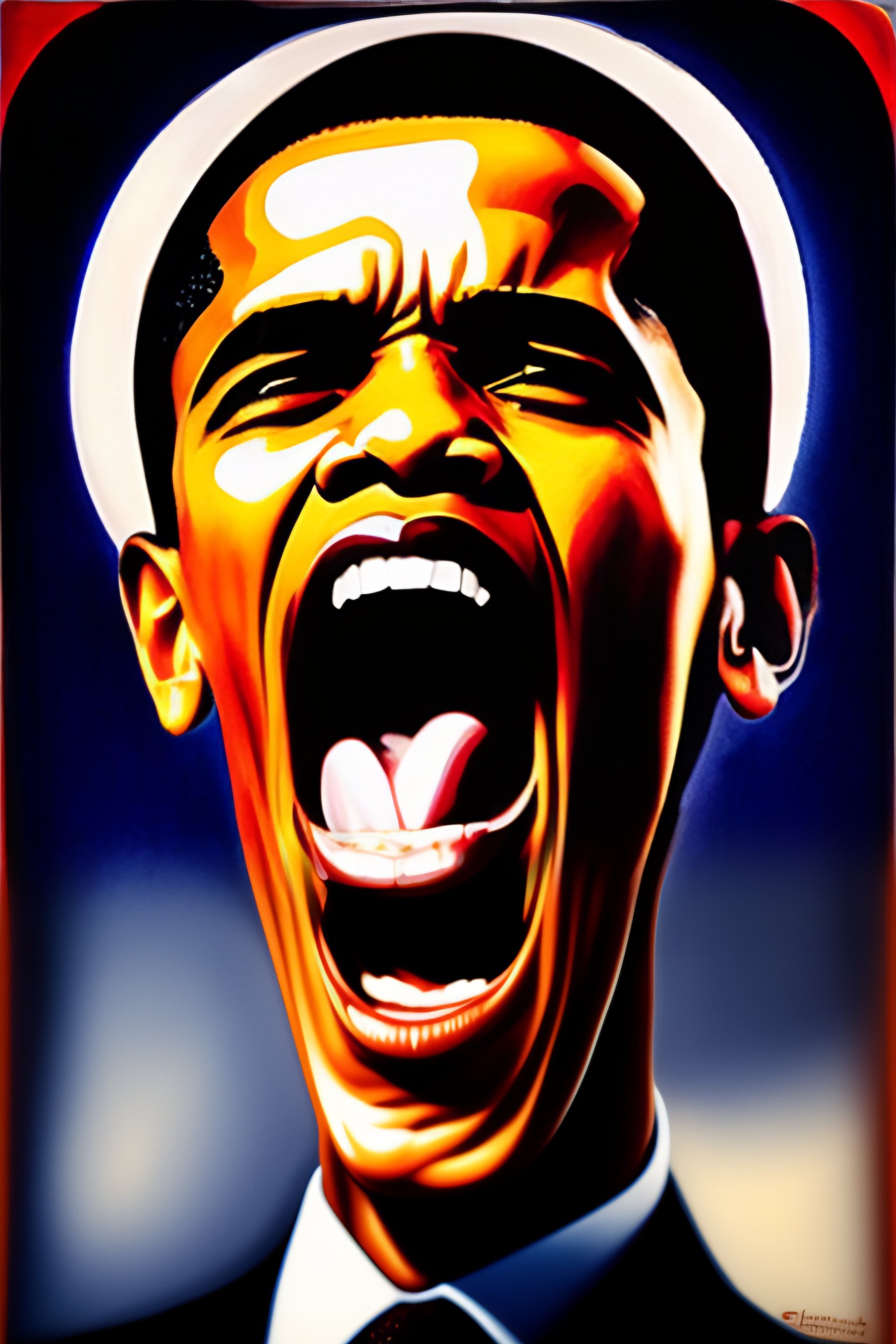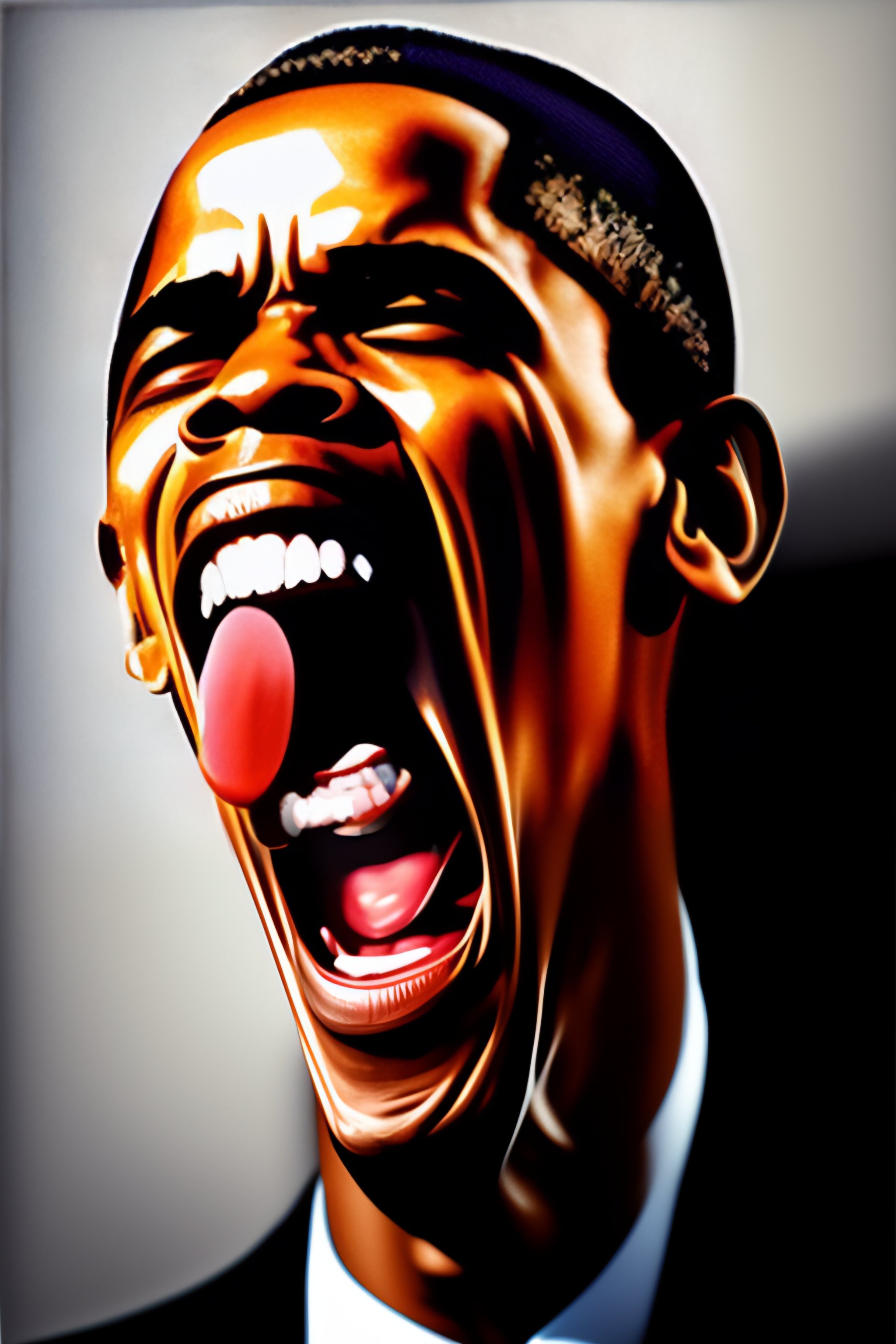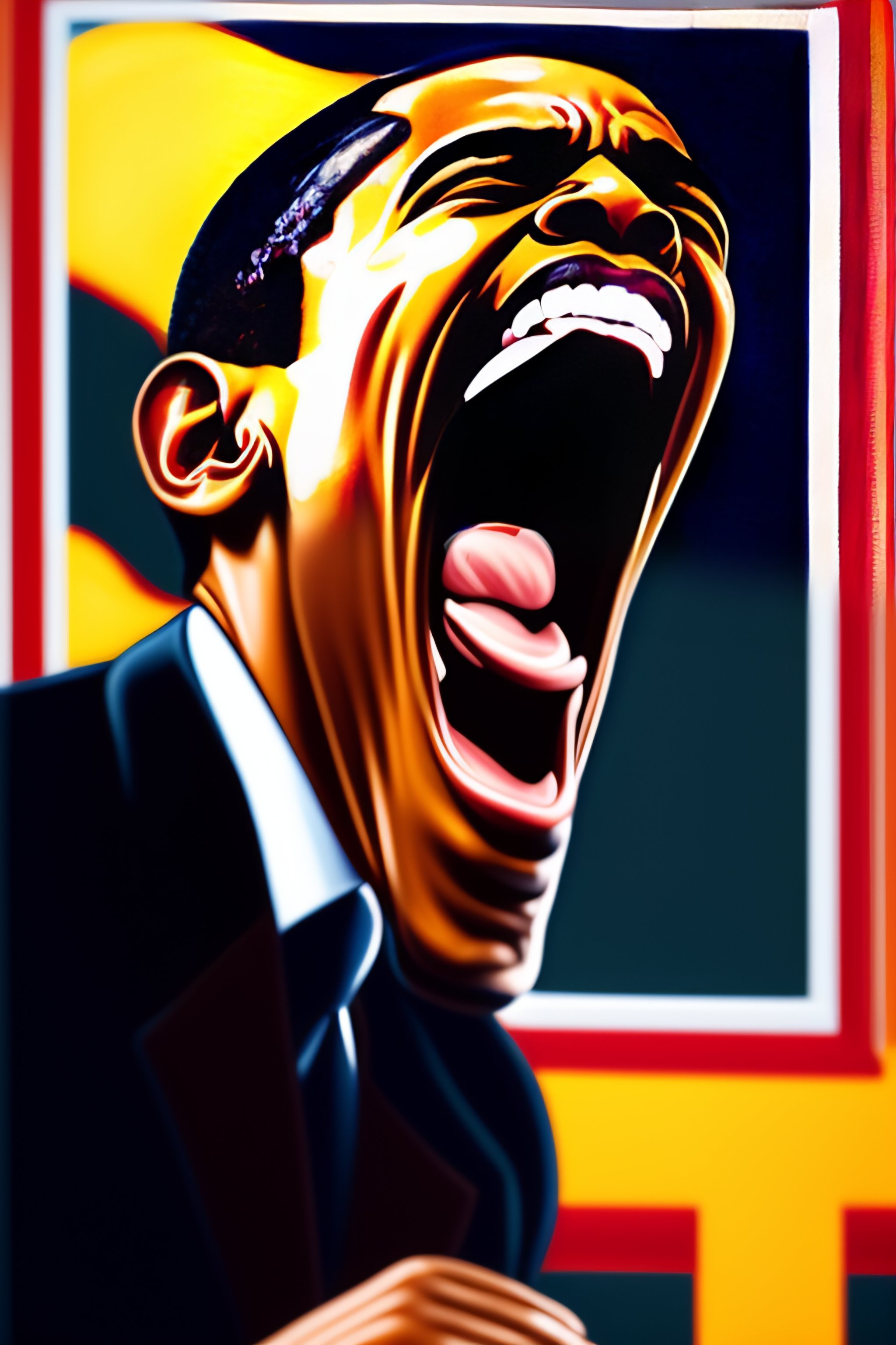 A portrait of barack obama screaming in the style of edvard munch, from his mouth, there is a snake taking out