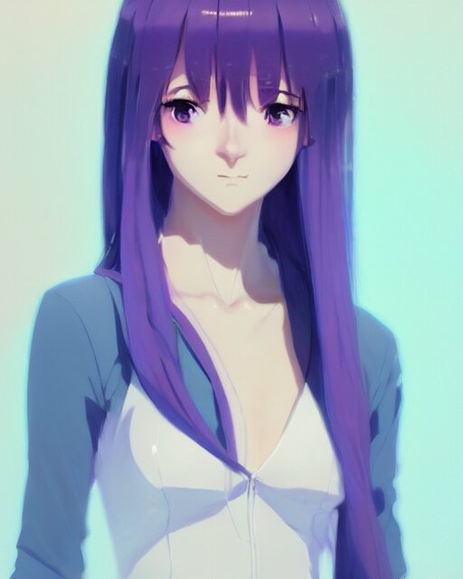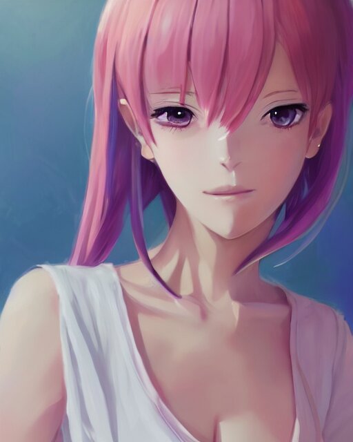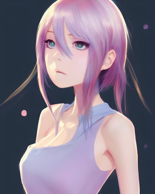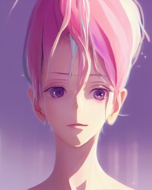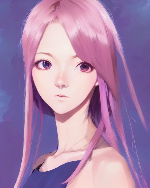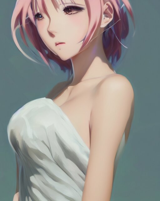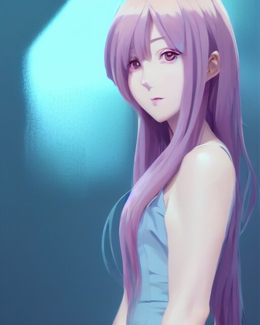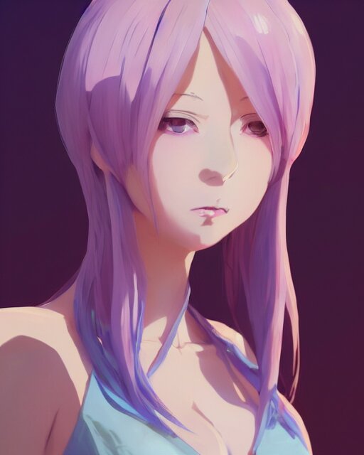 Gorgeous anime woman portrait, pastel hair, bodycon dress, clear clean face, face by ilya kushinov, avetetsuya studios, alexandra fomina artstation, by makoto shinkai, digital 2 d, painterly style, cinematic matte illustration, clean composition, character design, ufotable, vofan