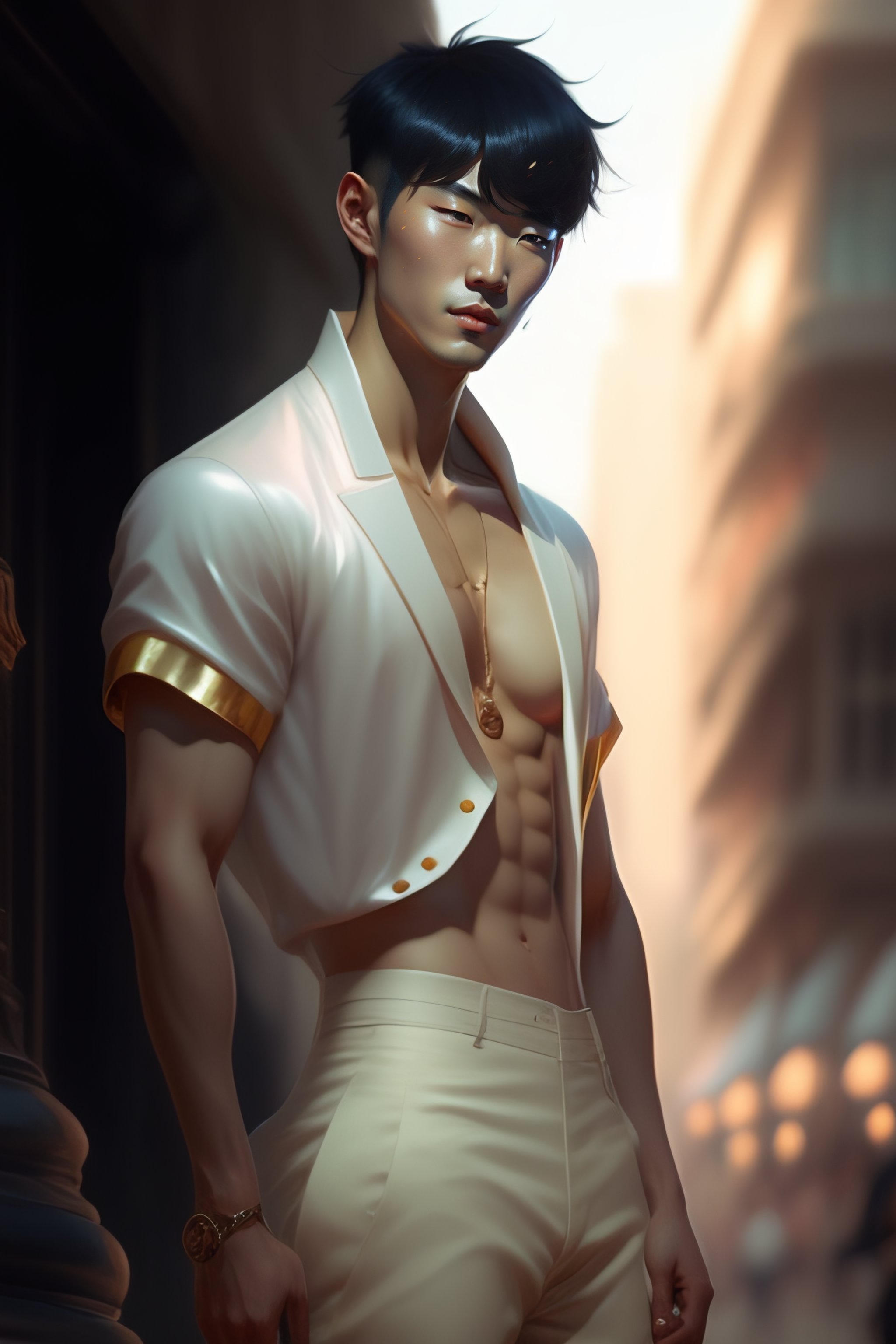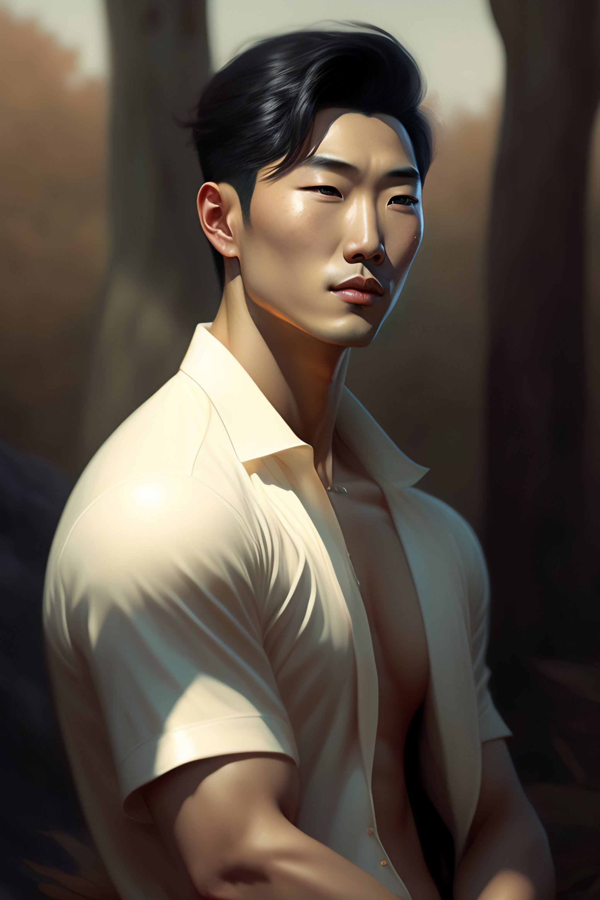 Photo of park hyung suk lookism, by greg rutkowski, gil elvgren, glossy skin, pearlescent, anime, widescreen