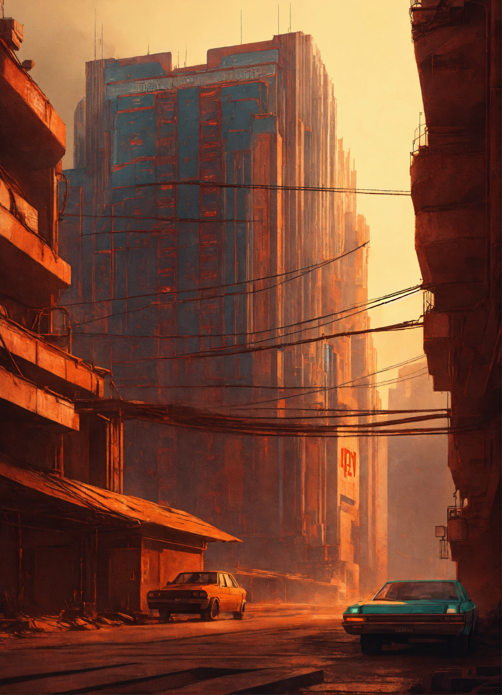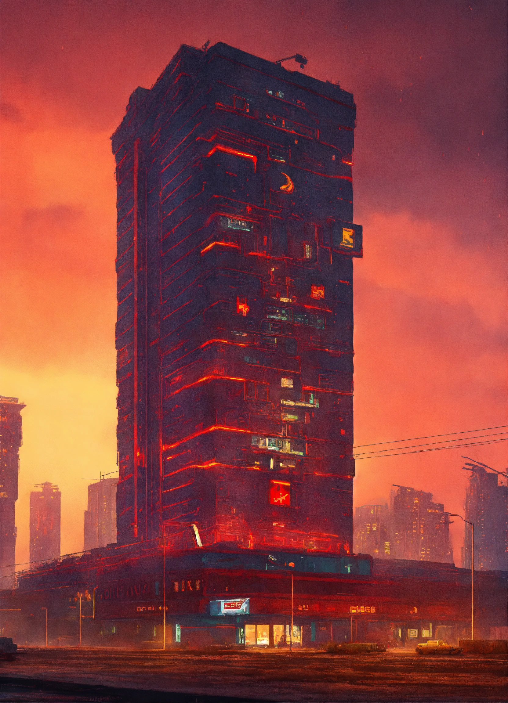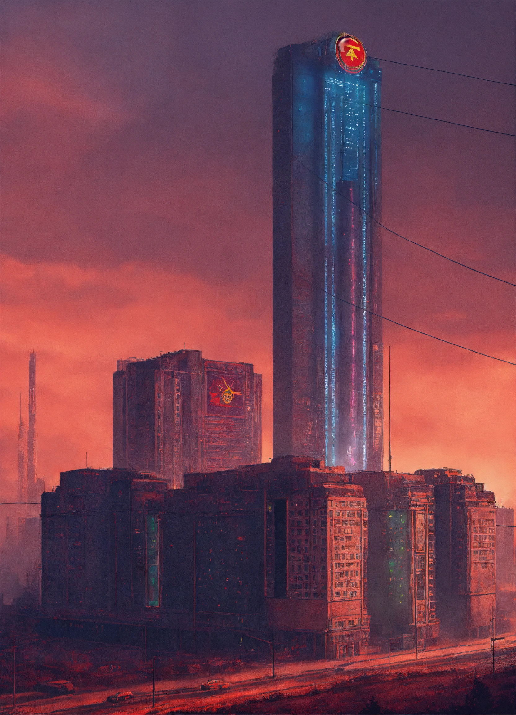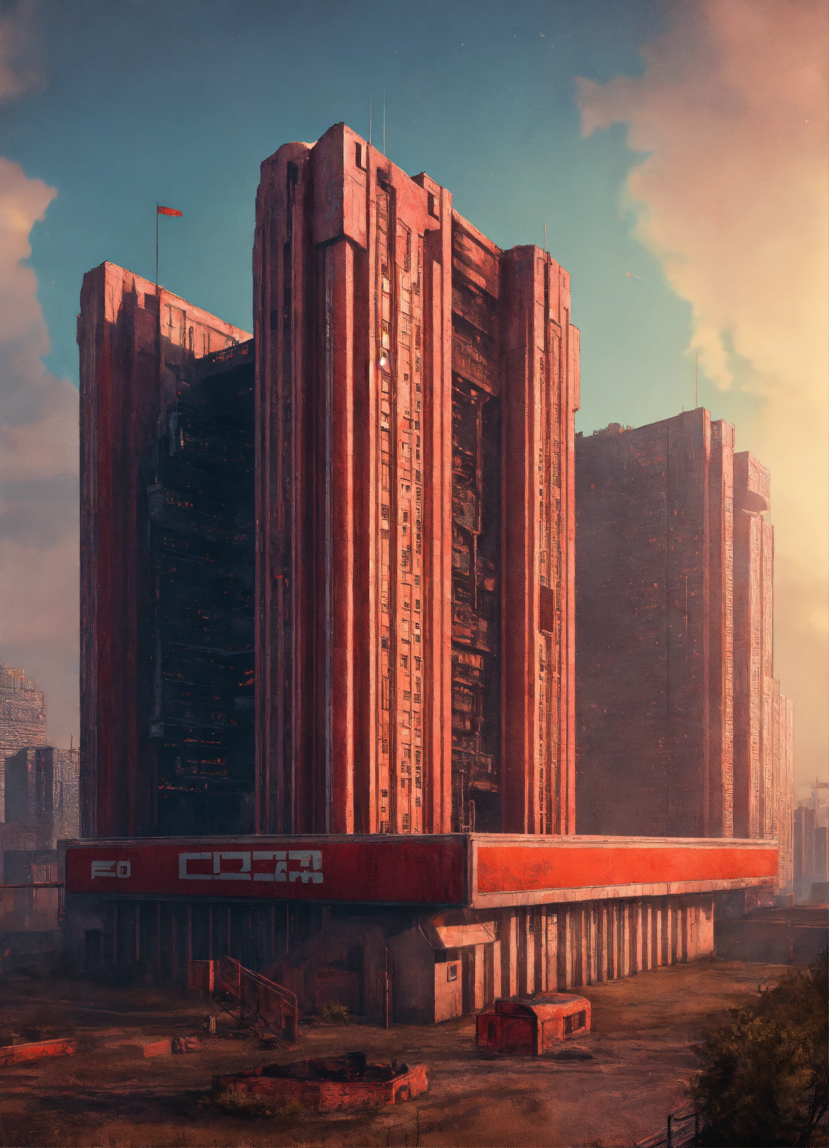 Ussr buildings in cyberpunk style