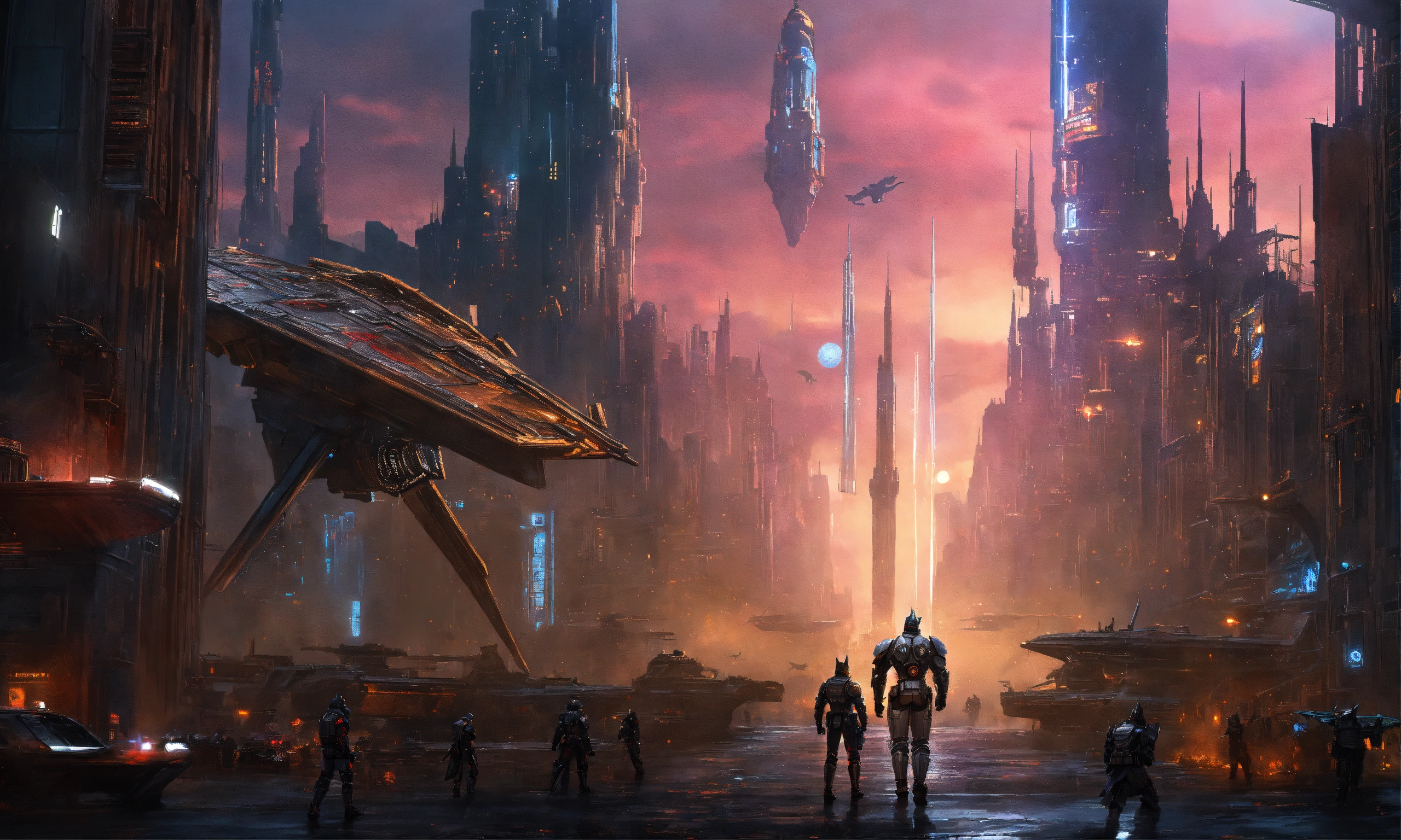 Adamantium batman, hybrid griffin-wolves, ultraman, asgardian, thanagarian legions, dracula, vampire, human athletic cyborgs, amazonians of 90th century, dragon-like muscular hulking humanoid armor in rainy, wet scenes of batwing, space cruisers, blade runner mega cityscape holding 9965 a.d. advanced star wars blasters, laser rifles & ancient h. r. giger, gears of war mega guns, quetzal-like armored streamlined form fighting detailed advanced futuristic civilized back-drop densely populated worlds of metallic chrome, wolf & raven vampires, titanic spacecrafts vs rom the space knight, battlestar galactica meta-hybrid cylons vs alien cyborg kaiju, space batmobile, style of davinci, picasso, laurie greasley, ghibli, akira, akkadian, atlantis, kryptonian, megatron live movie, tomiyama, gene roddenberry, george lucas, james gilliard, genshin impact, nuke vfx, surreal acrylics, light sabers, 4k, chrome, vibrant dark colors, deviantart, rendered as highly detailed cinematic studio quality gci