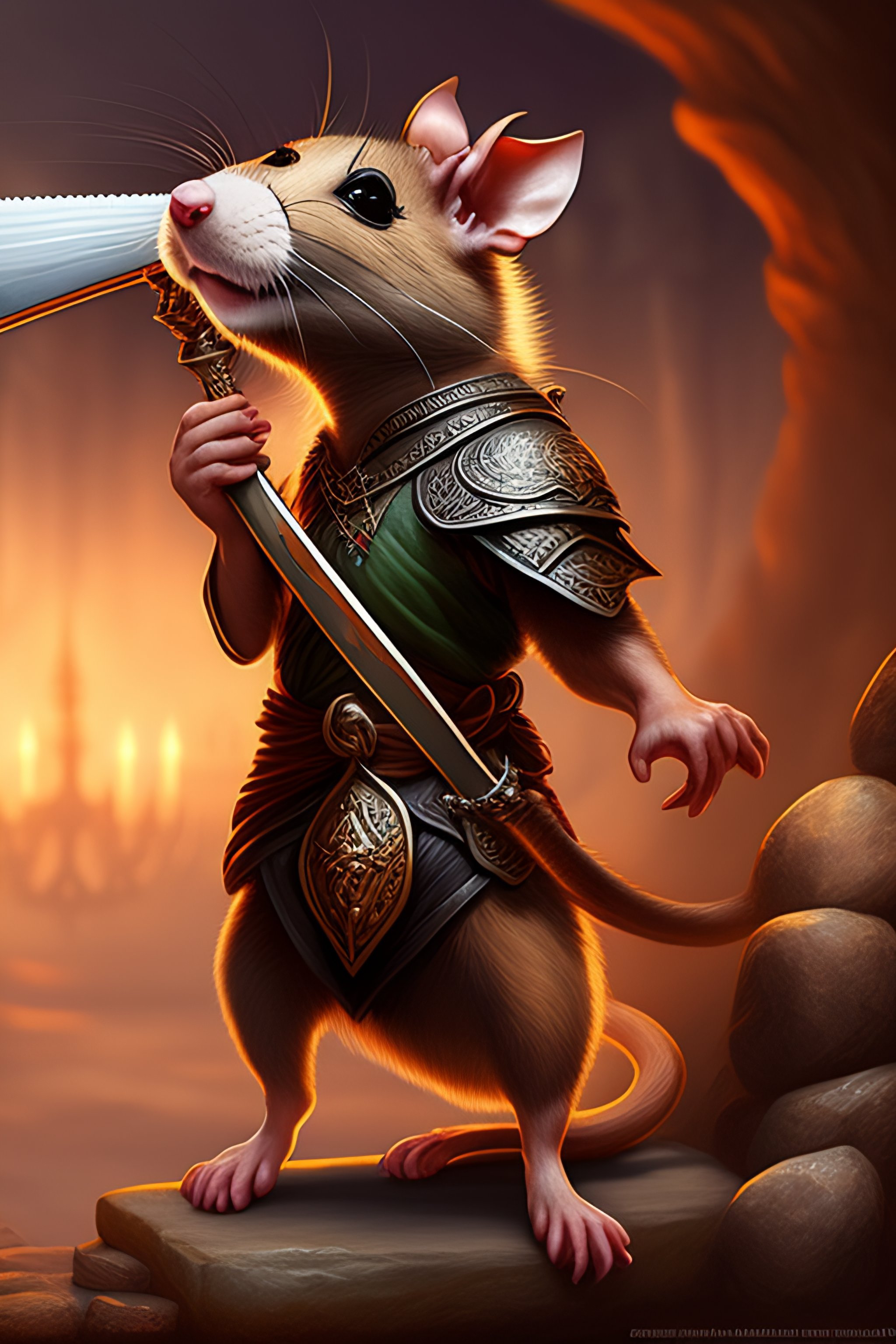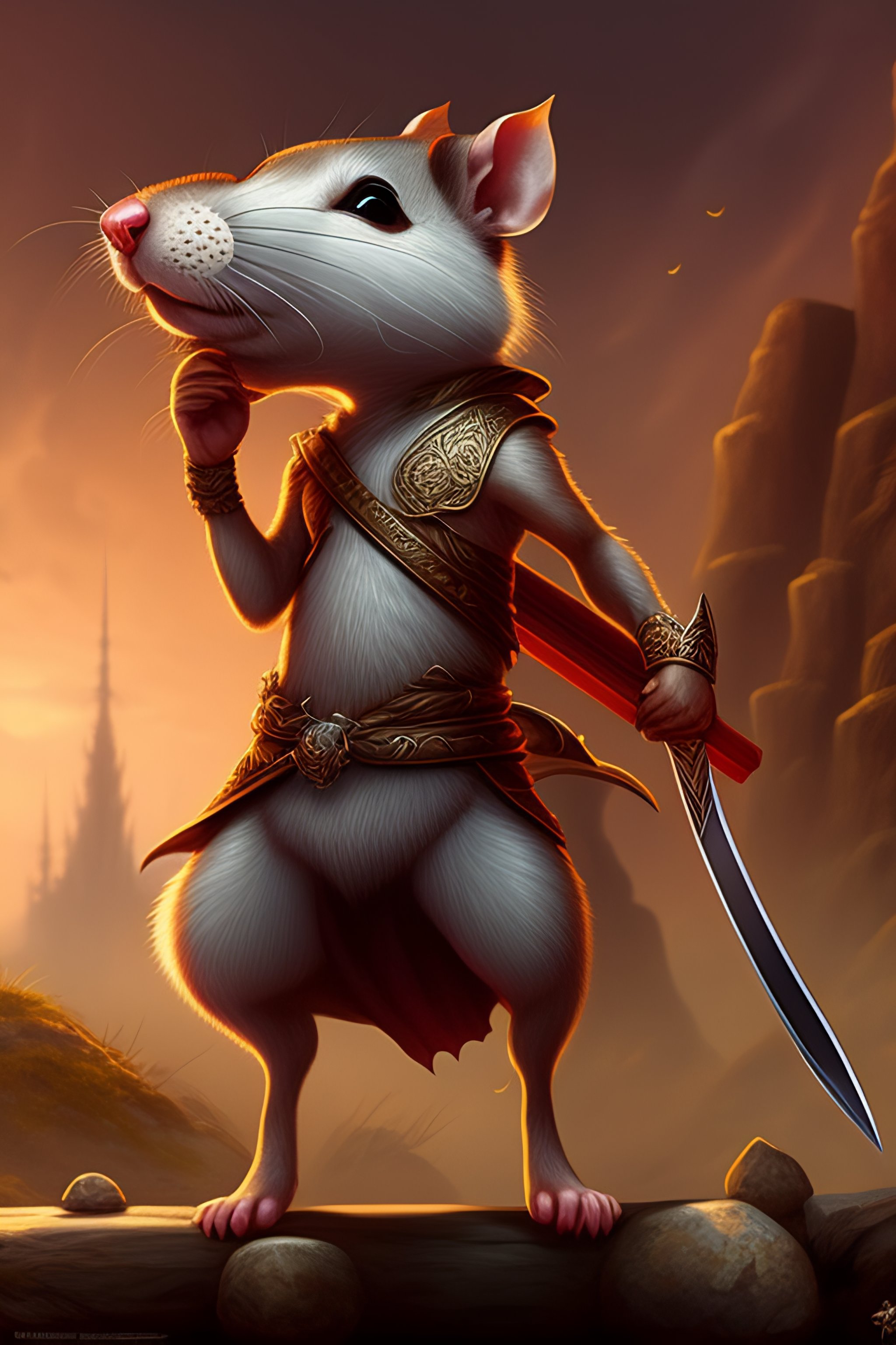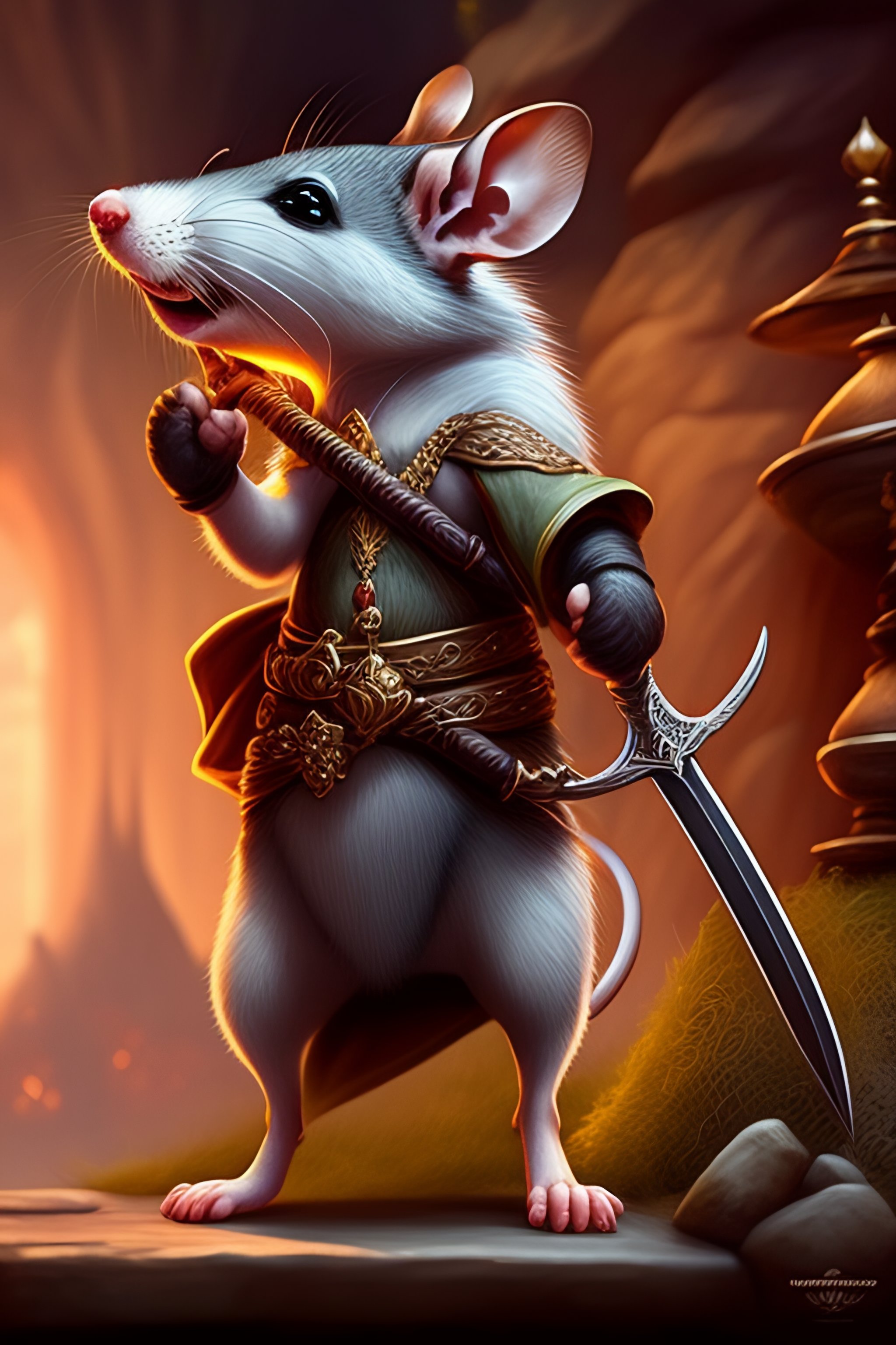 Antropomorphic rat character buying a sword made out of bone from a trader rat, fantasy art, digital art, fantasy art, matte painting