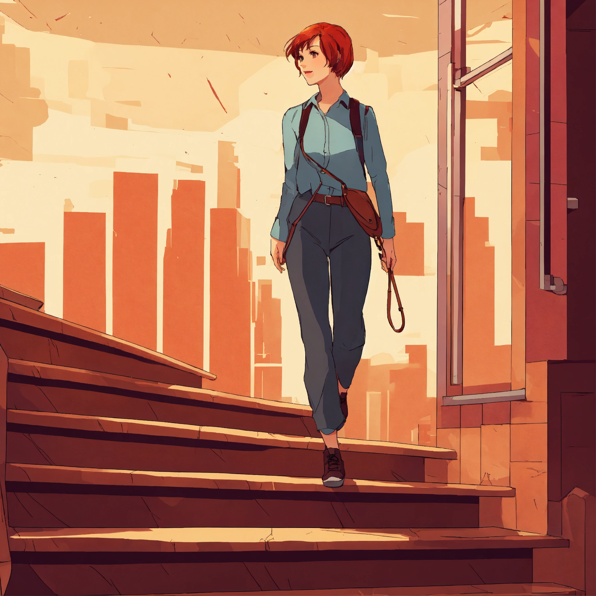 Woman with red-brown straight short hair