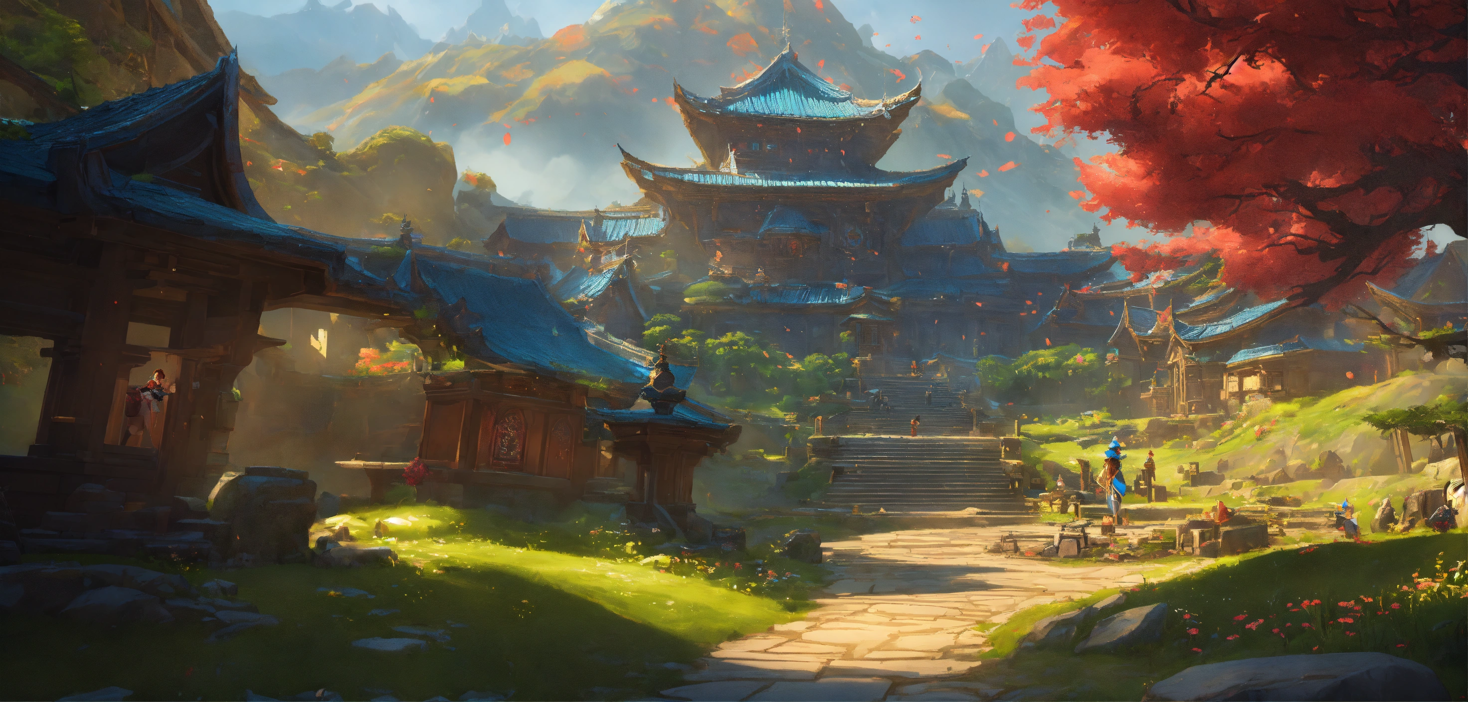 A highly detailed league of legend dynamic illustration of feudal fantasy, by joshua raphael, by artgerm, by huyy nguyen, by cj xander, by jennifer wuestling, by diep duong van, by huyy nguyen, by grafit studio, volumetric lighting, 3d render, 4k resolution, trending on artstation, masterpiece, close up frame, cinematic shot