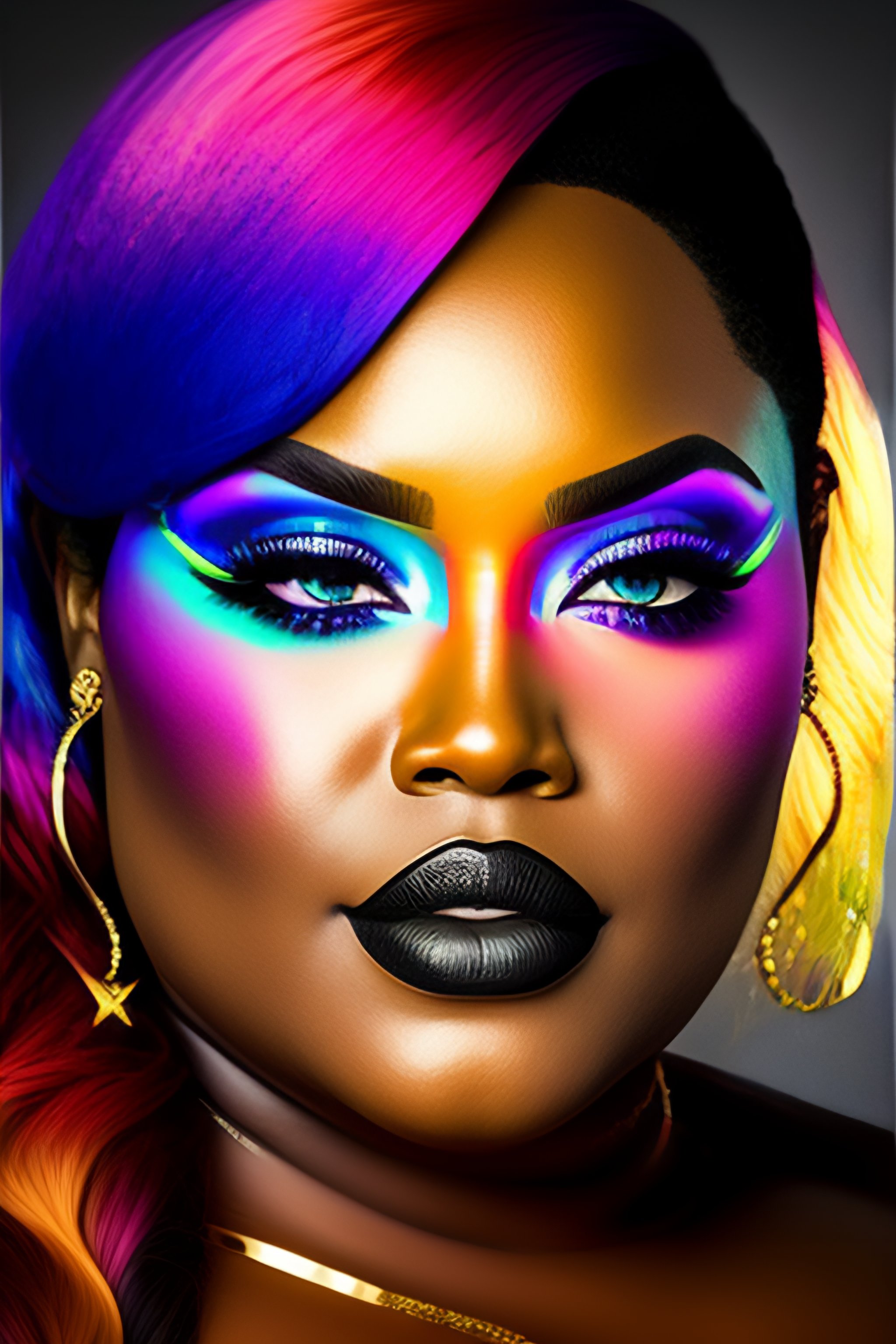 Plus size model transgener layboy rainbow color make up