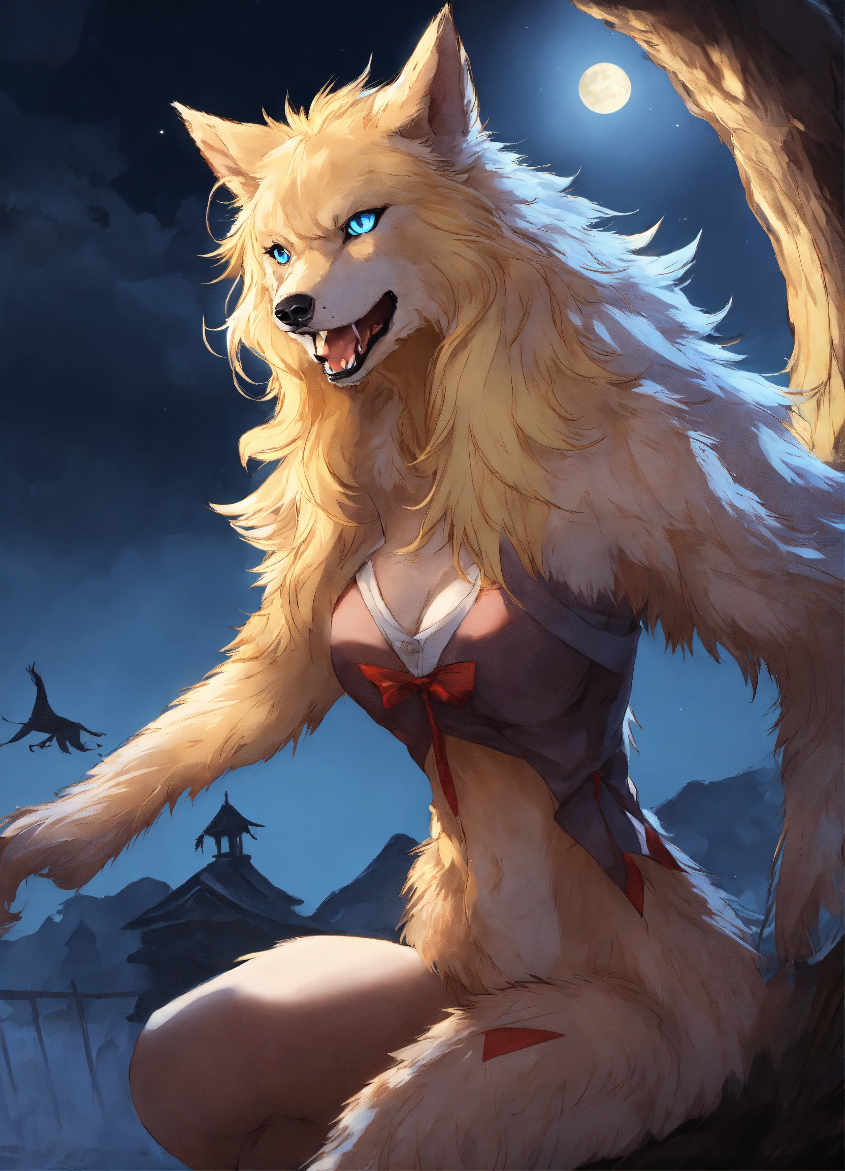 Anime werewolf on hind legs