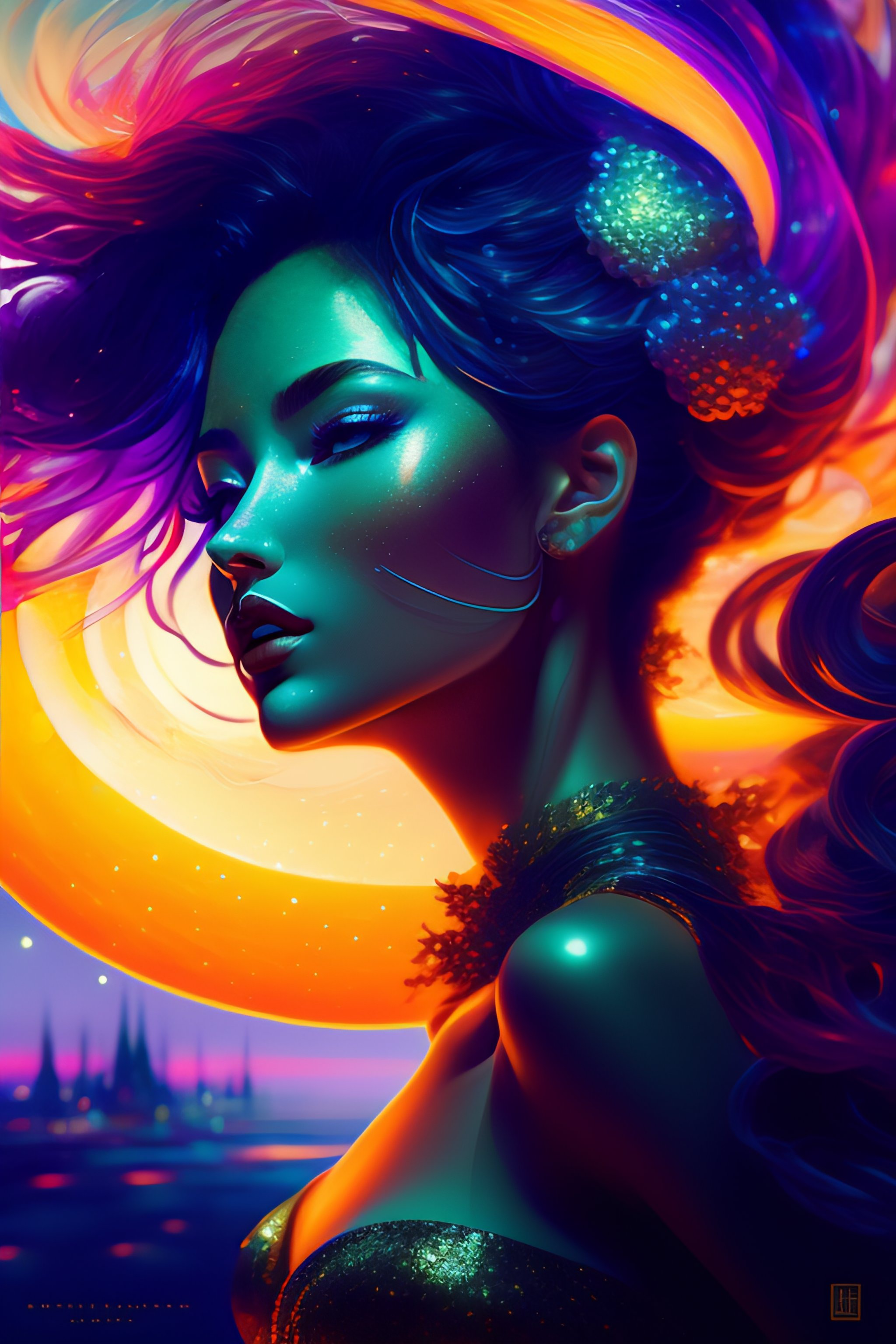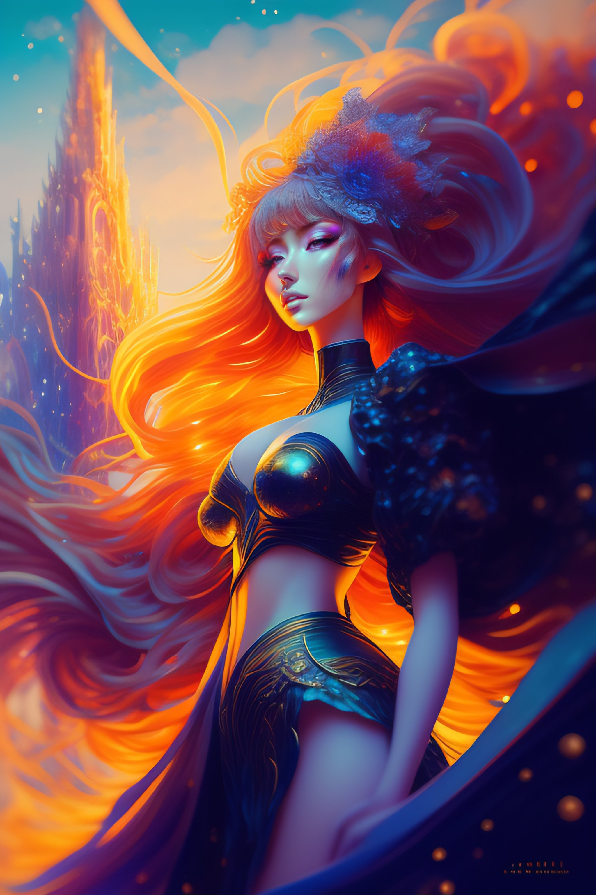 Dreamy mixed media artwork, hyperwave cover art, anime character design, low-angle:: personnification of the annual hypocrisy of false good resolutions, mad dancing, dynamic pose, expressive, jean-baptiste monge and vincent van gogh and anna dittmann art style:: pointillism, poster, dark light, minimalist, anime rendering, well detailed, cel shading, bokeh