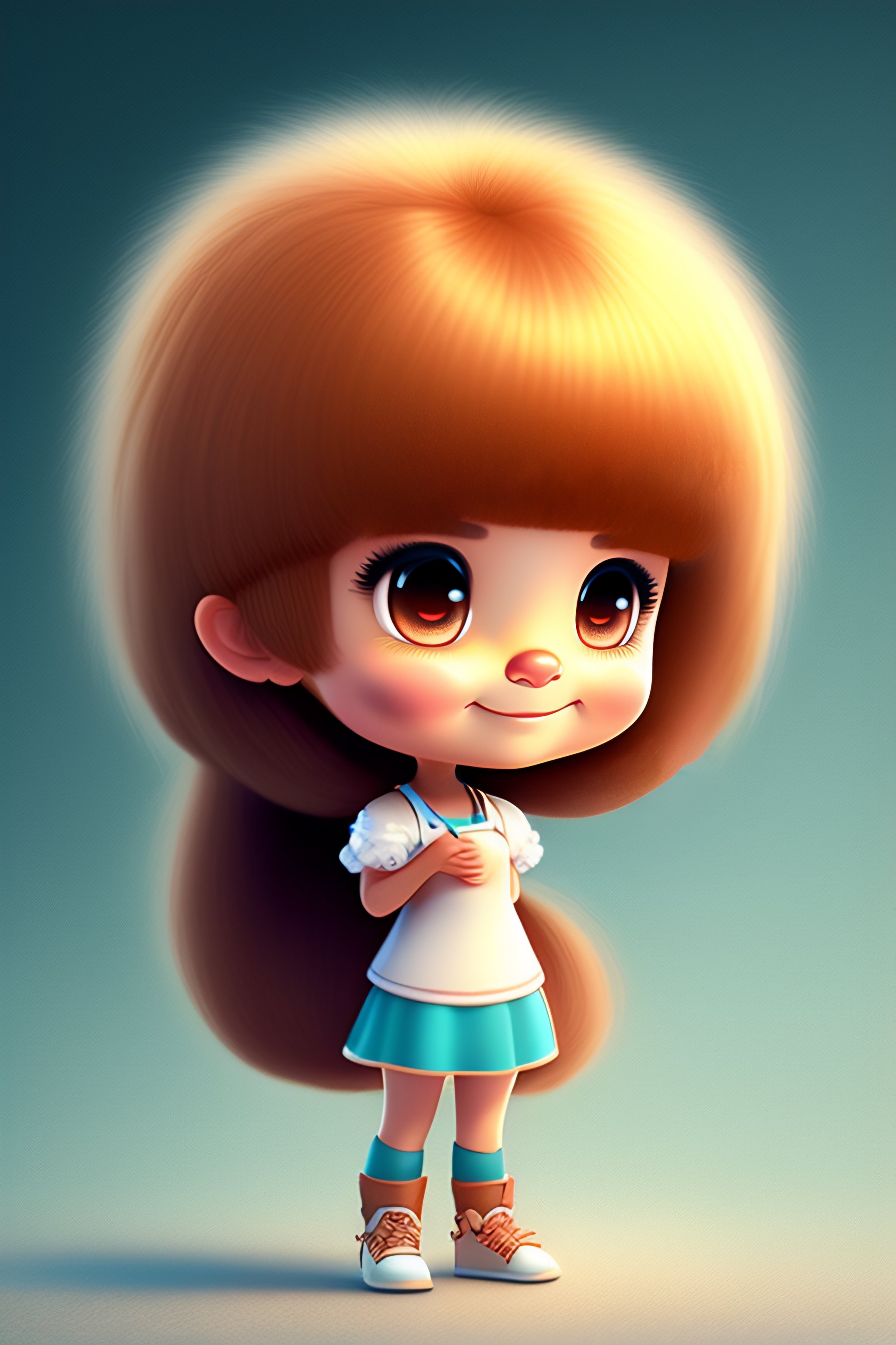 Design me a cute and charming cartoon character, with fluffy hairs, cute smile, and relaxing eyes. character must have a smooth and soothing look.