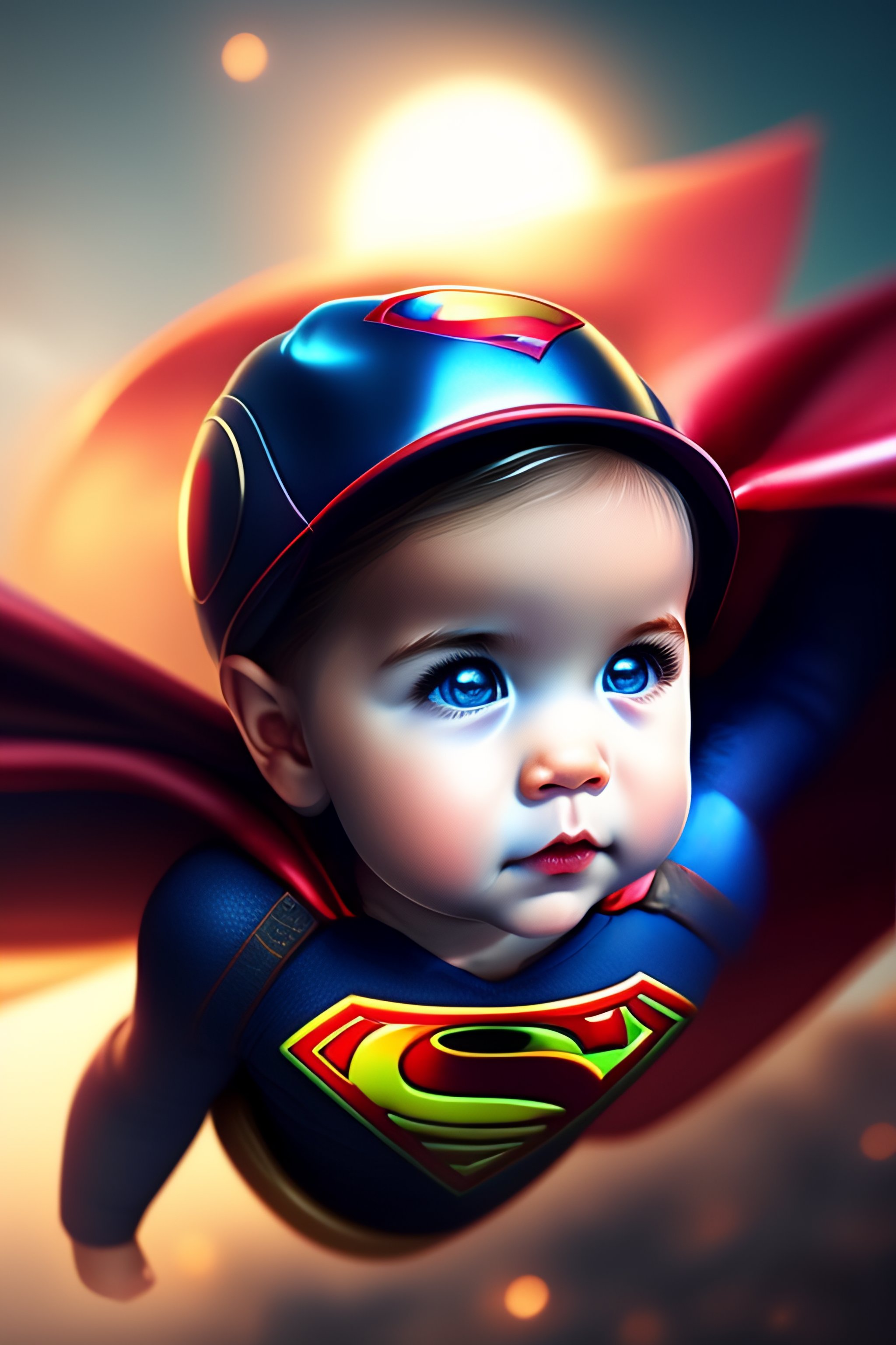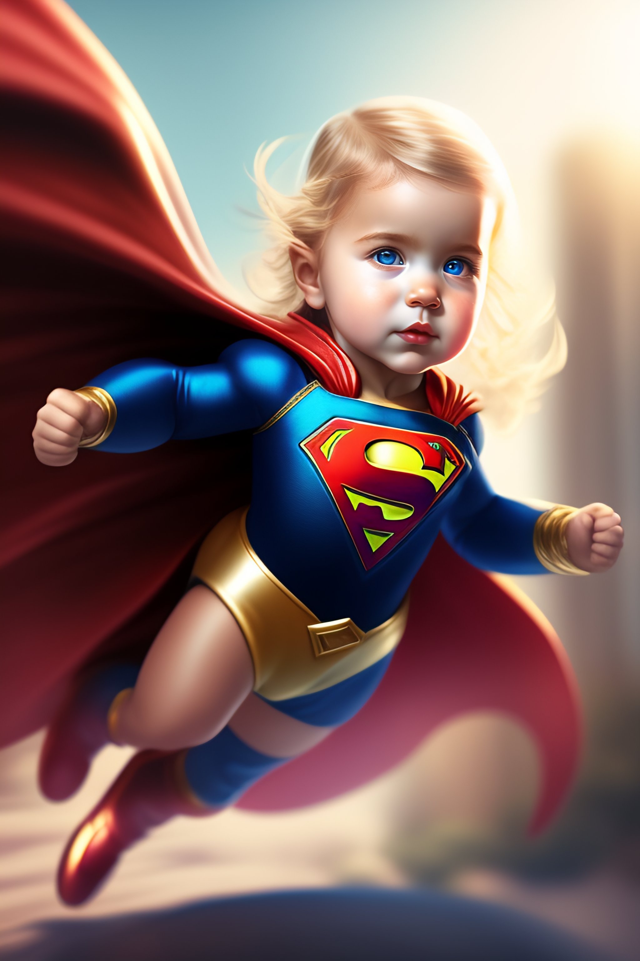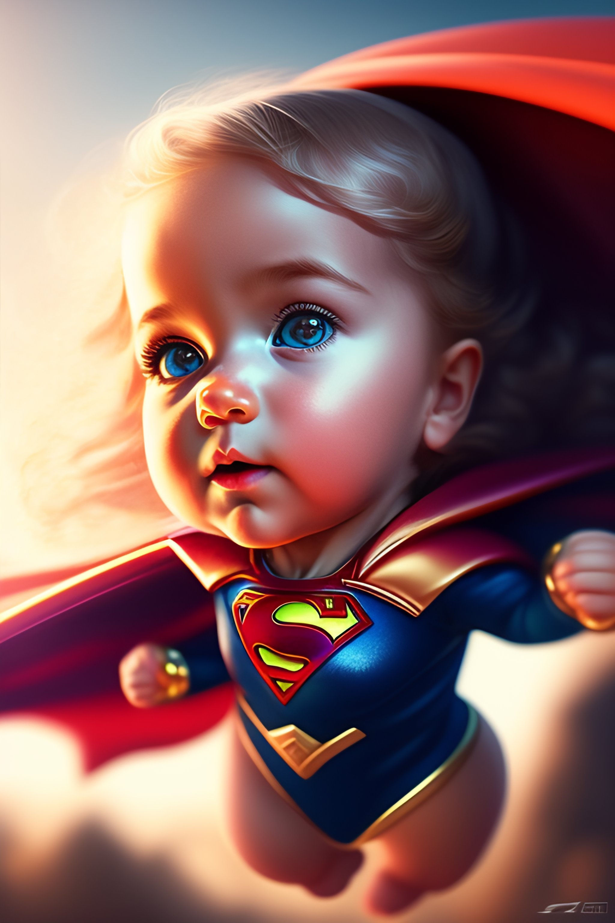 Baby supergirl flying, moonwalker, render, rembrandt, cgsociety, artstation trending, highly detailed