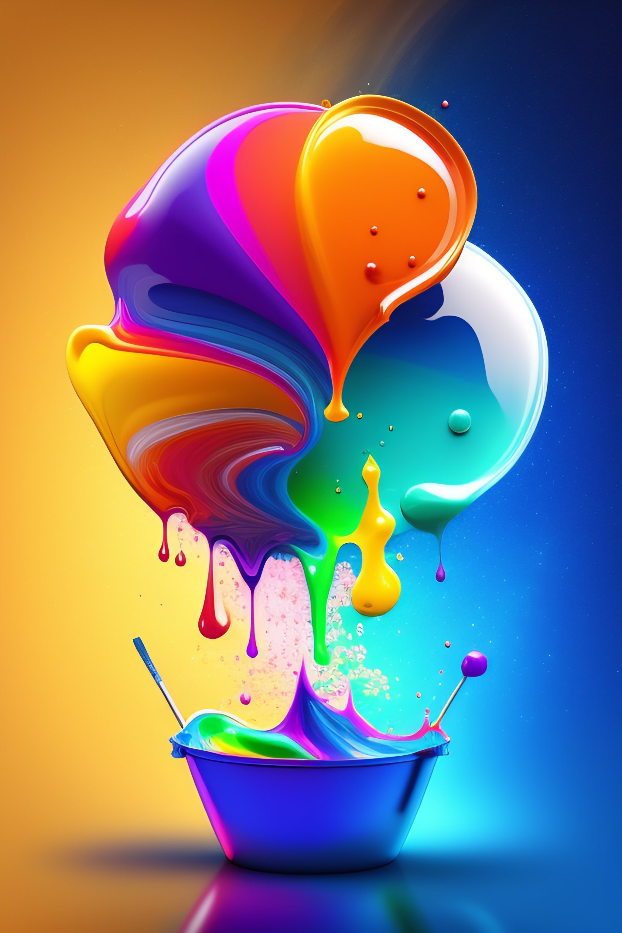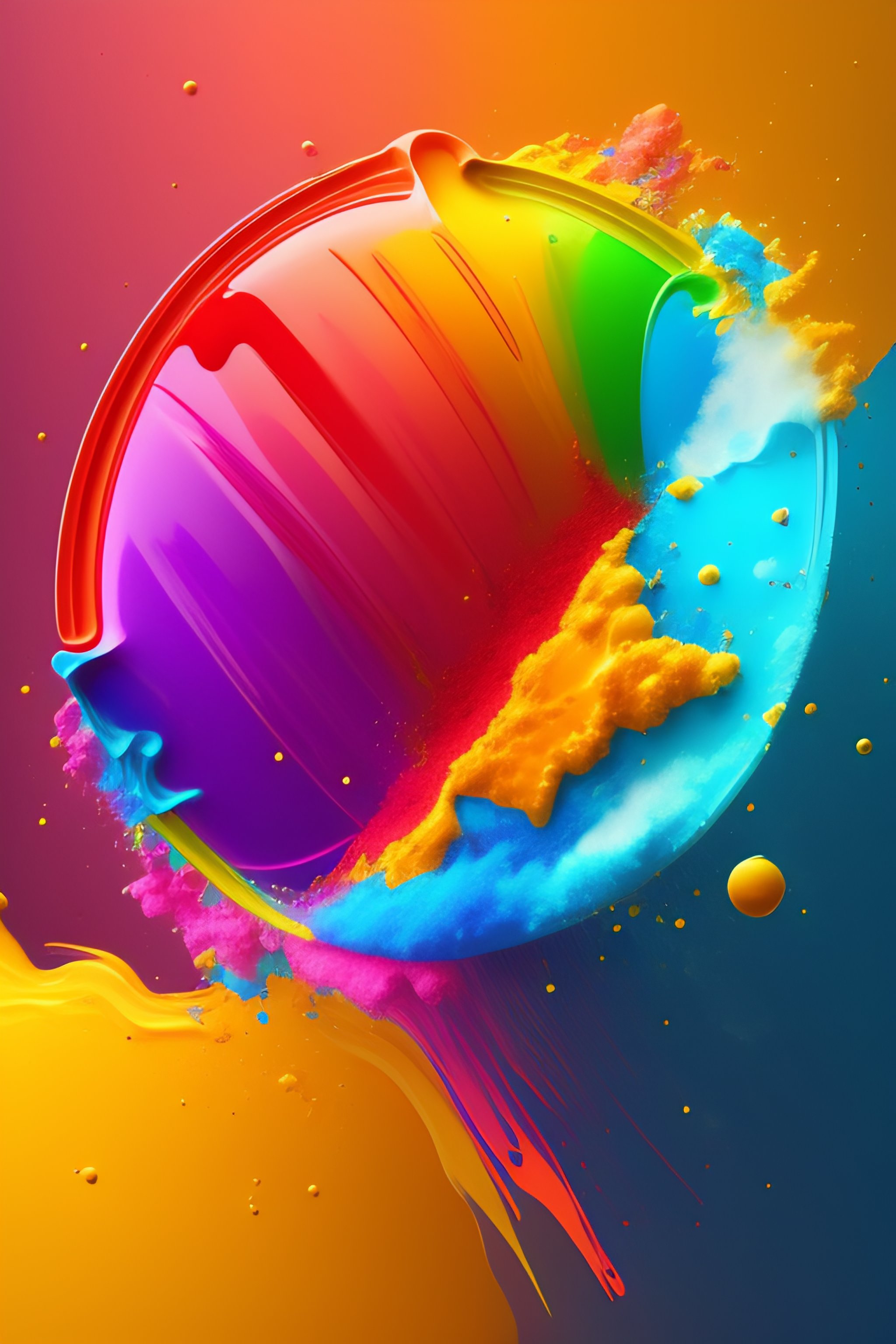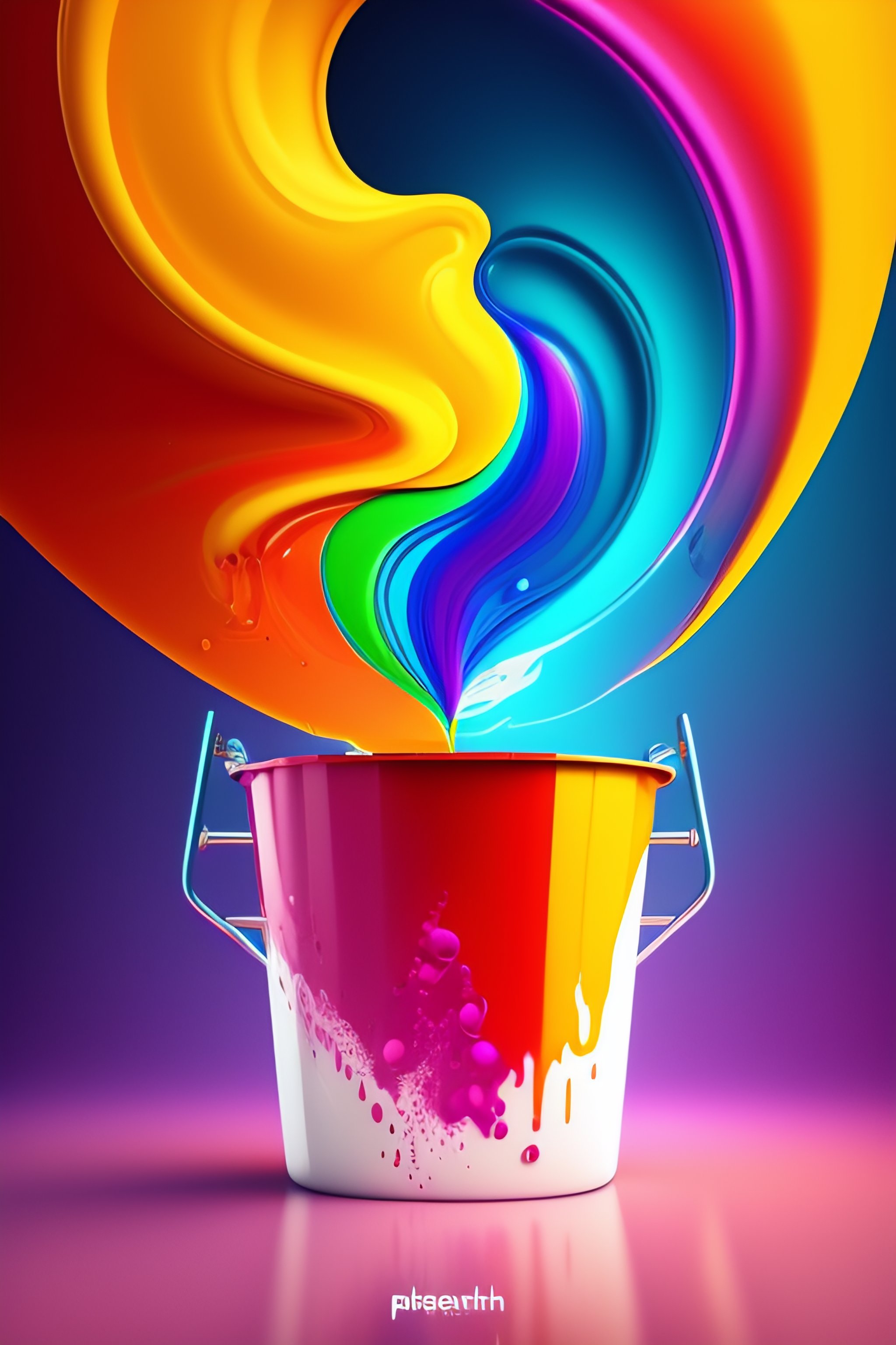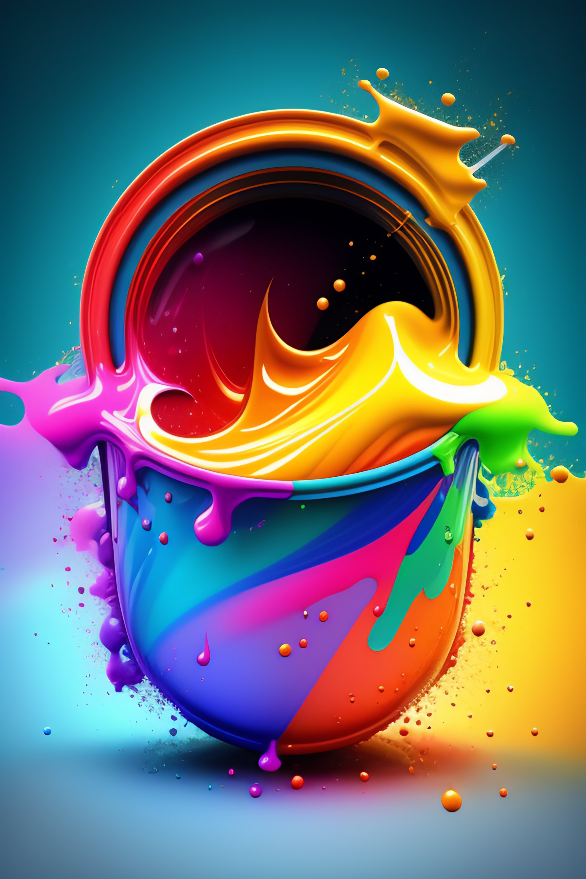 Paint bucket pouring paint in air on top of planet earth vector logo style