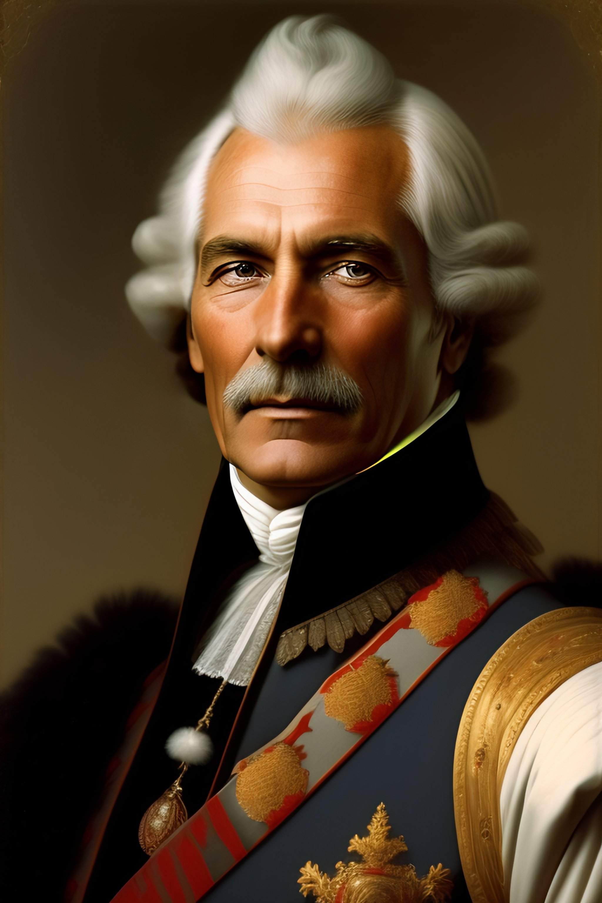 A servere 50 years old gray-haired servere scandinavian man with bristles in his cheek, no-beard, no-mustasche, in the year of 1700.