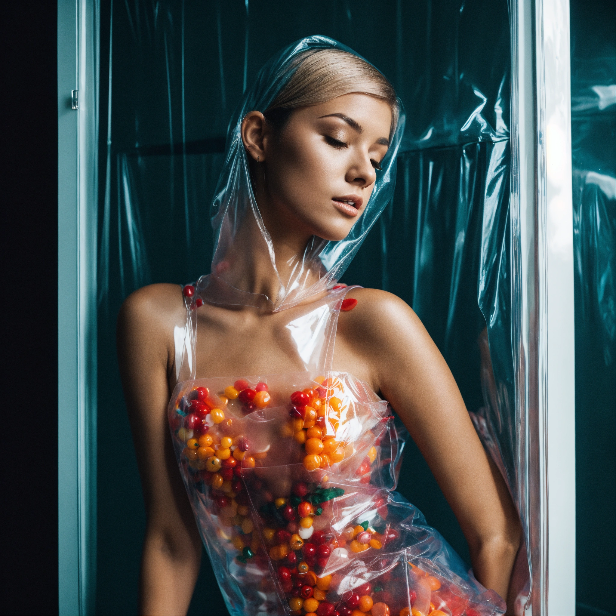 Woman covered in plastic
