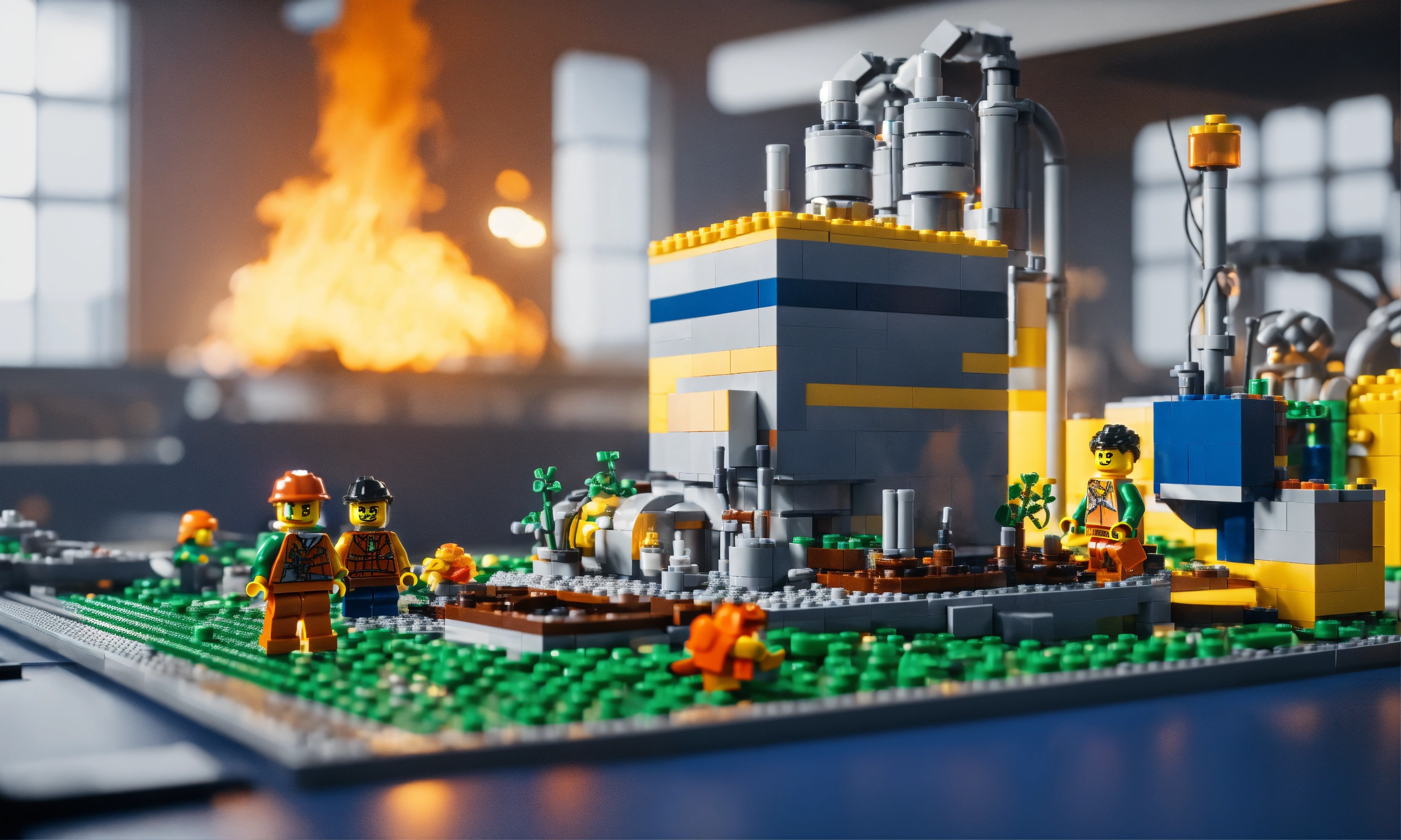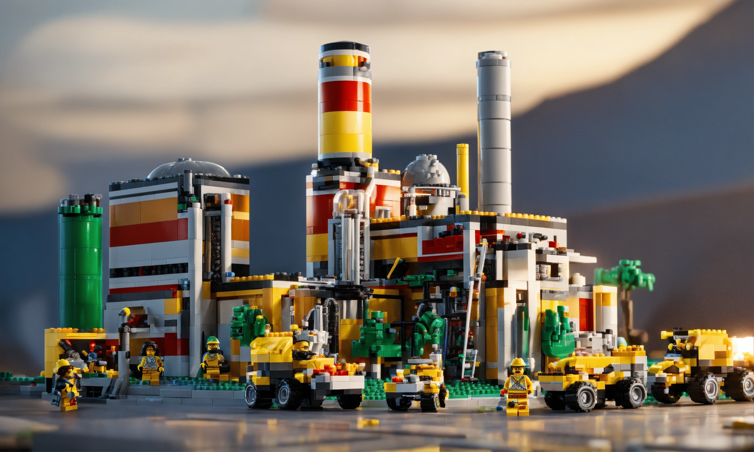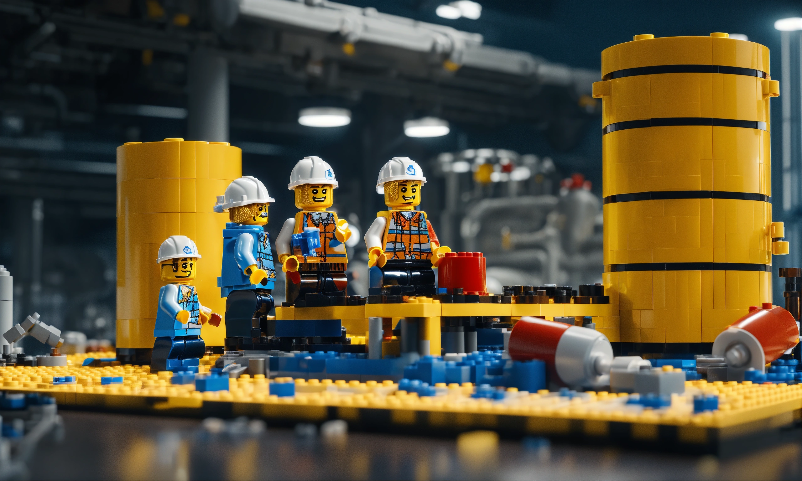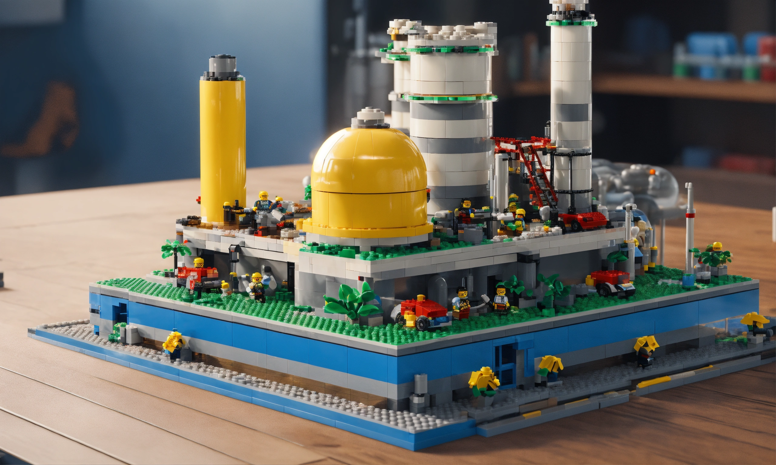 A lego set for a nuclear power plant, with lego figures working, product photo, 8k, unreal engine render