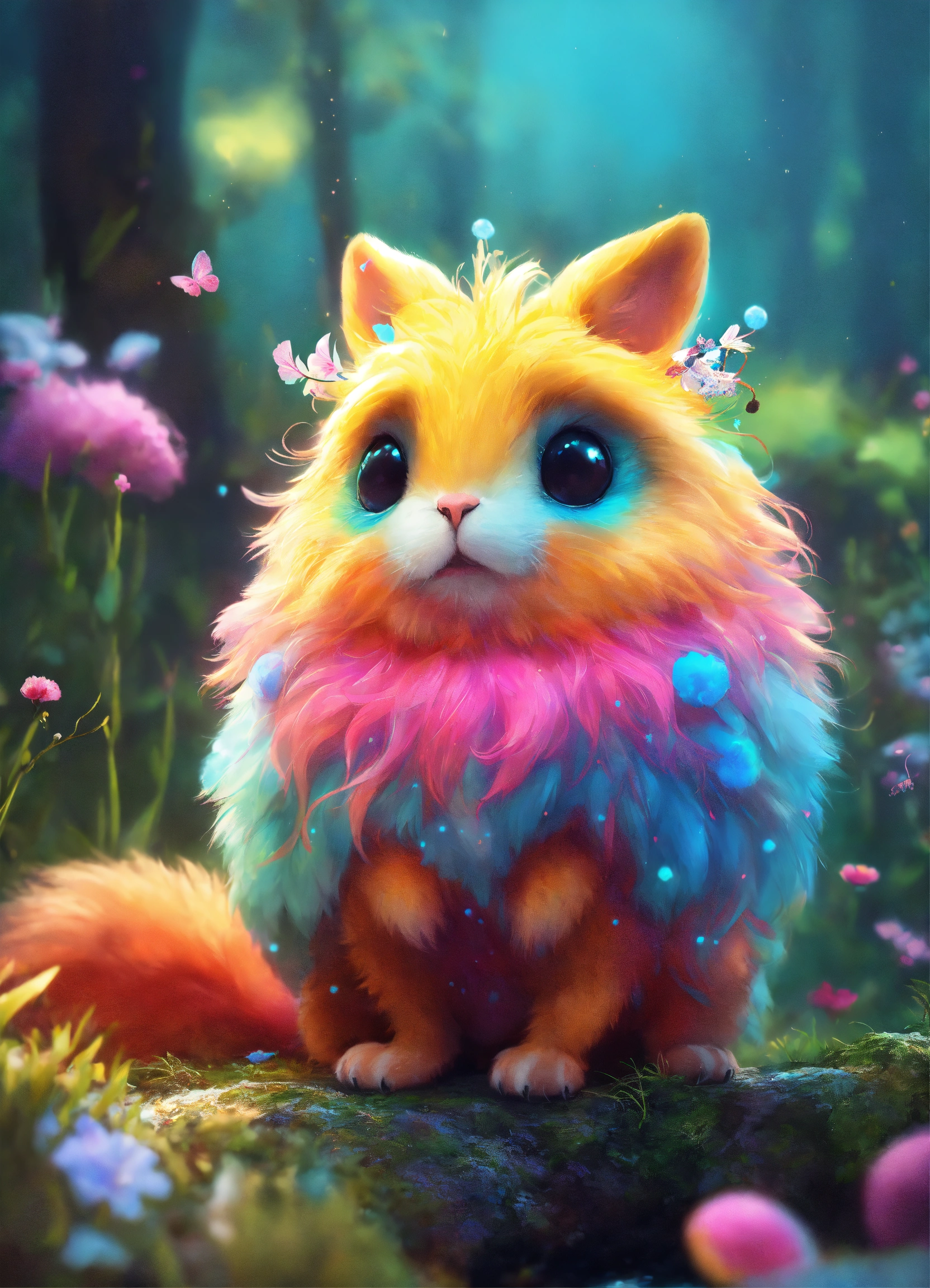 Cute and adorable fluffy cute colorful creature fantasy, dreamlike, surrealism, super cute, trending on artstation