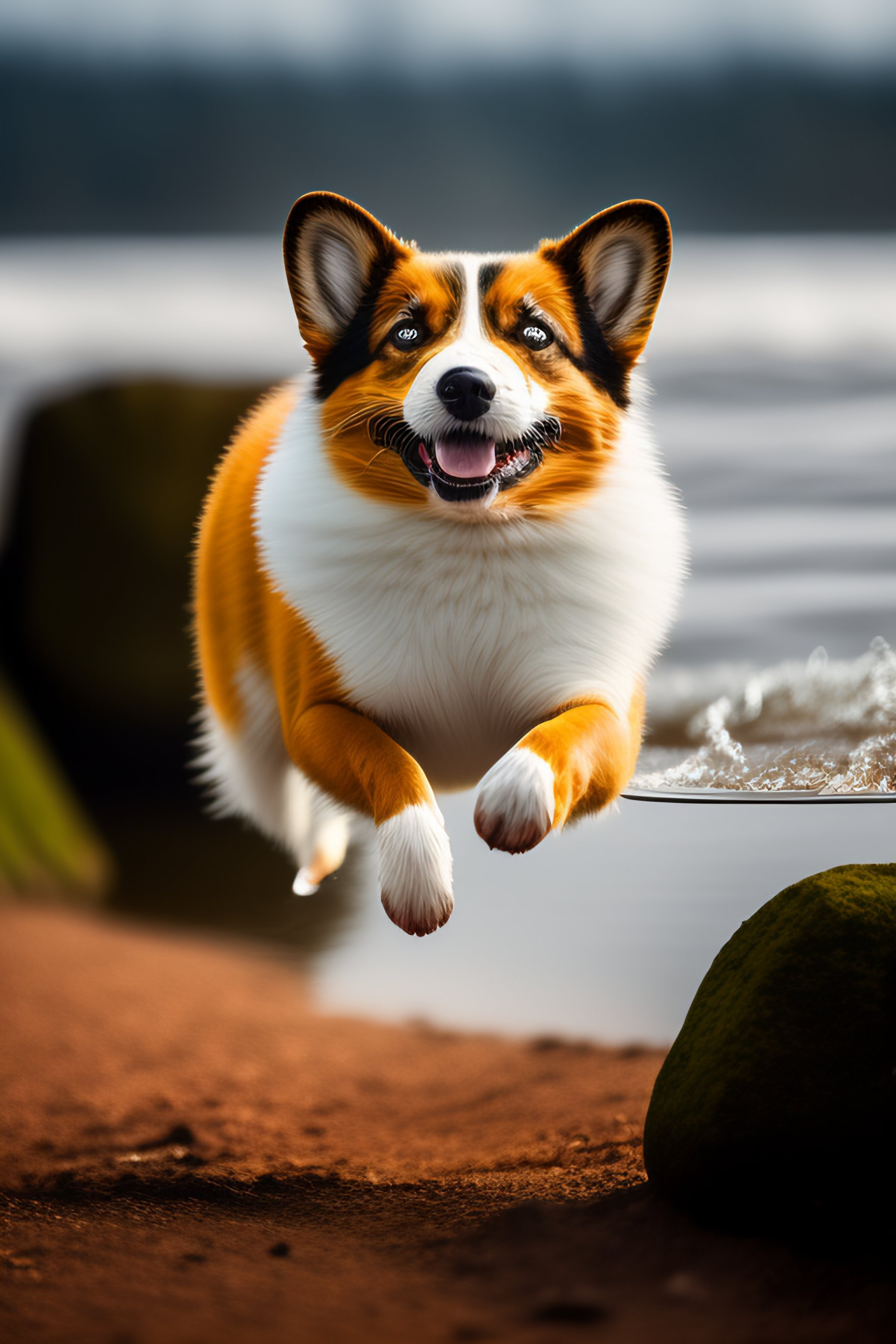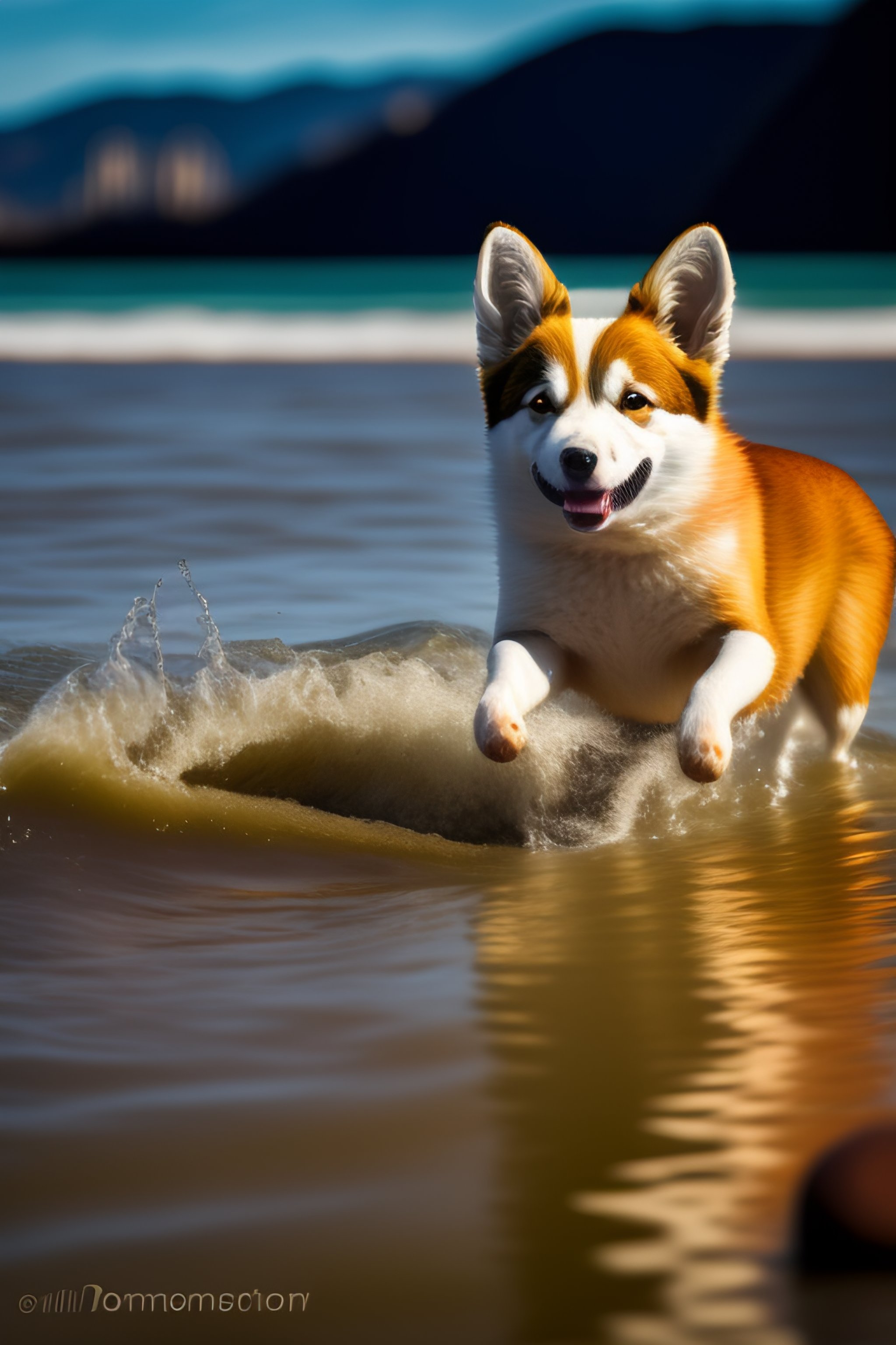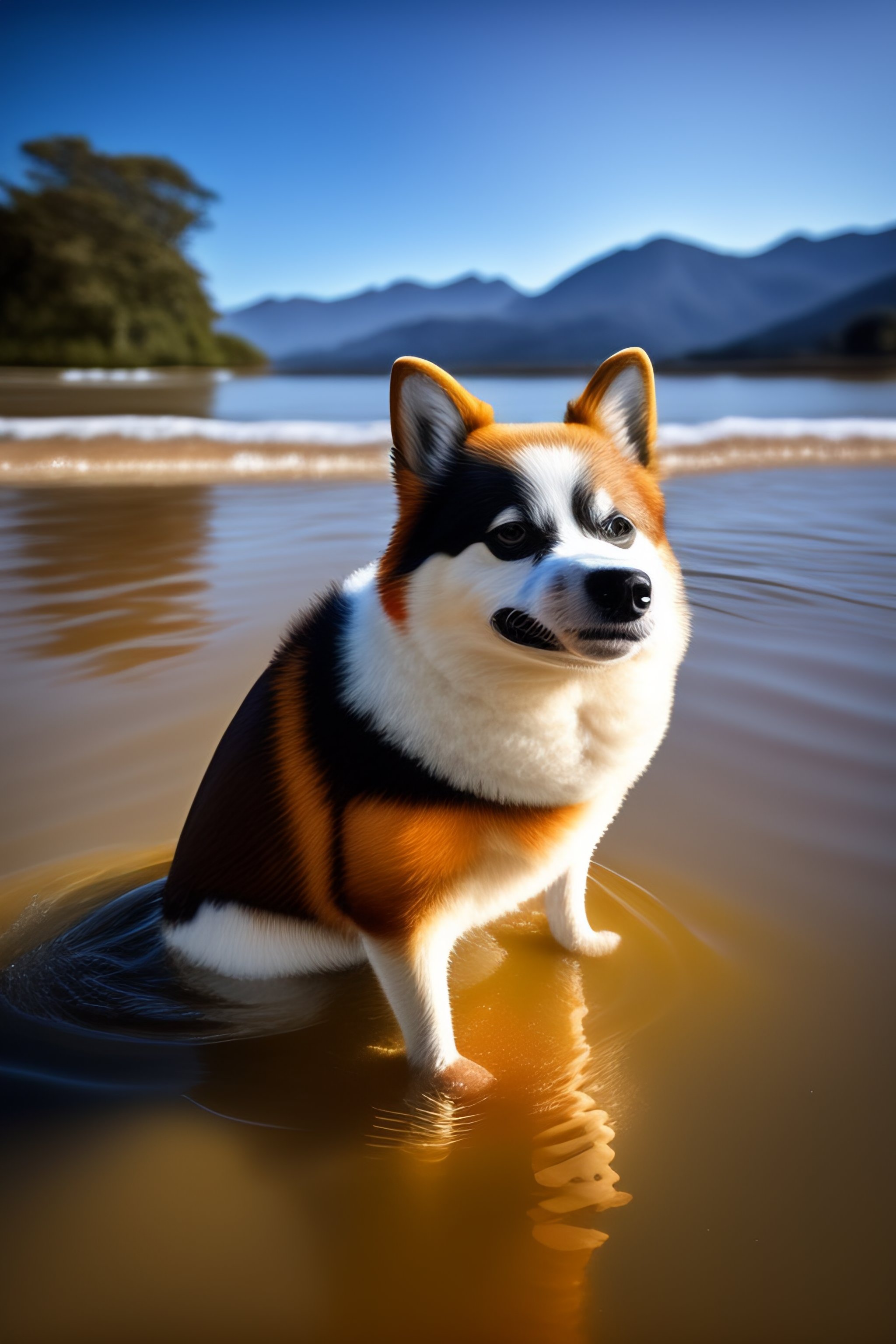 Corgi nadando en un rio