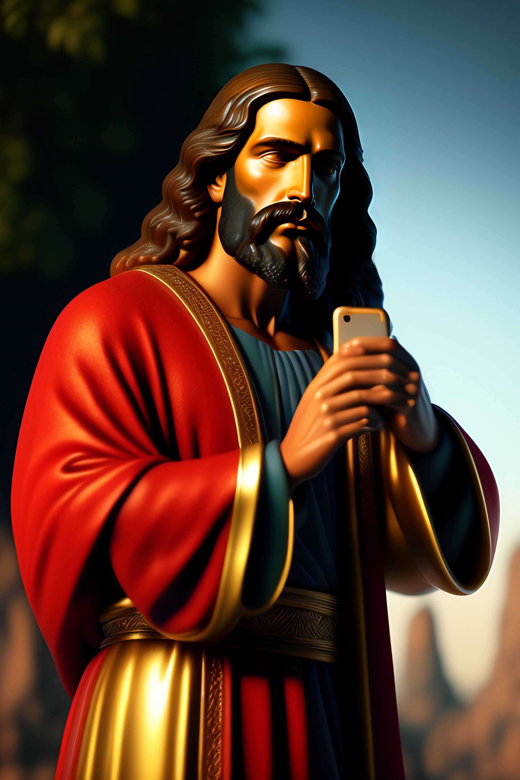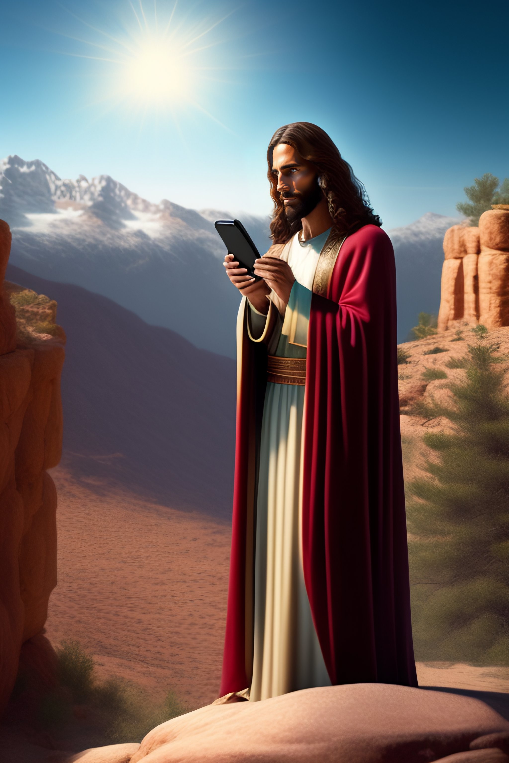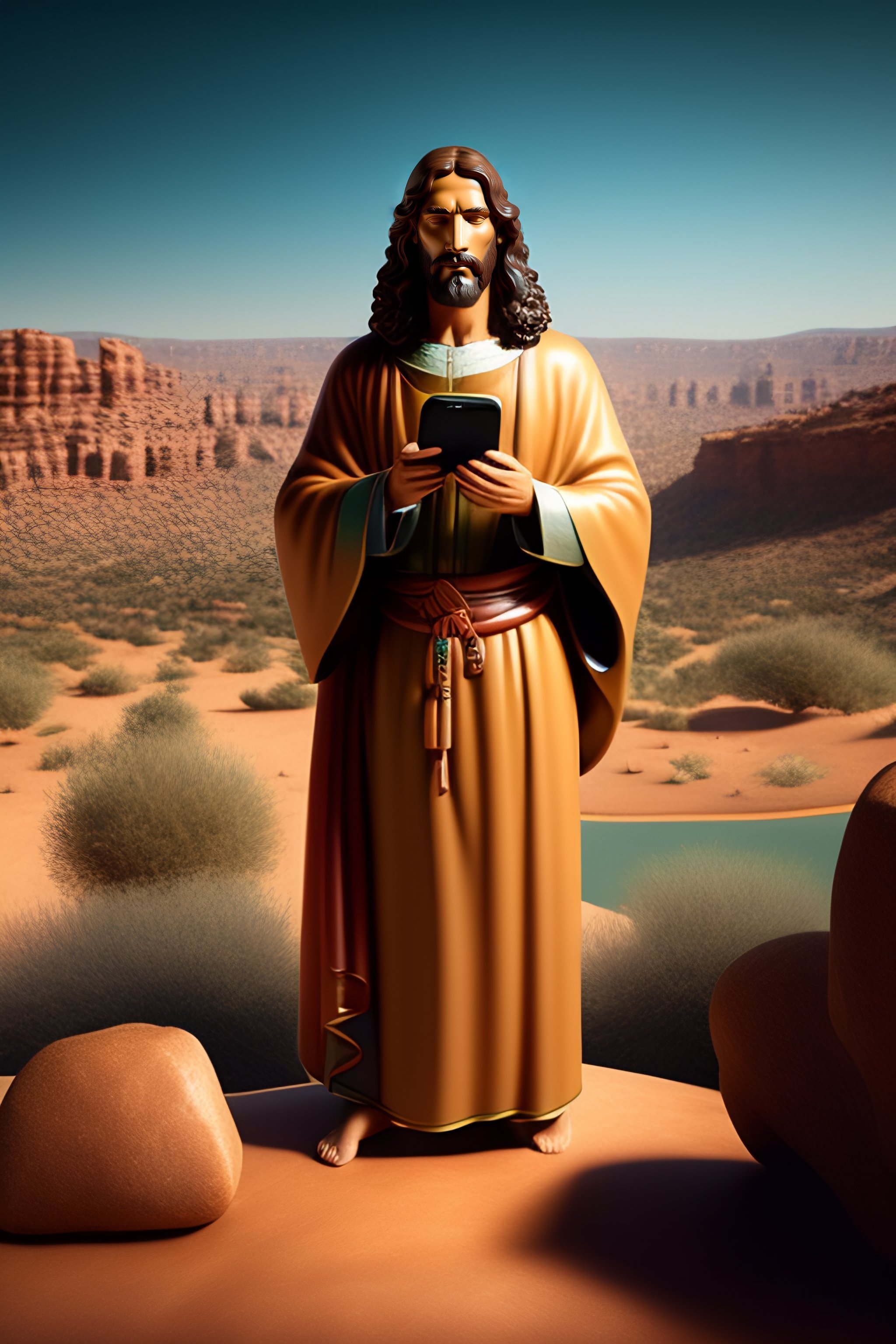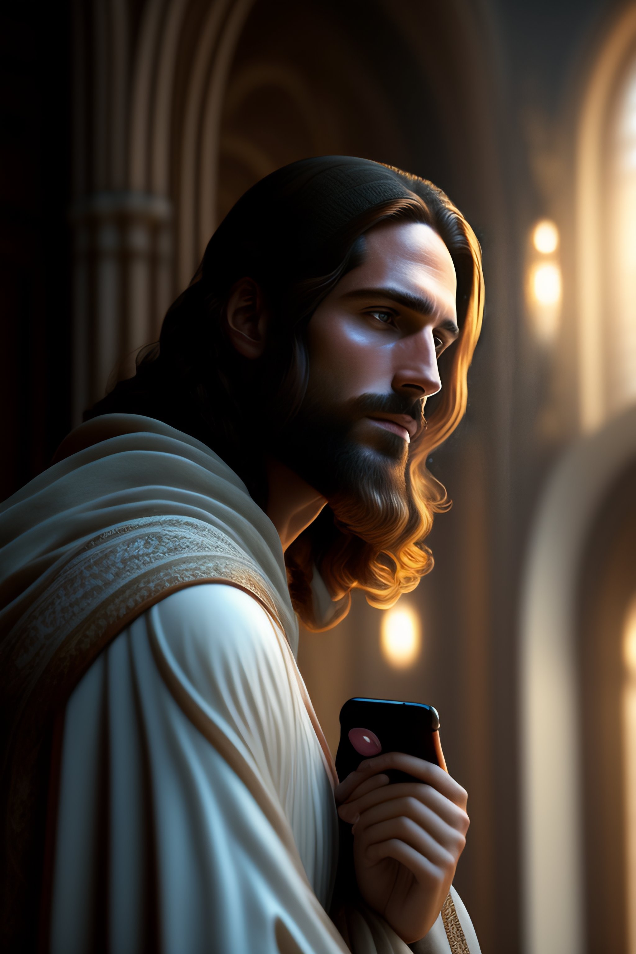 Jesus talking on a cell phone