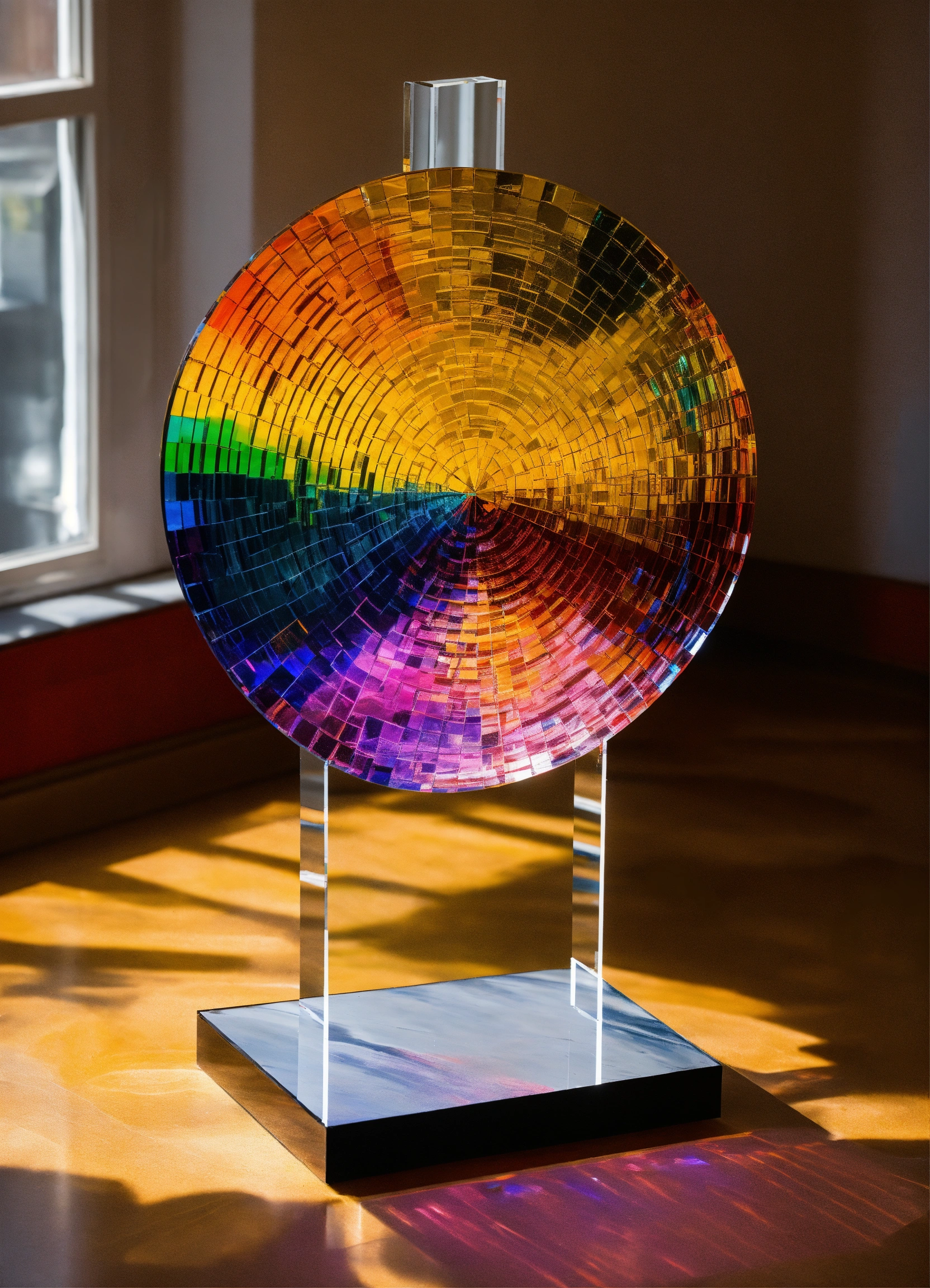 Plexiglass glass crystal acrylic arte povera lalyque disc spectrum mirror reflection