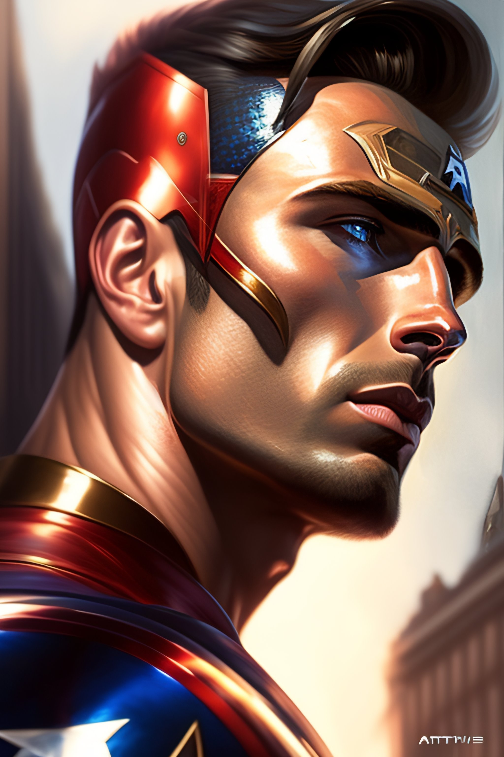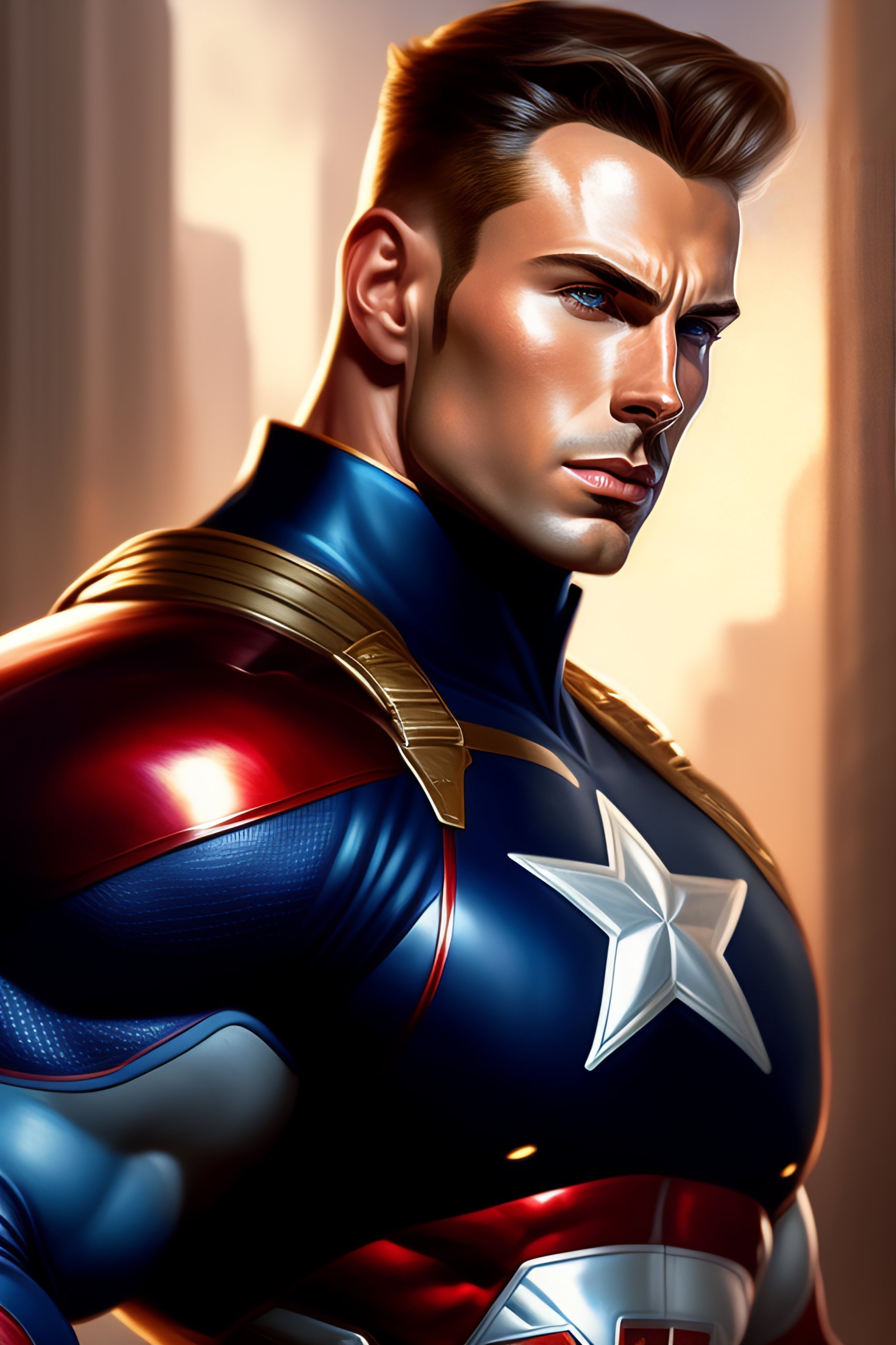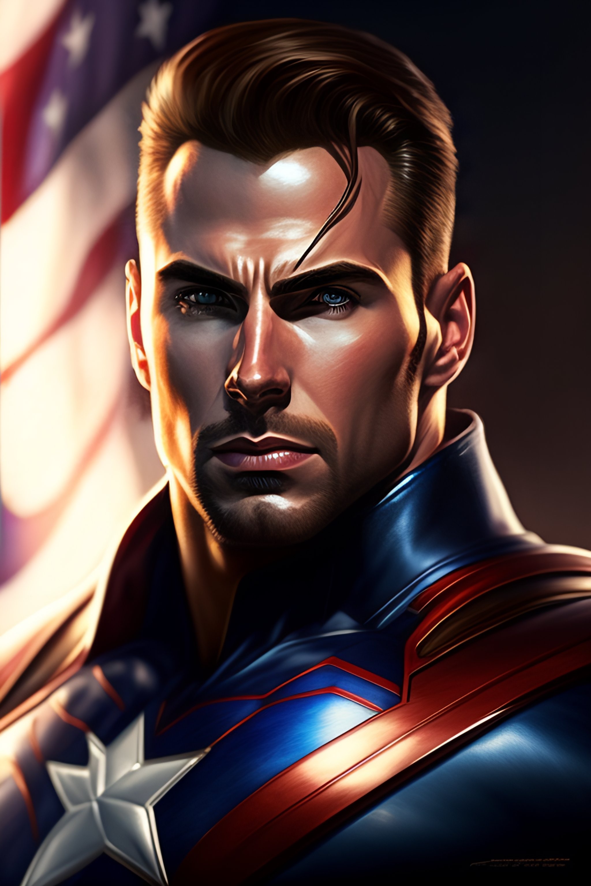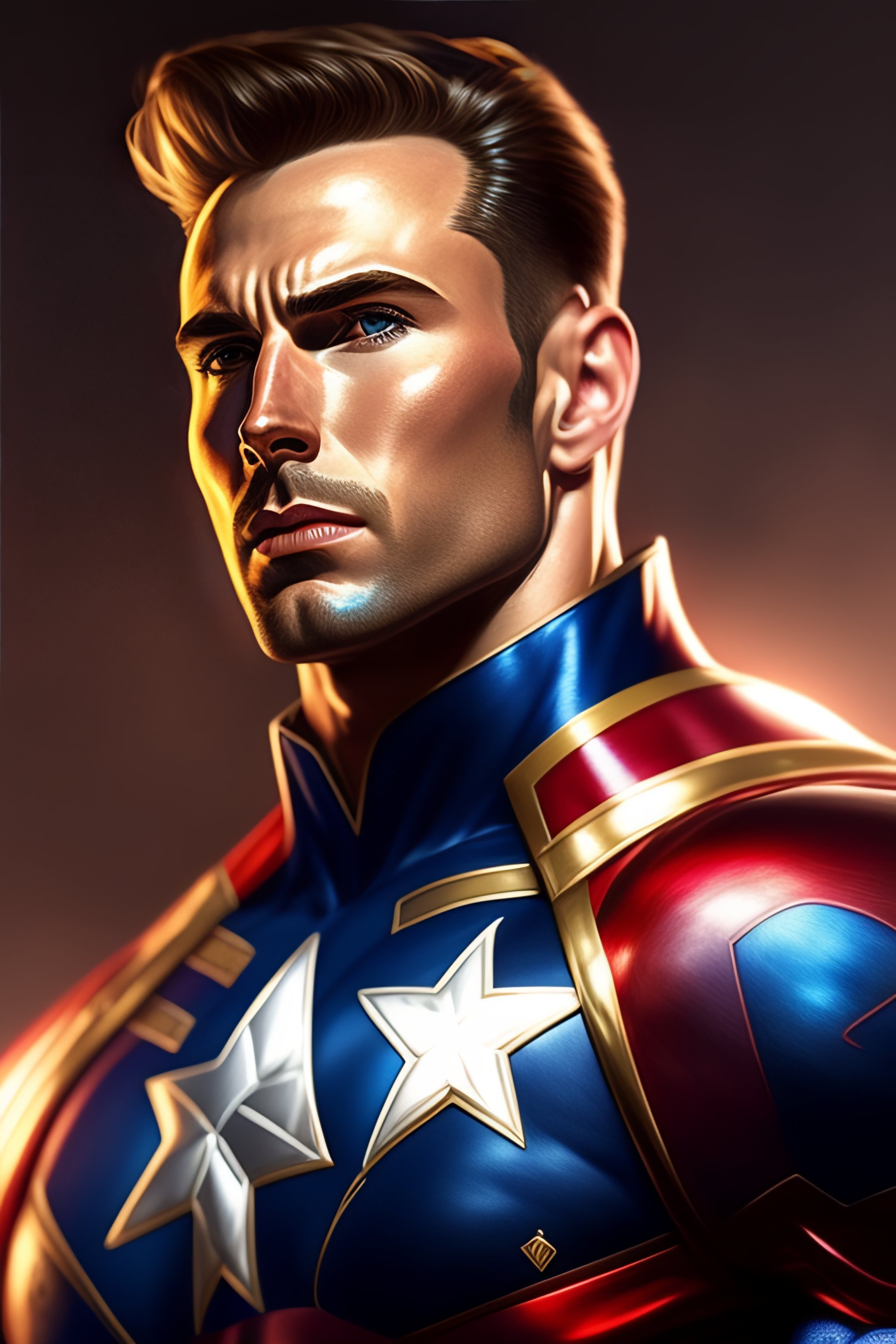Super muscular chris evans as captain america, marvel character, portrait, highly detailed, digital painting, artstation, concept art, smooth, sharp focus, illustration, cinematic lighting, art by artgerm and greg rutkowski and alphonse mucha