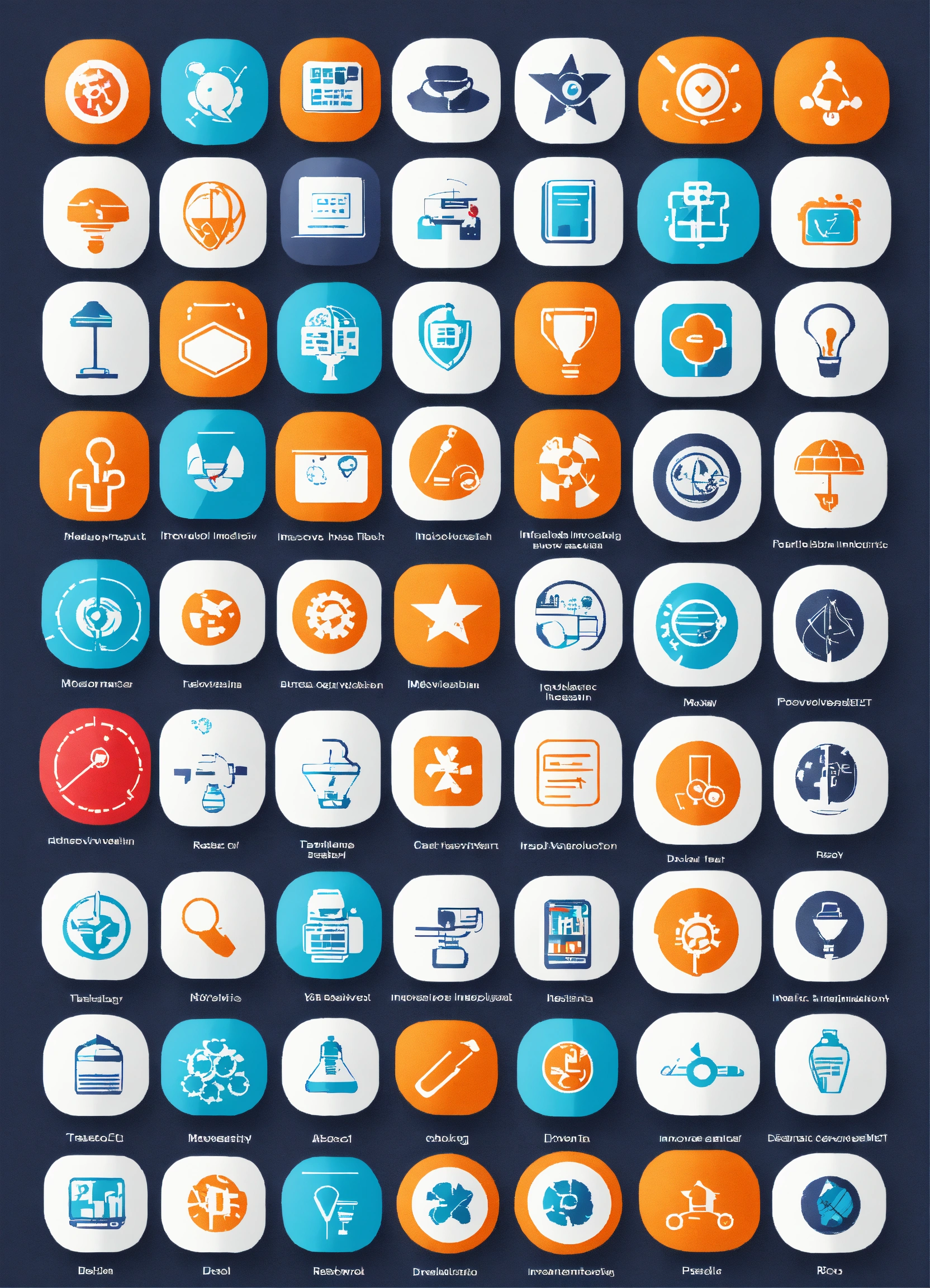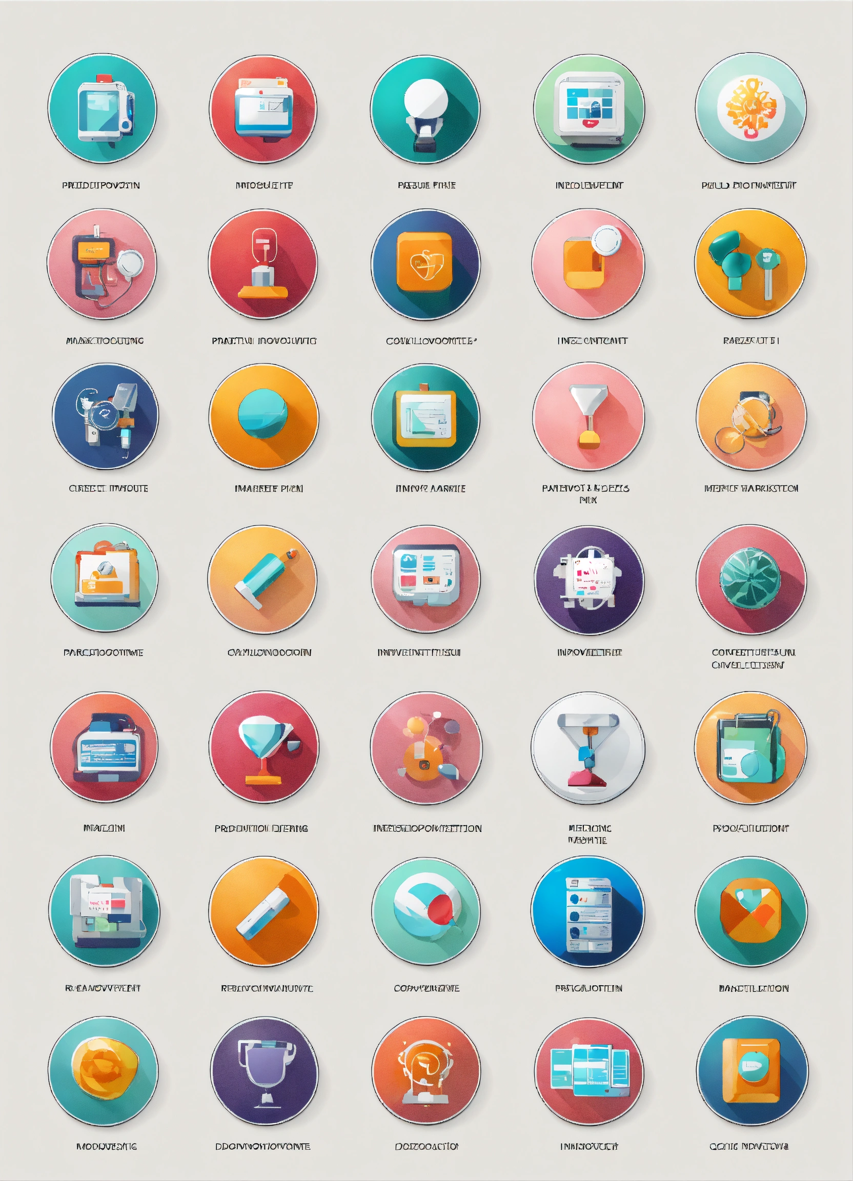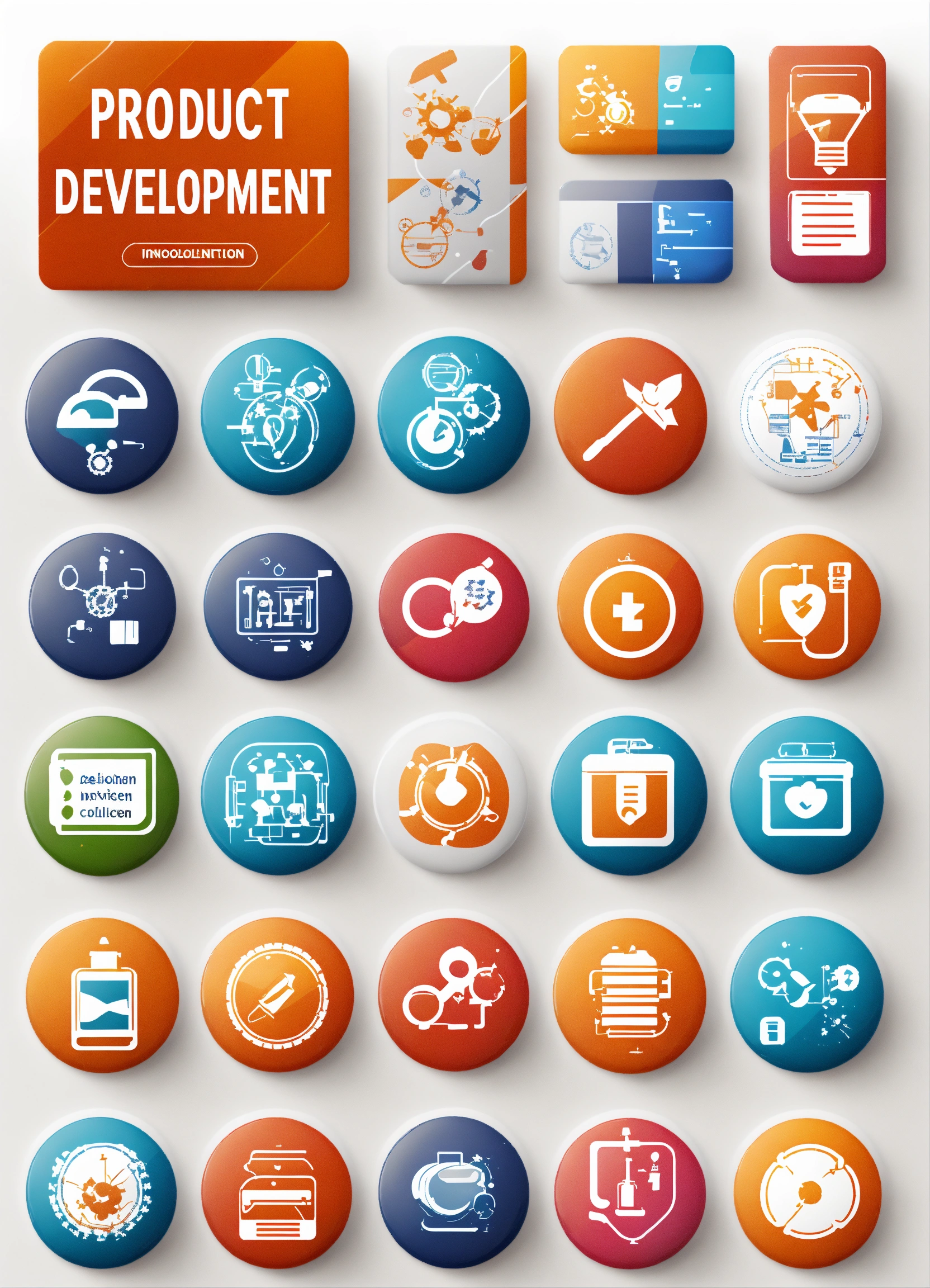 Product development button medicina containing innovation, prototype, design, research, testing, product launch, conception and marketing icons. solid button collection. white backgroun