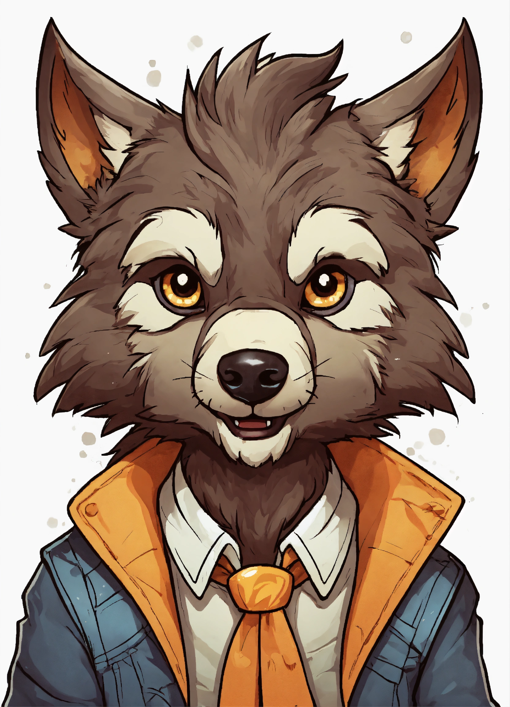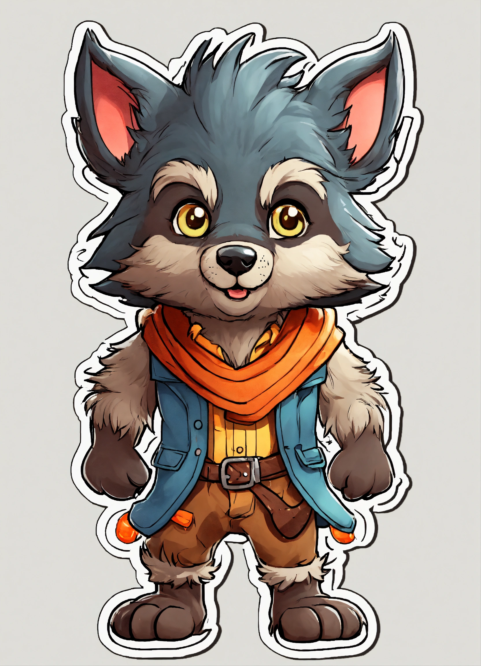 Generate a cute little werewolf illustration, 4k resolution, cartoon-sticker style with clear lines on a pure white background suitable for a children's coloring book.